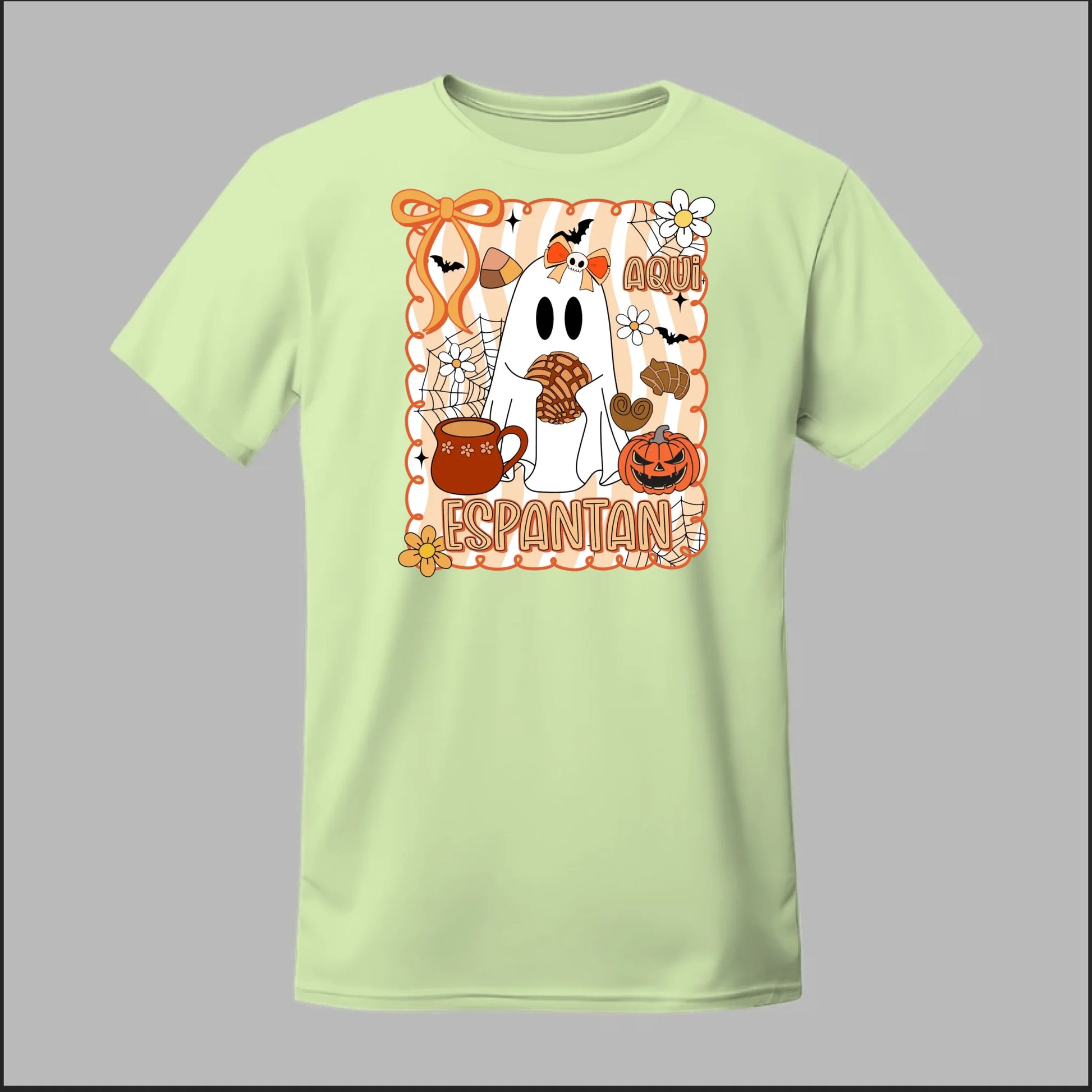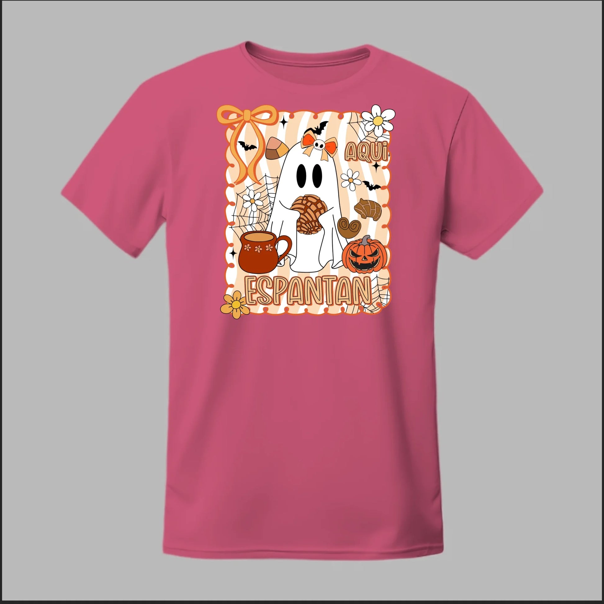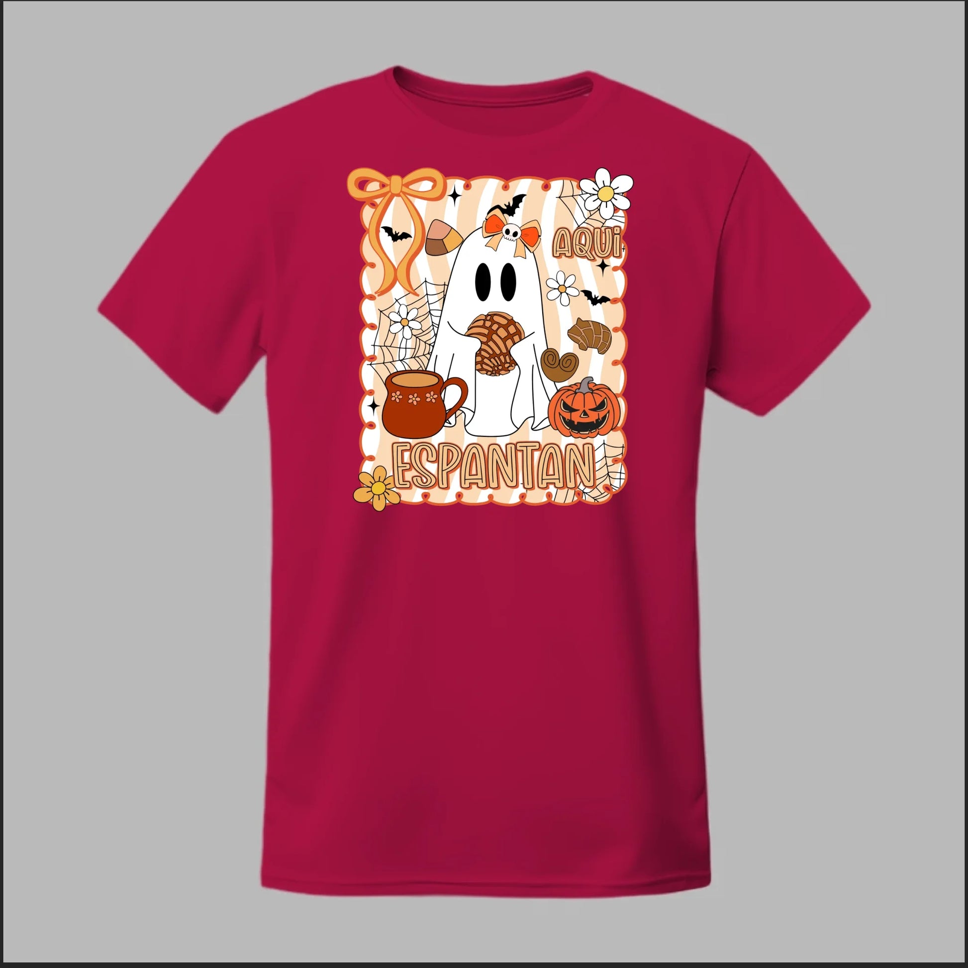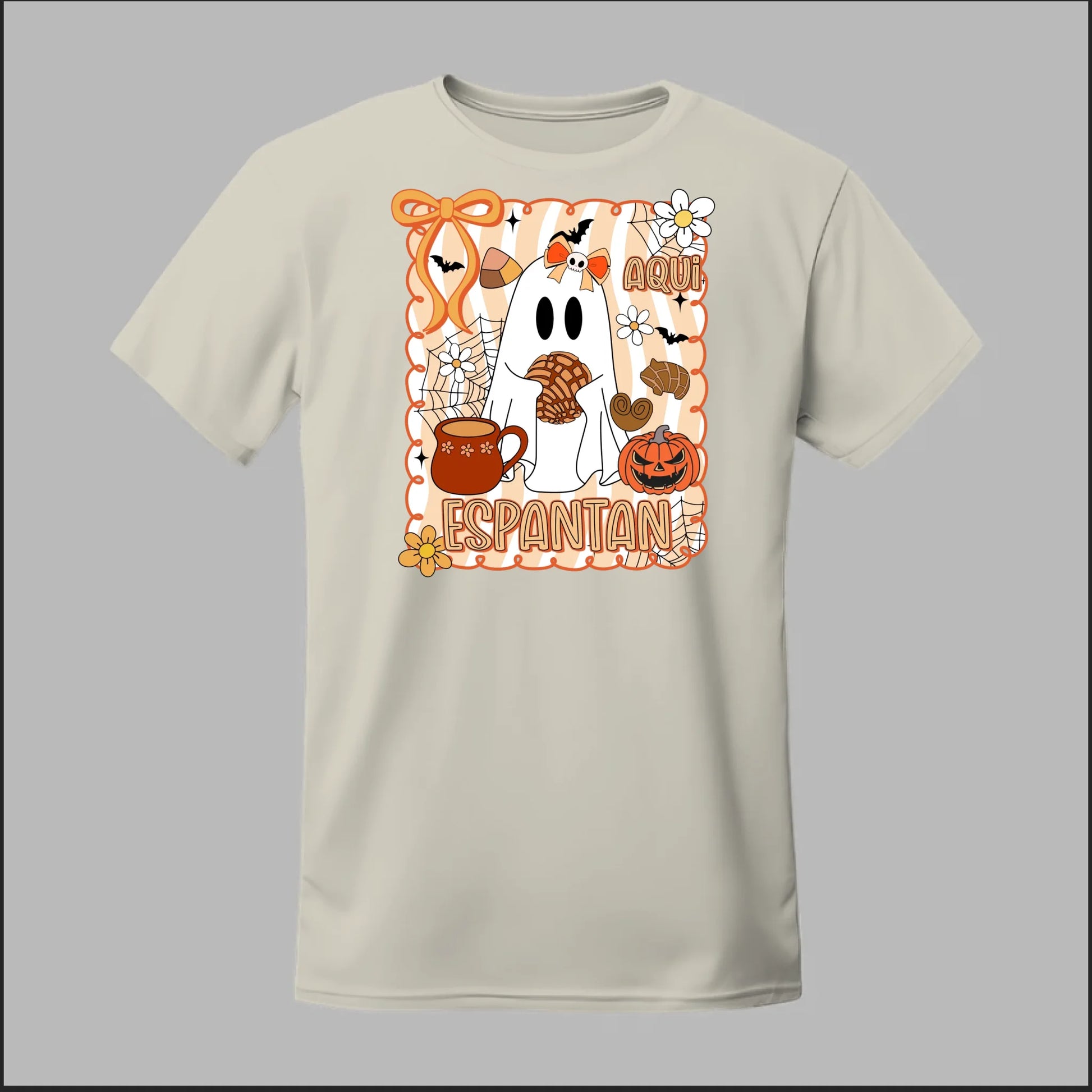 Celebrate spooky season with a Latin twist in our Aquí Espantan Ghost Tee! This playful design features a ghost enjoying a concha surrounded by pan dulce, spiderwebs, and festive fall details. Perfect for anyone who loves Halloween, café de olla, and a touch of cultural flair. Cozy, fun, and full of personality, it’s a must-have for fall festivals, casual nights out, or Día de los Muertos gatherings.