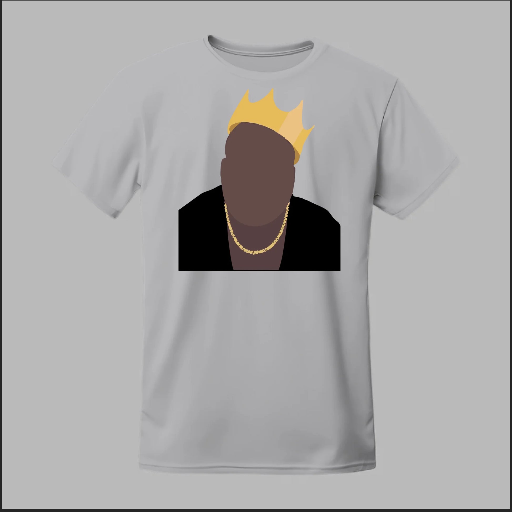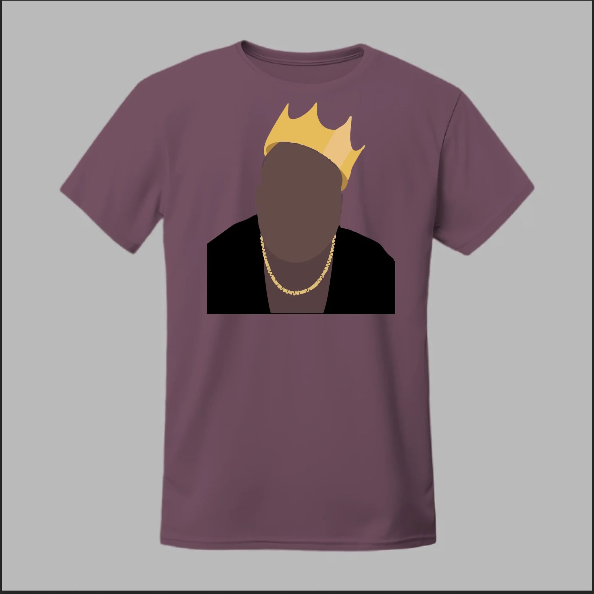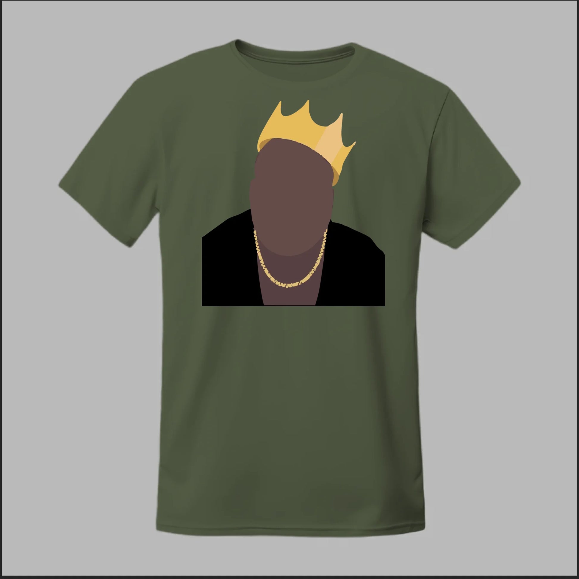 Celebrate timeless style with our Crowned Icon design. This bold and minimalistic artwork features a faceless figure wearing a golden crown and chain – a nod to greatness, confidence, and the culture of royalty in music and life.