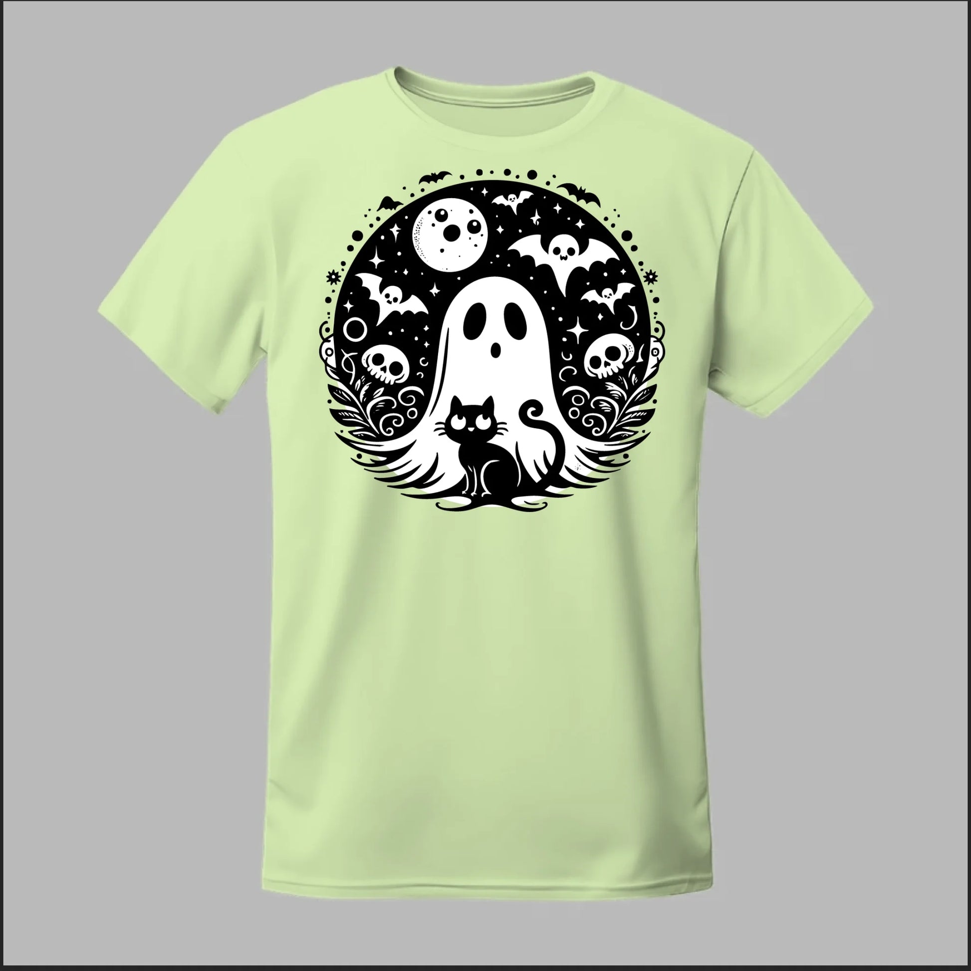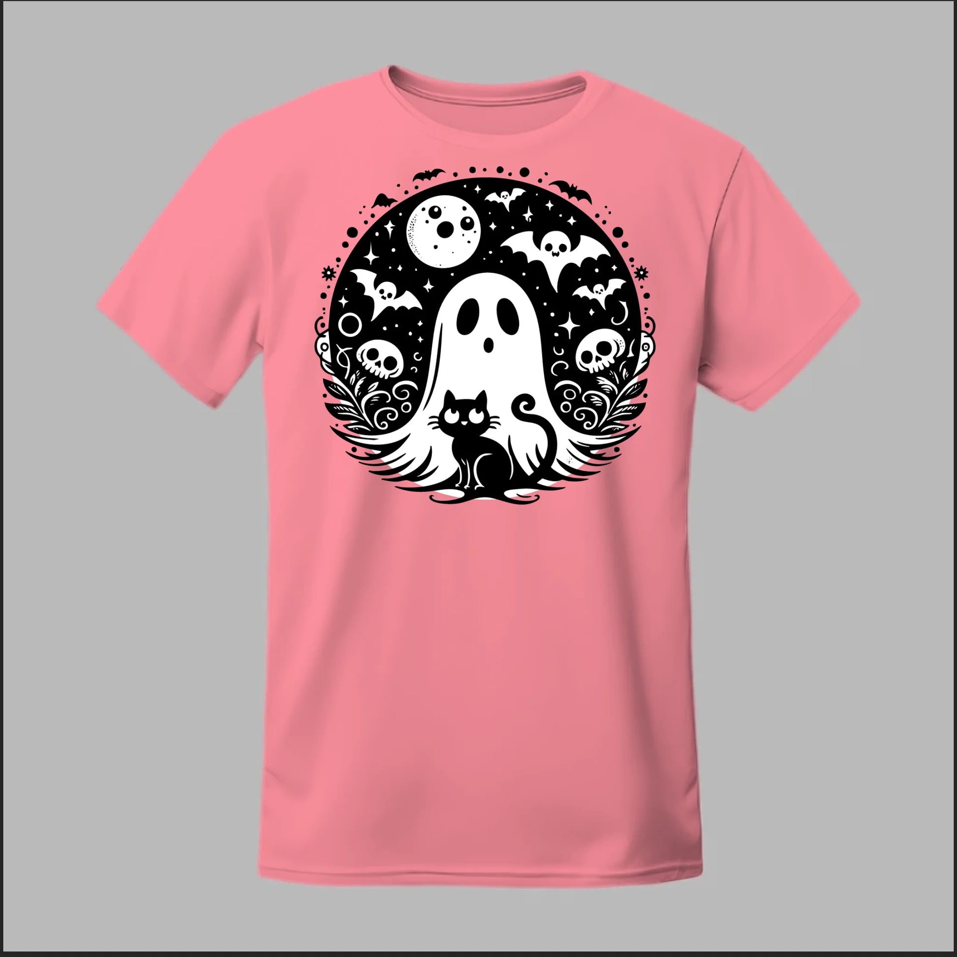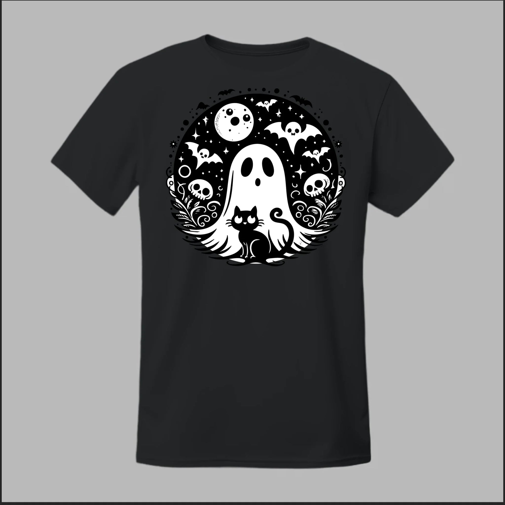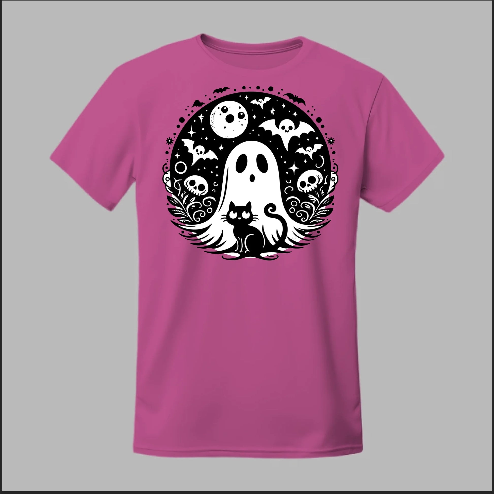 Spooky but make it adorable — this Ghost & Kitty Design is the perfect mix of cute and creepy. Featuring a sweet black cat sitting with its ghostly friend under the moon, it’s made for those who love Halloween vibes all year long. Perfect for cat lovers, Halloween fans, and spooky souls