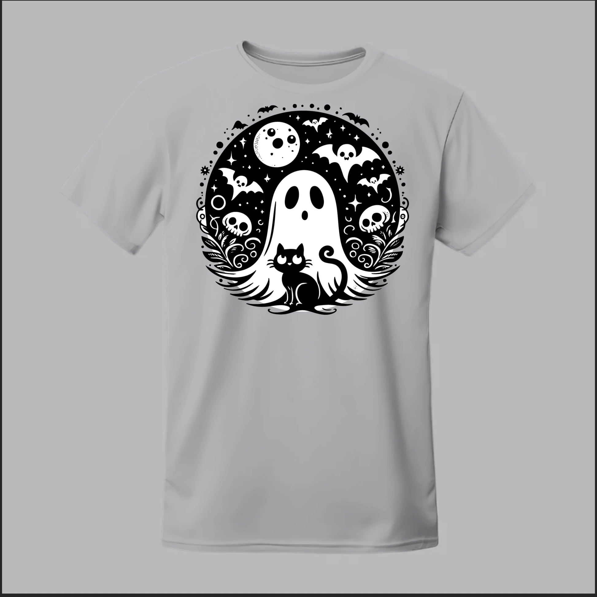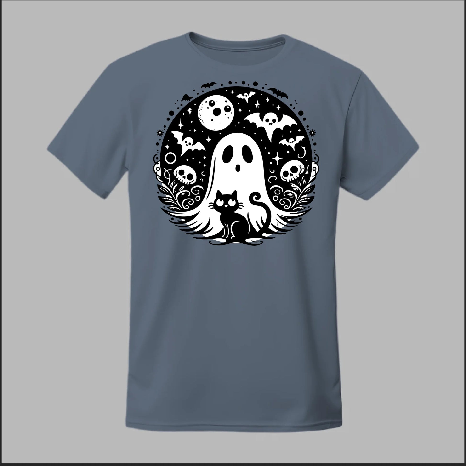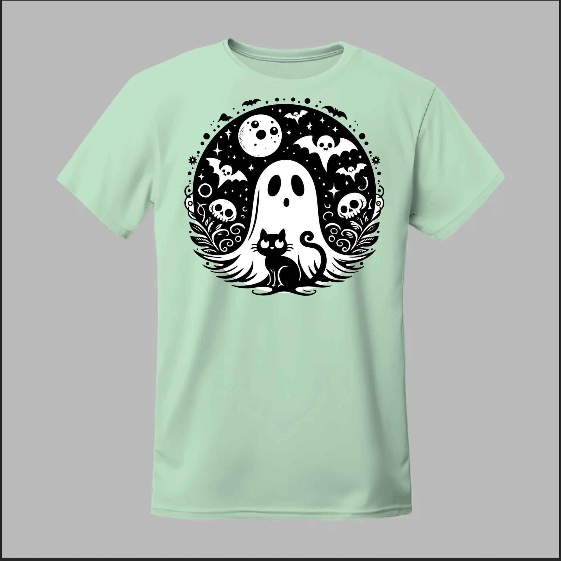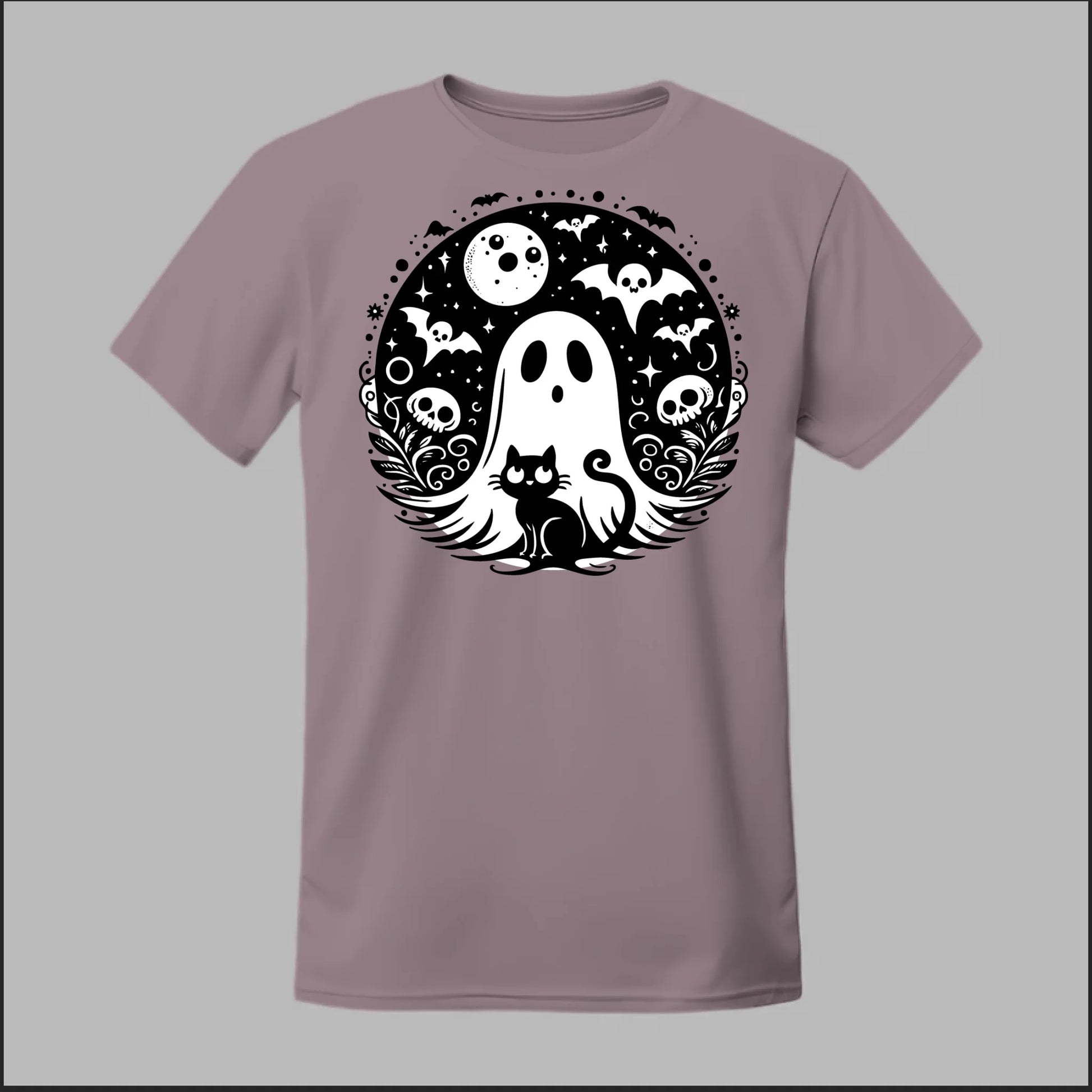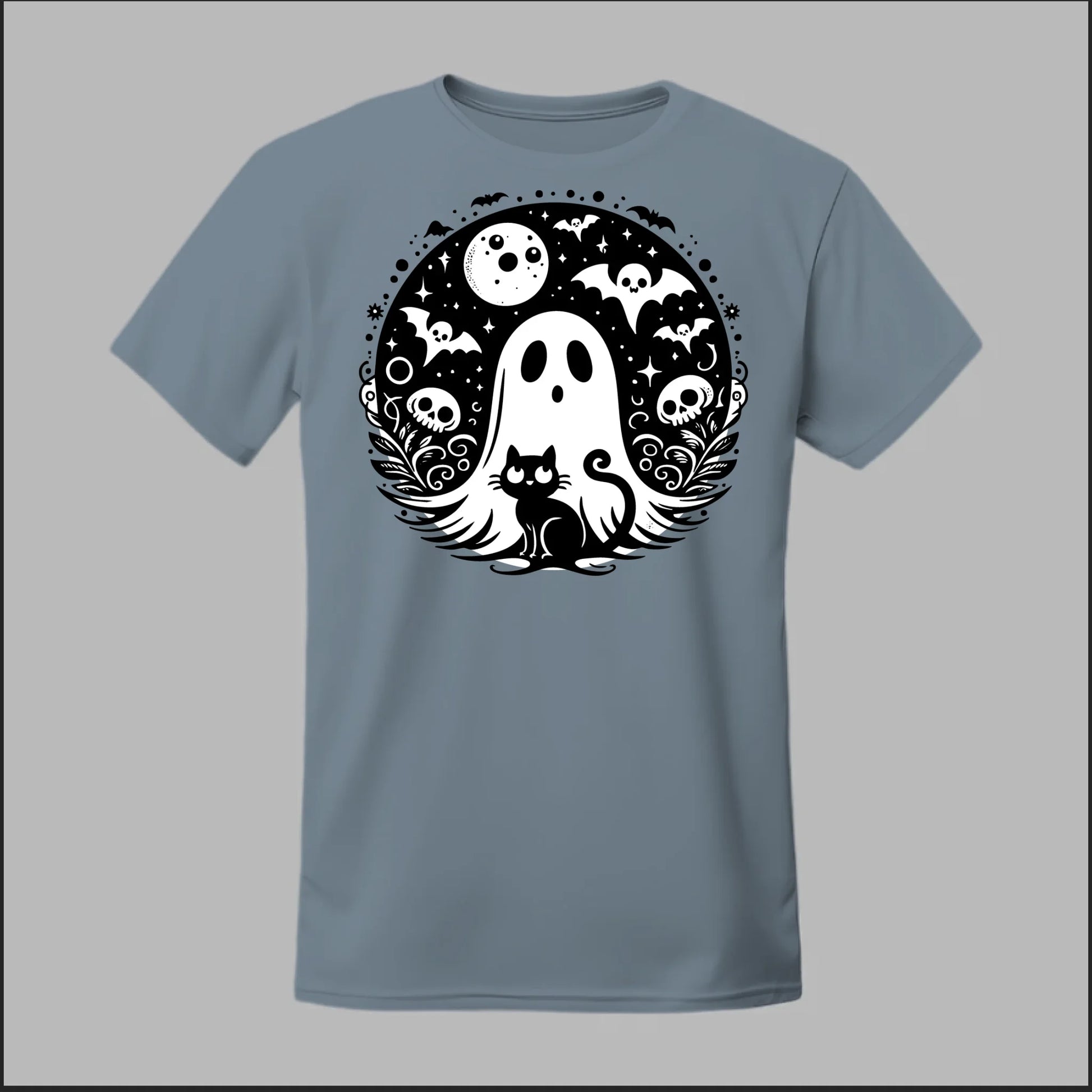 Spooky but make it adorable — this Ghost & Kitty Design is the perfect mix of cute and creepy. Featuring a sweet black cat sitting with its ghostly friend under the moon, it’s made for those who love Halloween vibes all year long. Perfect for cat lovers, Halloween fans, and spooky souls