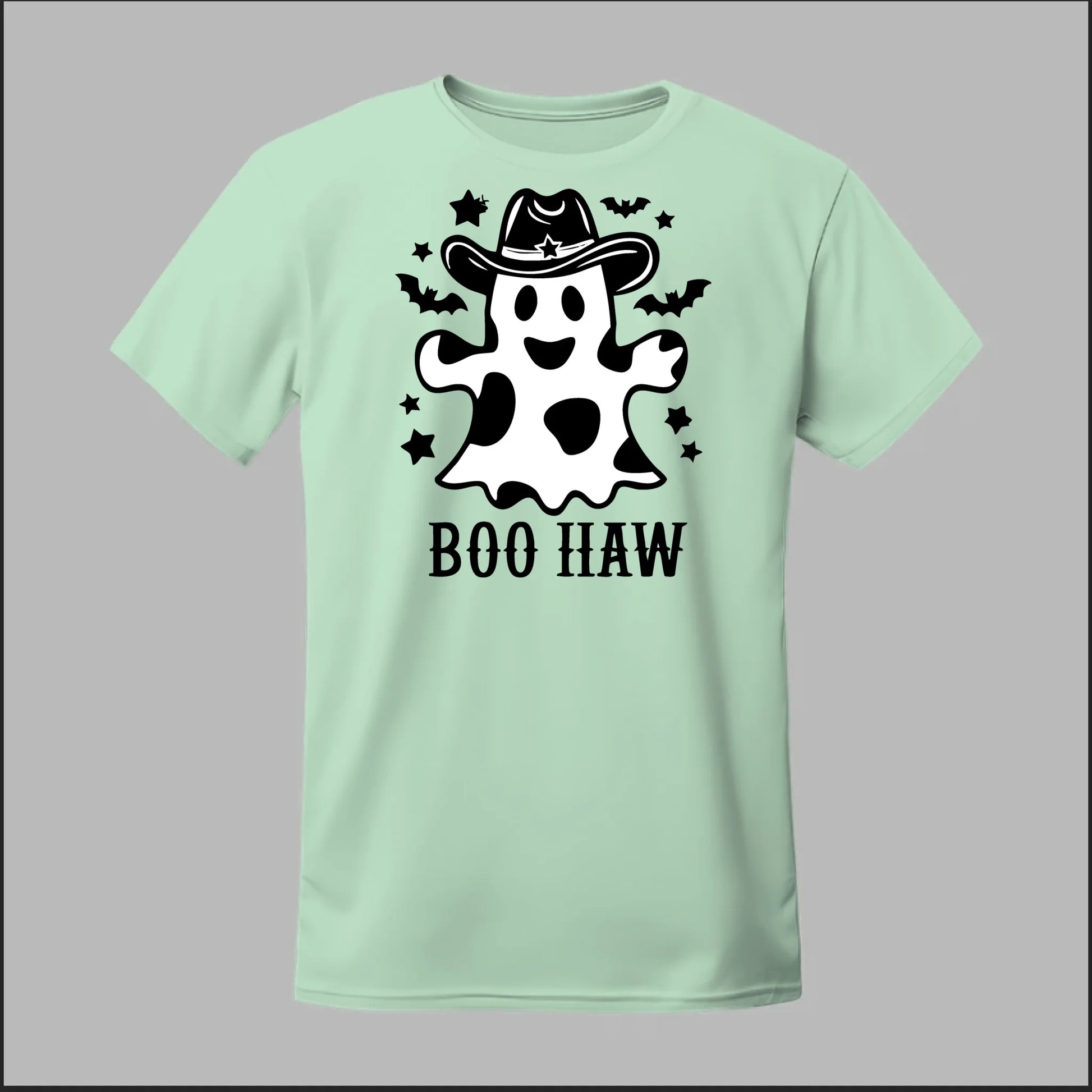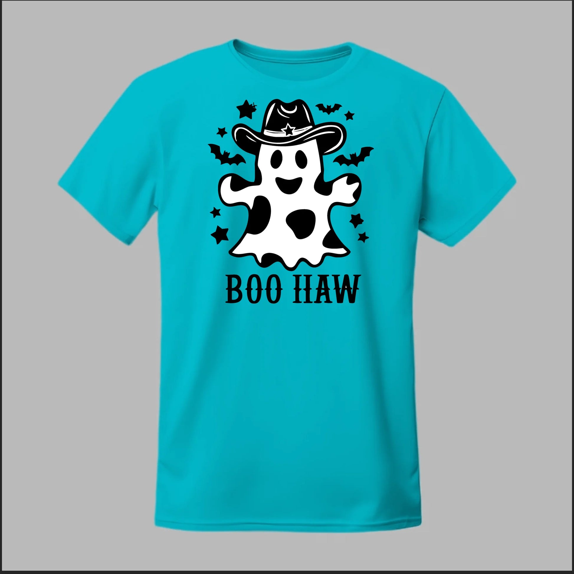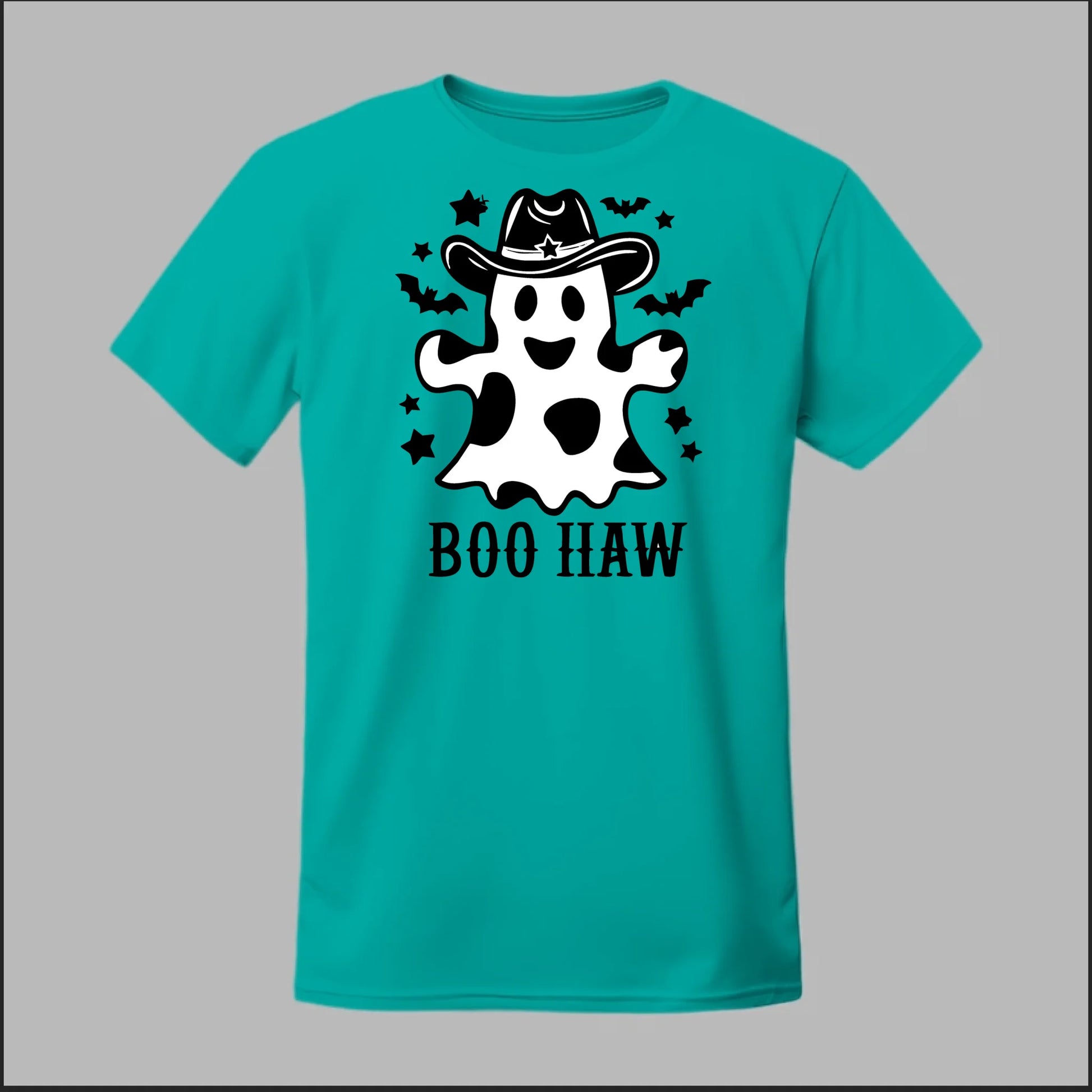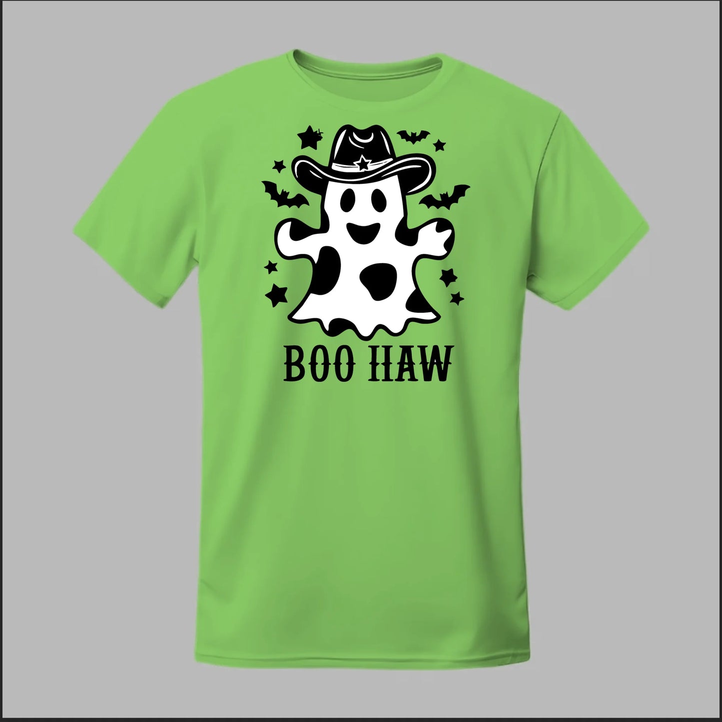 Yeehaw meets spooky season! Our Boo Haw Tee is the perfect blend of Halloween fun and country charm. Featuring a playful cowboy ghost in a western hat, this shirt brings ghostly giggles to any outfit. A Fun Halloween design with a country twist.