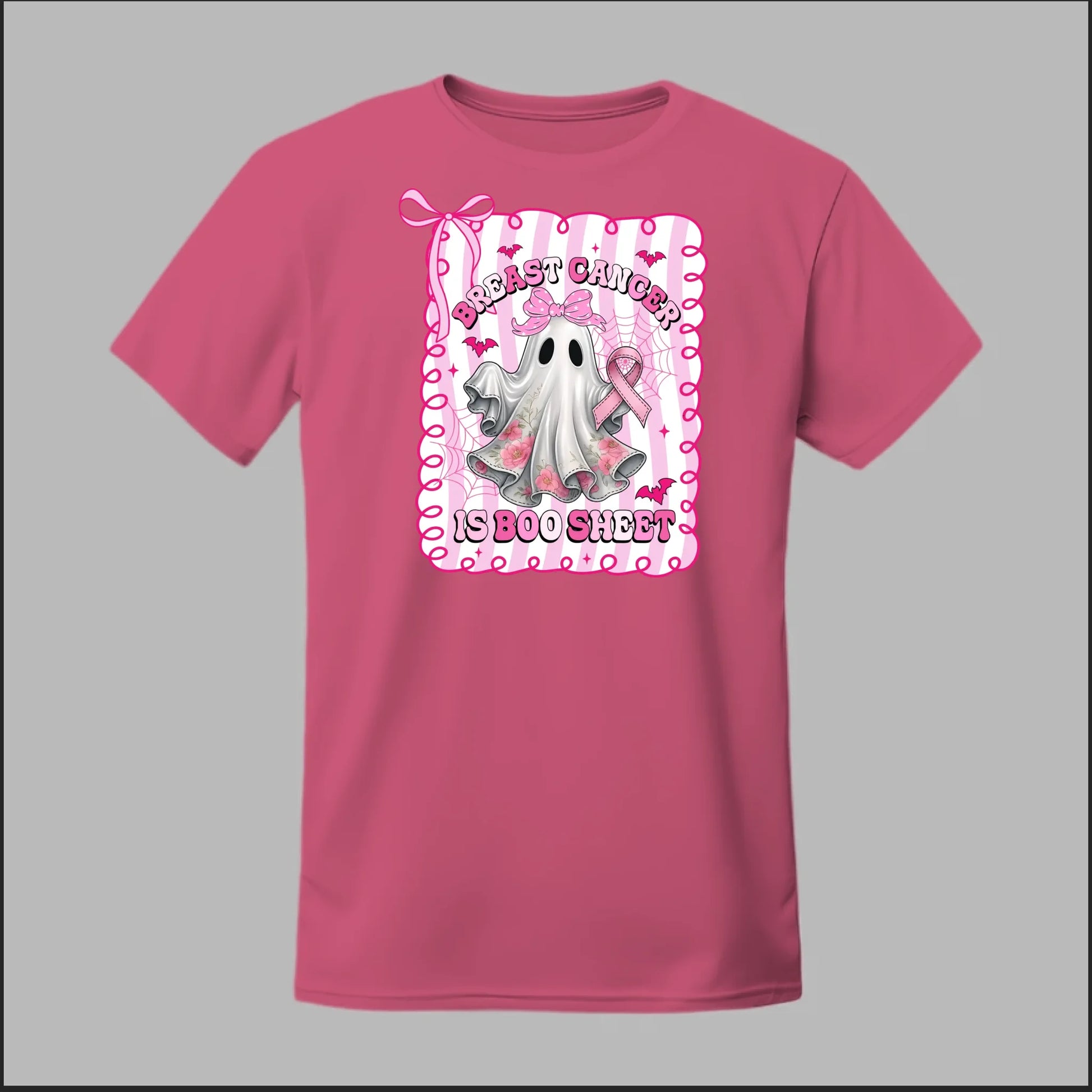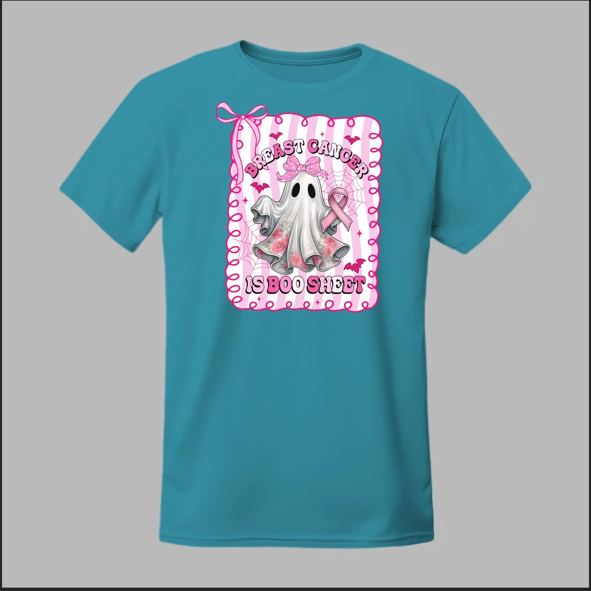 The Boo Sheet Awareness Tee brings a playful twist to a serious fight. Featuring a pink-ribbon ghost with floral details and the bold phrase "Breast Cancer Is Boo Sheet," this design blends Halloween fun with an empowering message. Perfect for October awareness events, it’s a spirited way to stand strong, spread hope, and show support for those battling breast cancer.