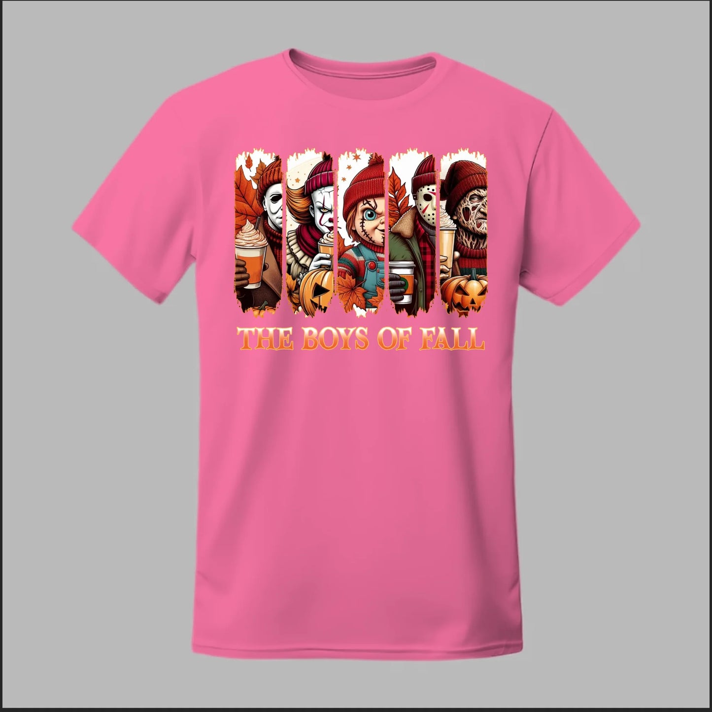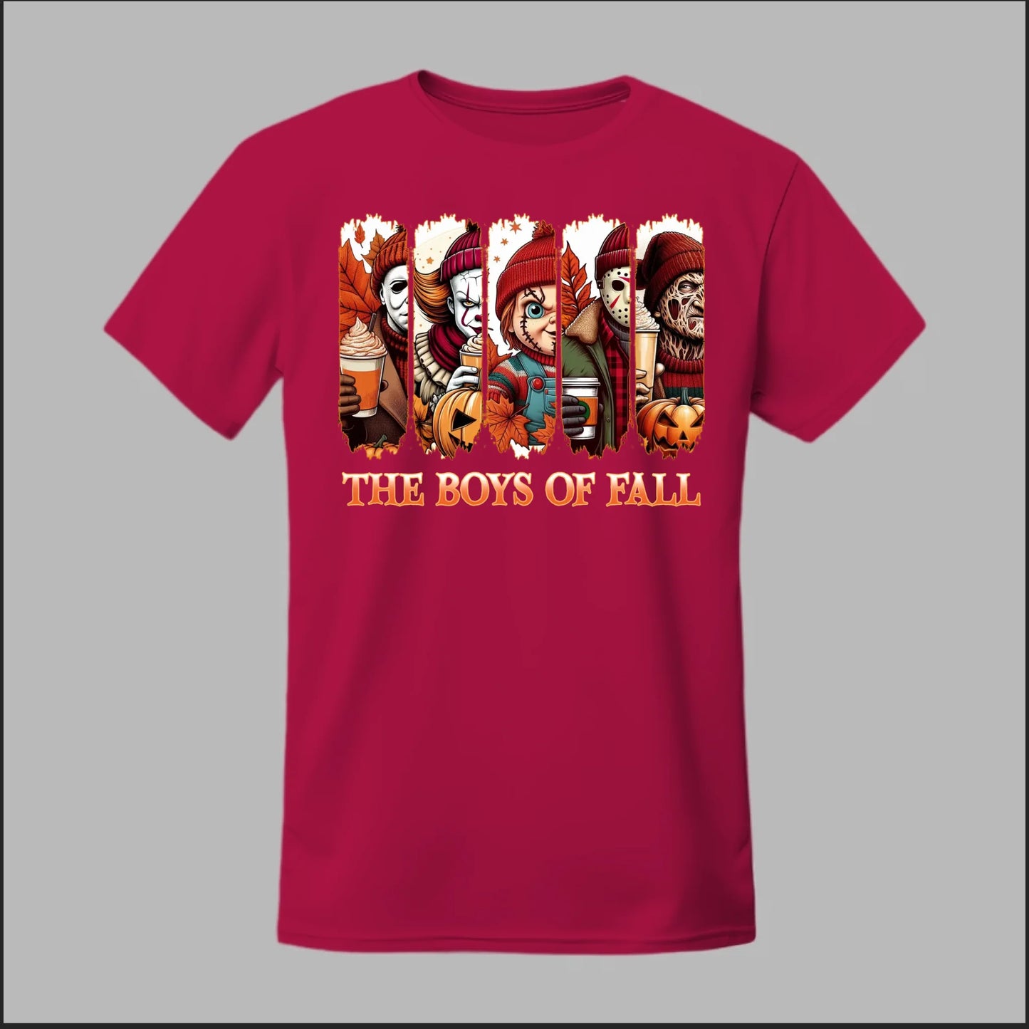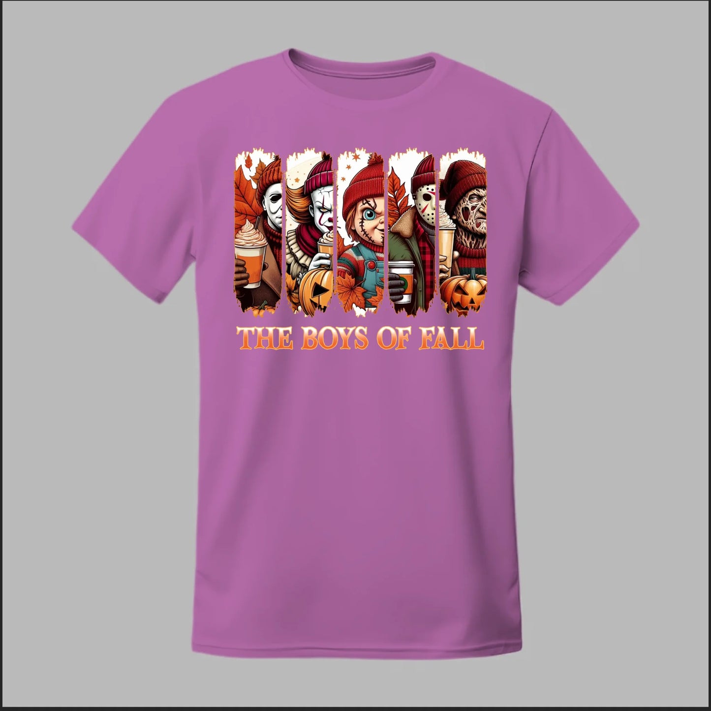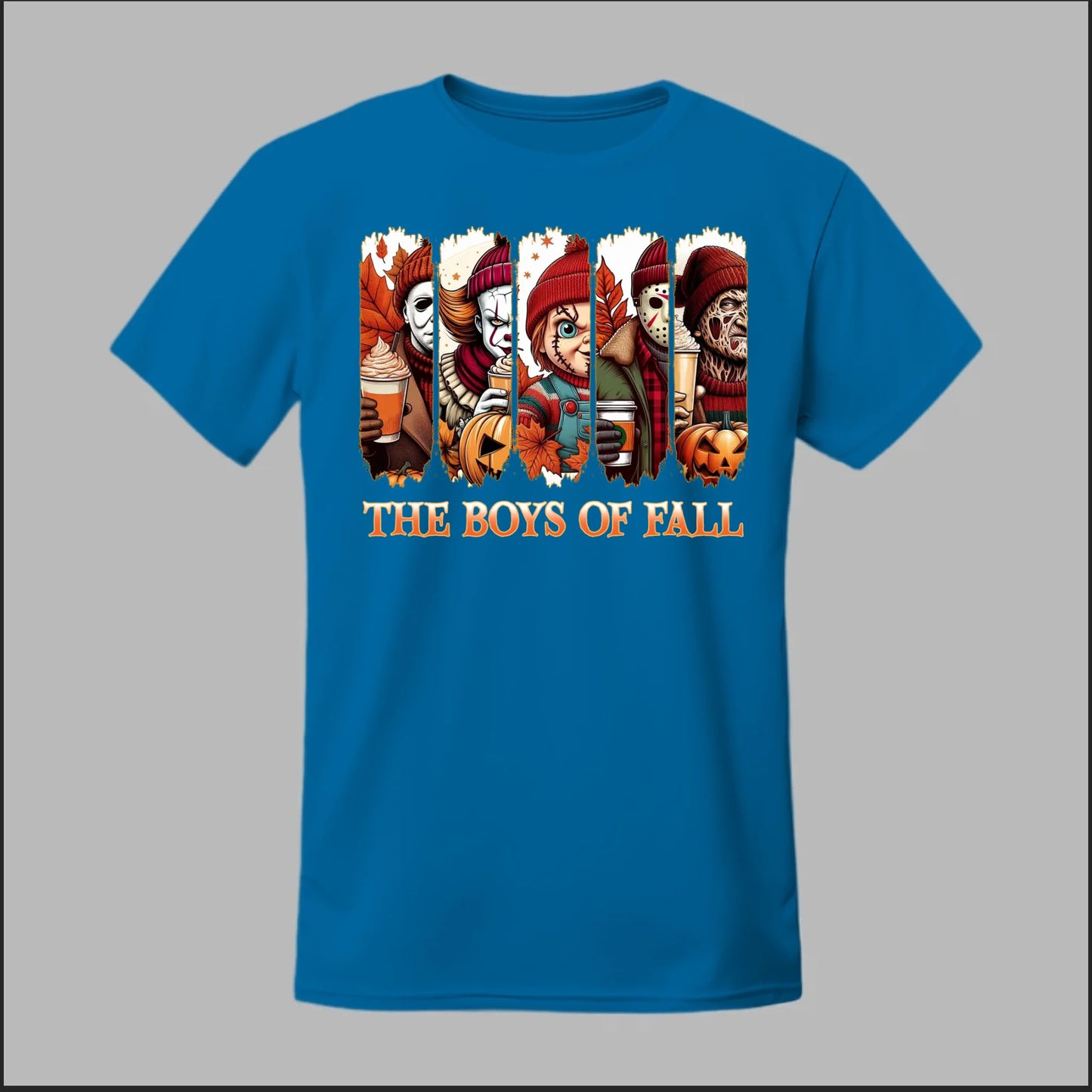 Your favorite horror icons are trading in knives for lattes! This fall-ready design features Michael, Pennywise, Chucky, Jason, and Freddy decked out in cozy autumn gear—pumpkin spice in hand and leaves all around. Equal parts creepy and cozy, it’s the perfect shirt for horror fans who live for spooky season and pumpkin spice vibes.