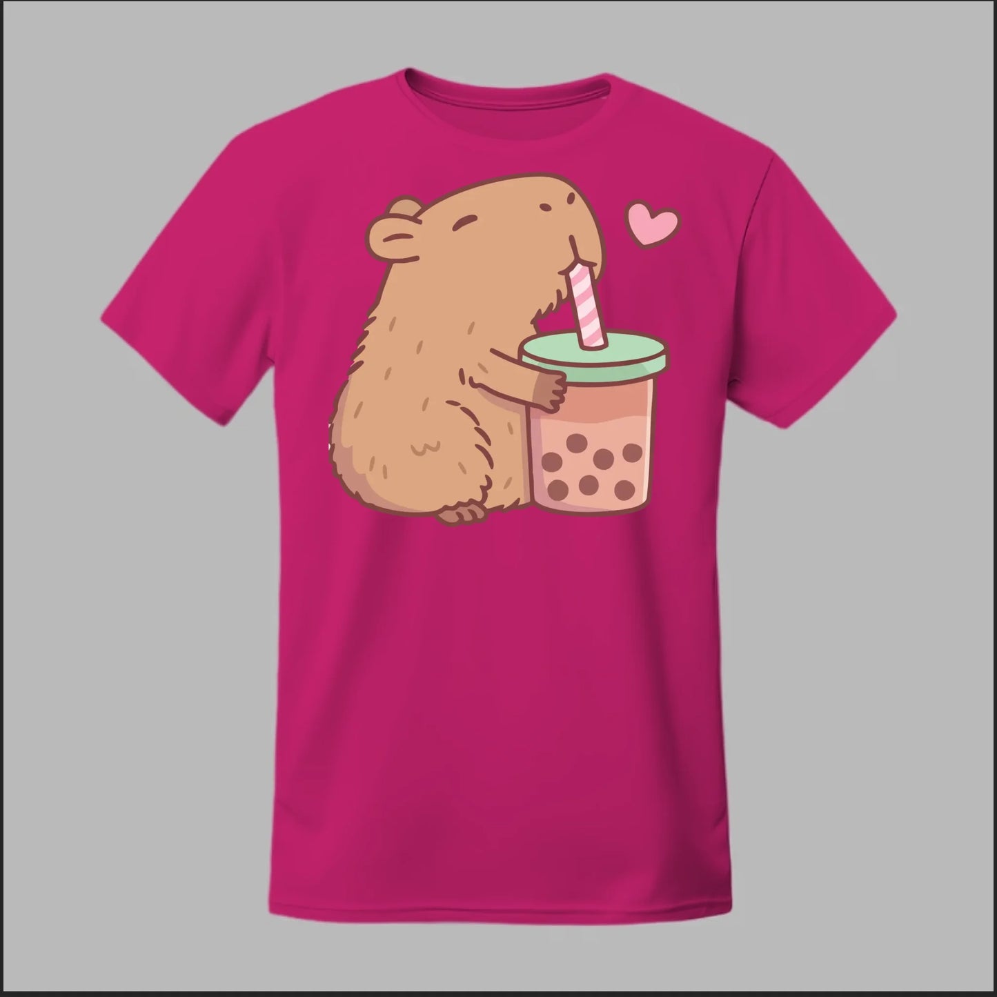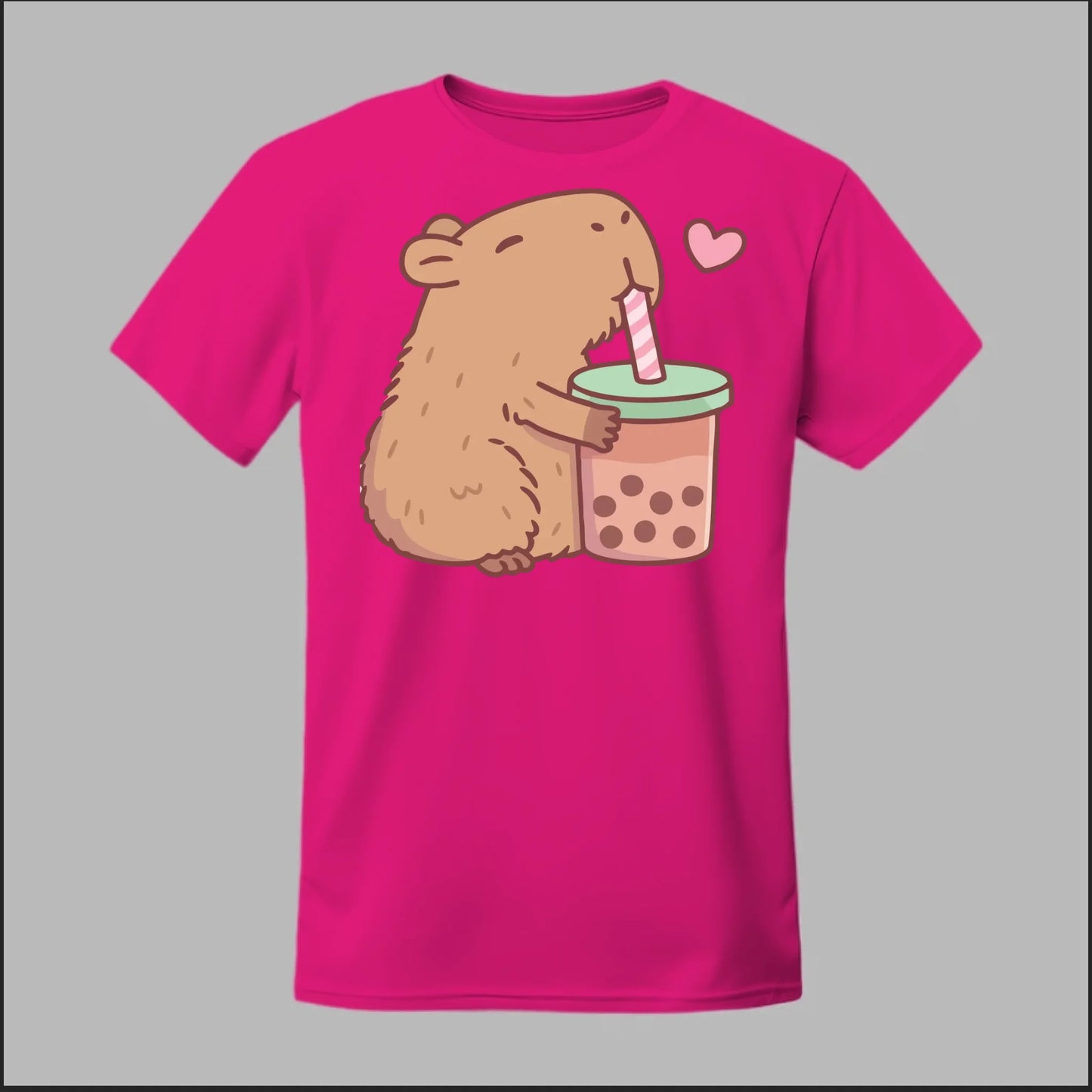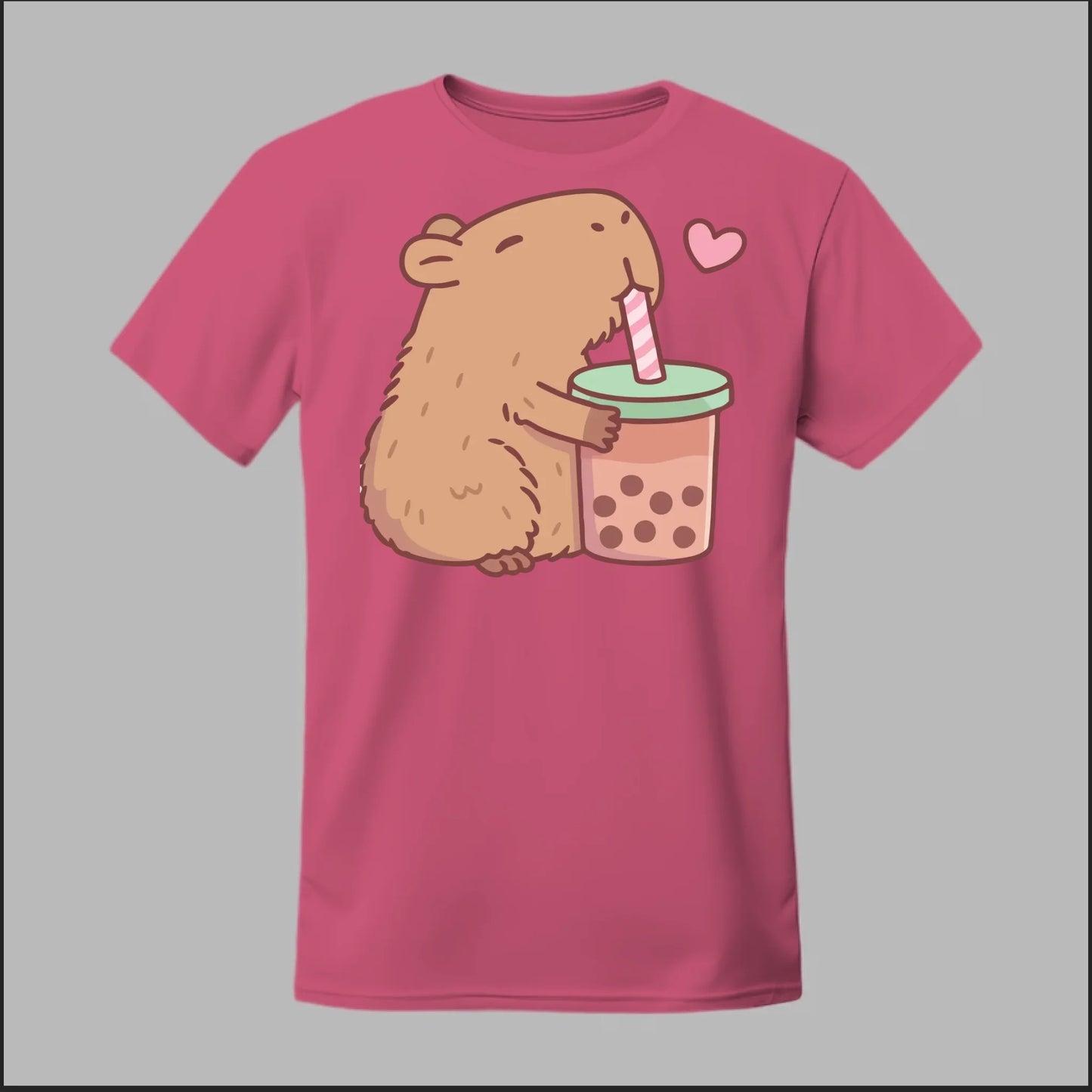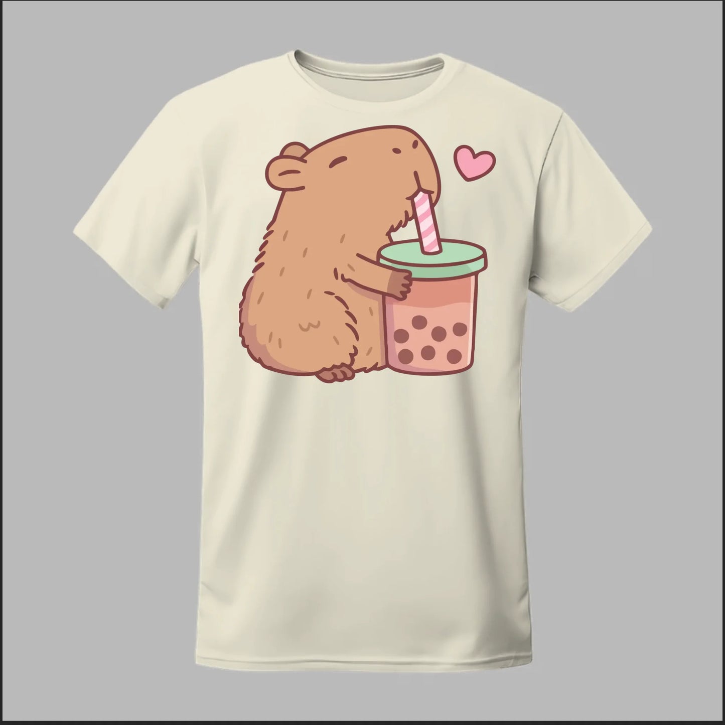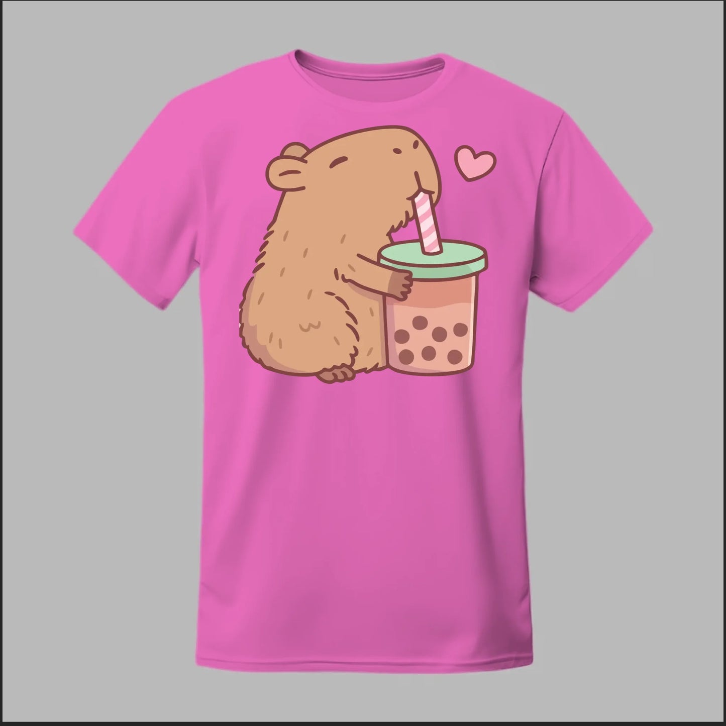 Sip back and relax with the cutest boba buddy around! This tee features an adorable capybara hugging a big cup of bubble tea with a heart full of love. Soft, comfy, and totally kawaii, it’s the perfect shirt for boba lovers and capybara fans alike.
