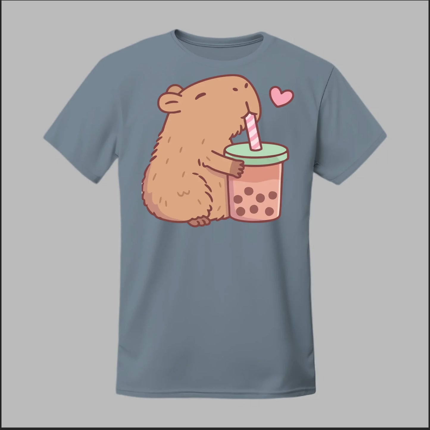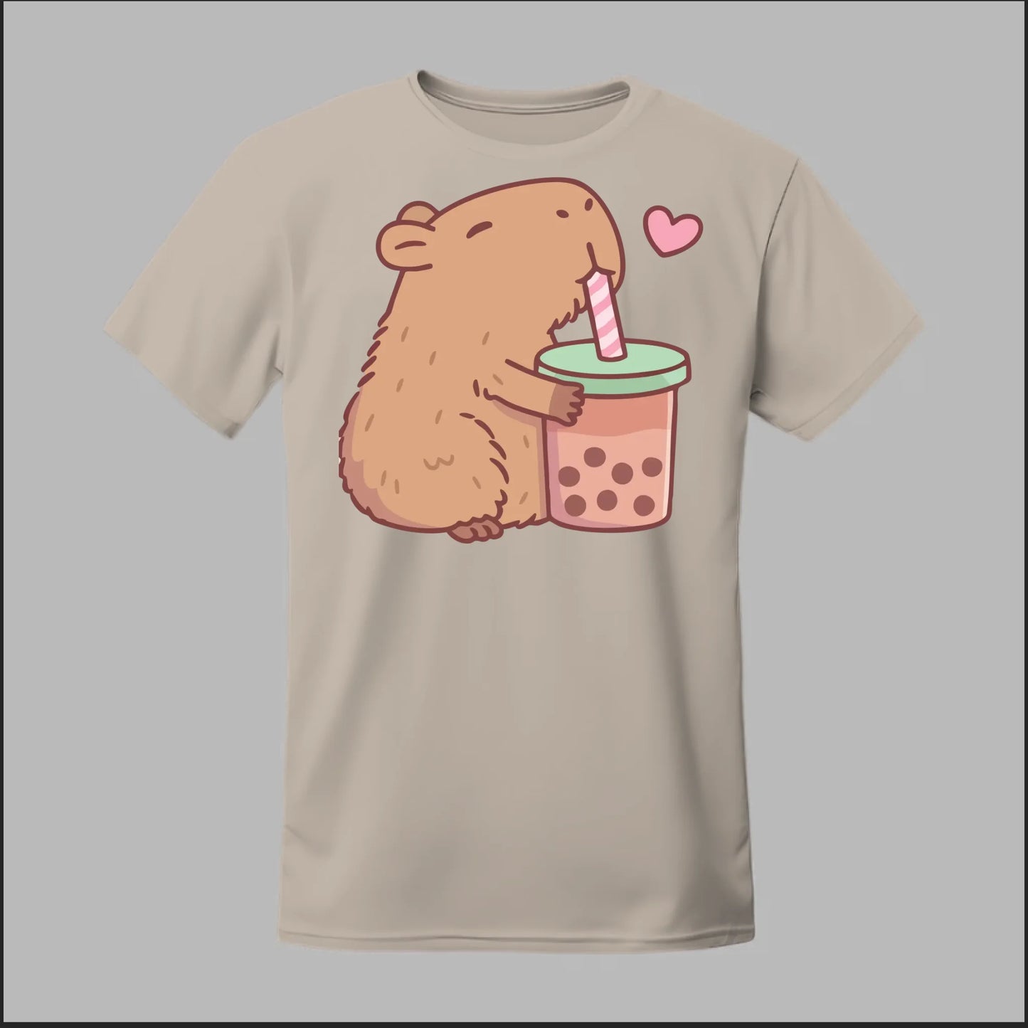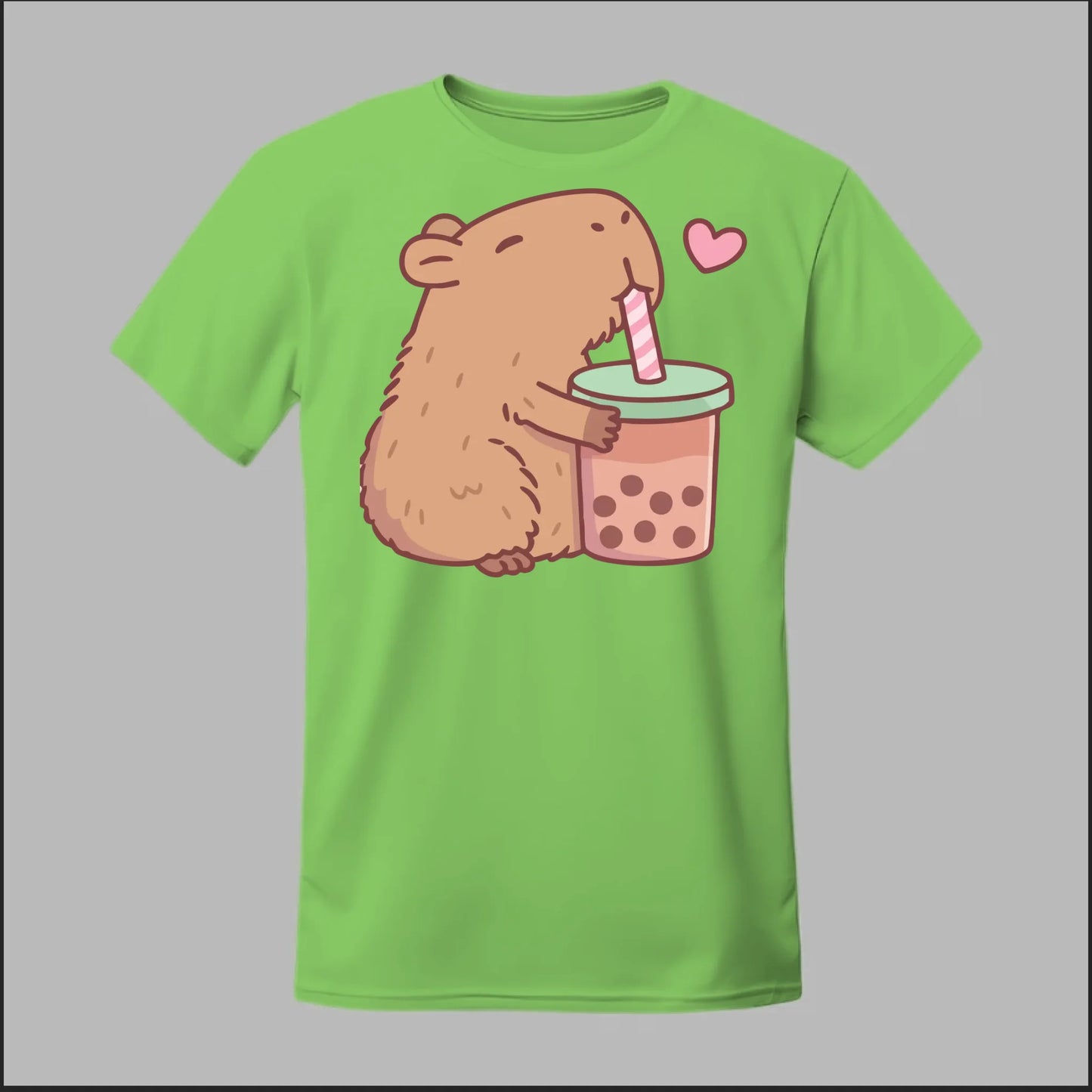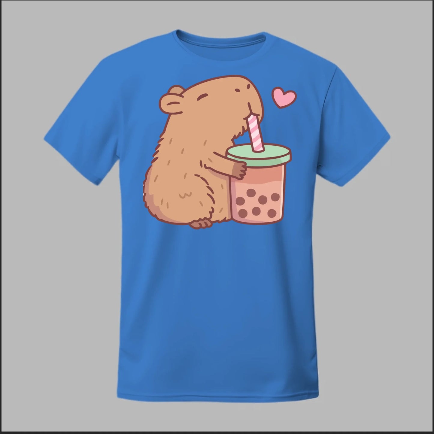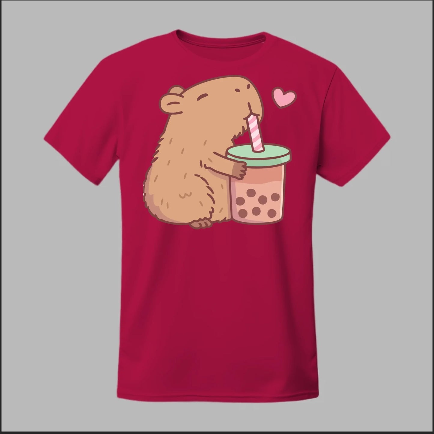 Sip back and relax with the cutest boba buddy around! This tee features an adorable capybara hugging a big cup of bubble tea with a heart full of love. Soft, comfy, and totally kawaii, it’s the perfect shirt for boba lovers and capybara fans alike.
