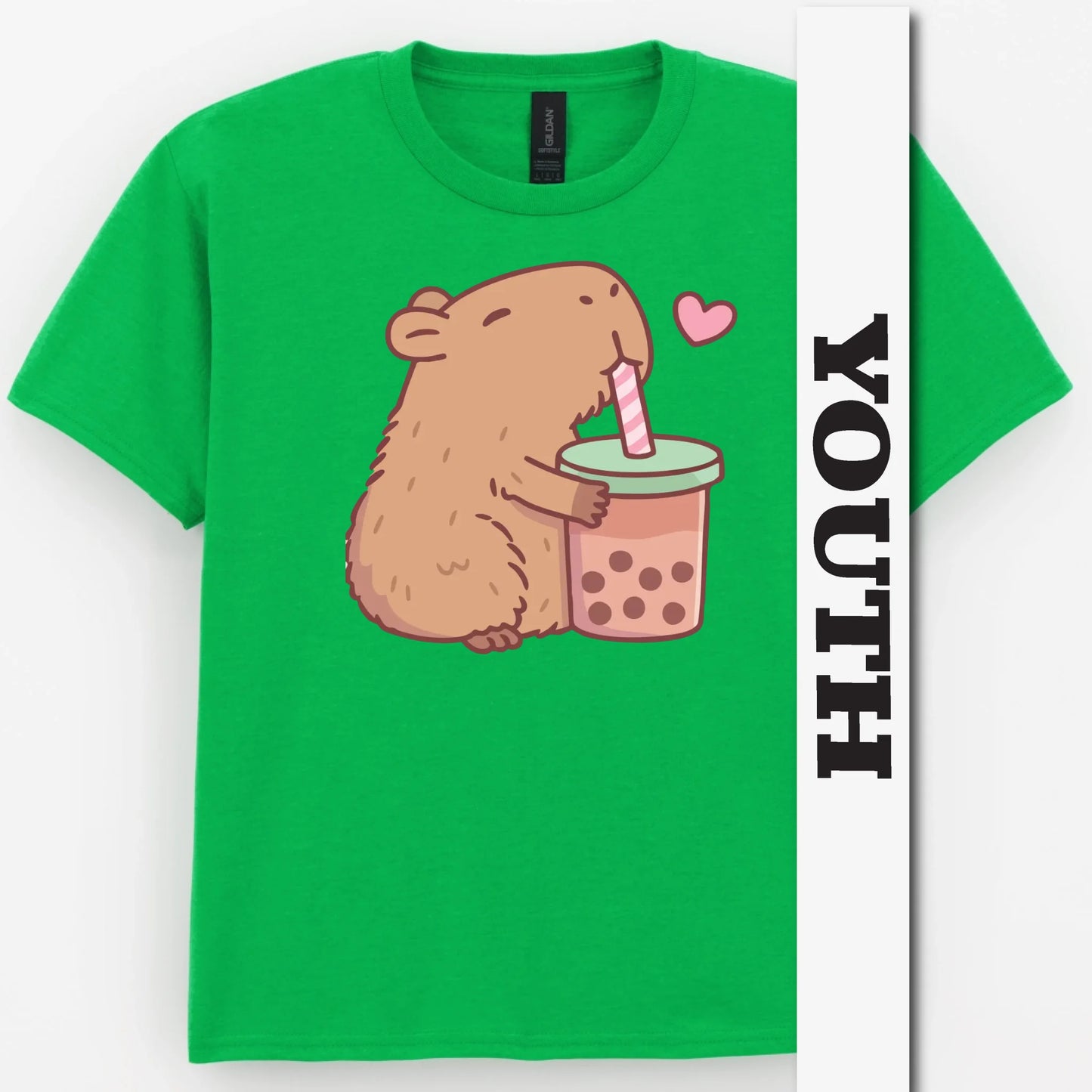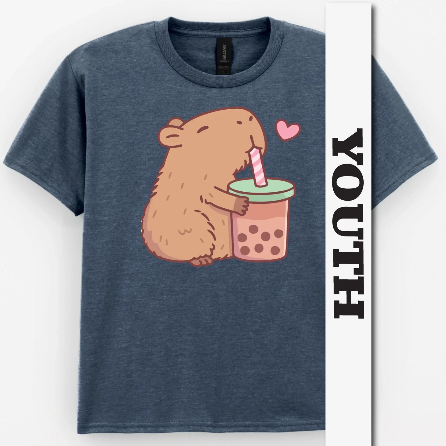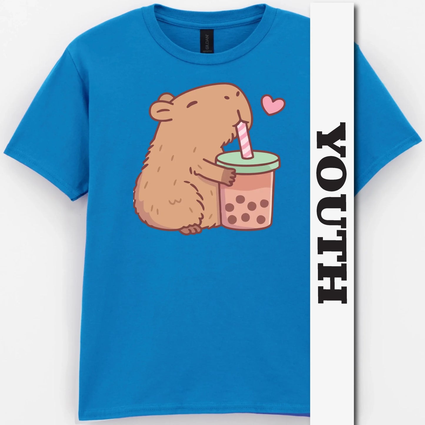 Sip back and relax with the cutest boba buddy around! This tee features an adorable capybara hugging a big cup of bubble tea with a heart full of love. Soft, comfy, and totally kawaii, it’s the perfect shirt for boba lovers and capybara fans alike.