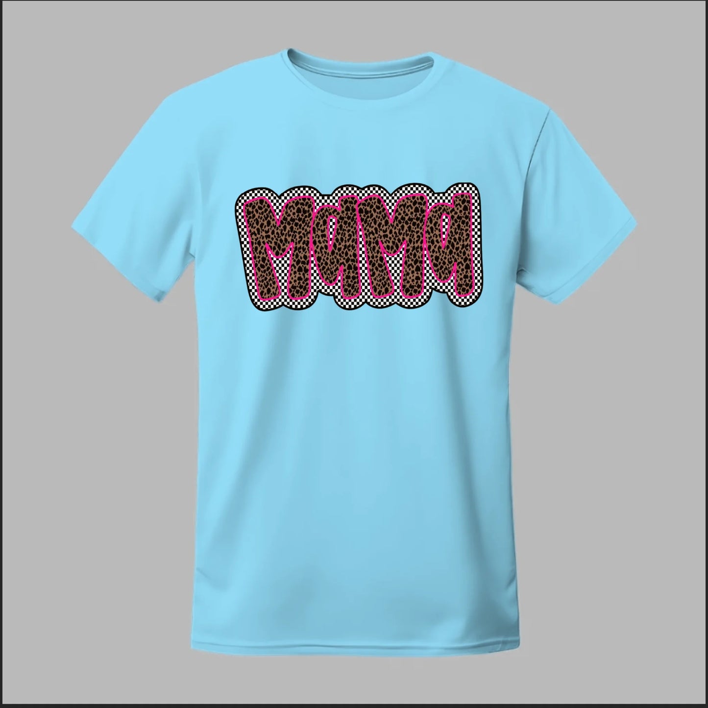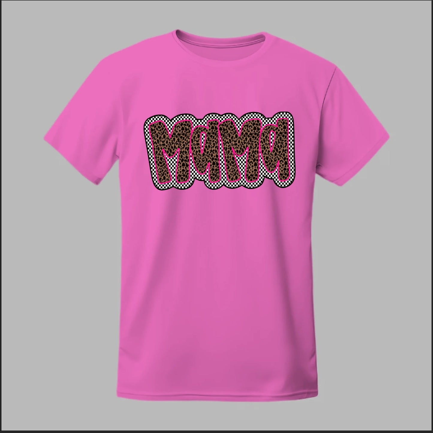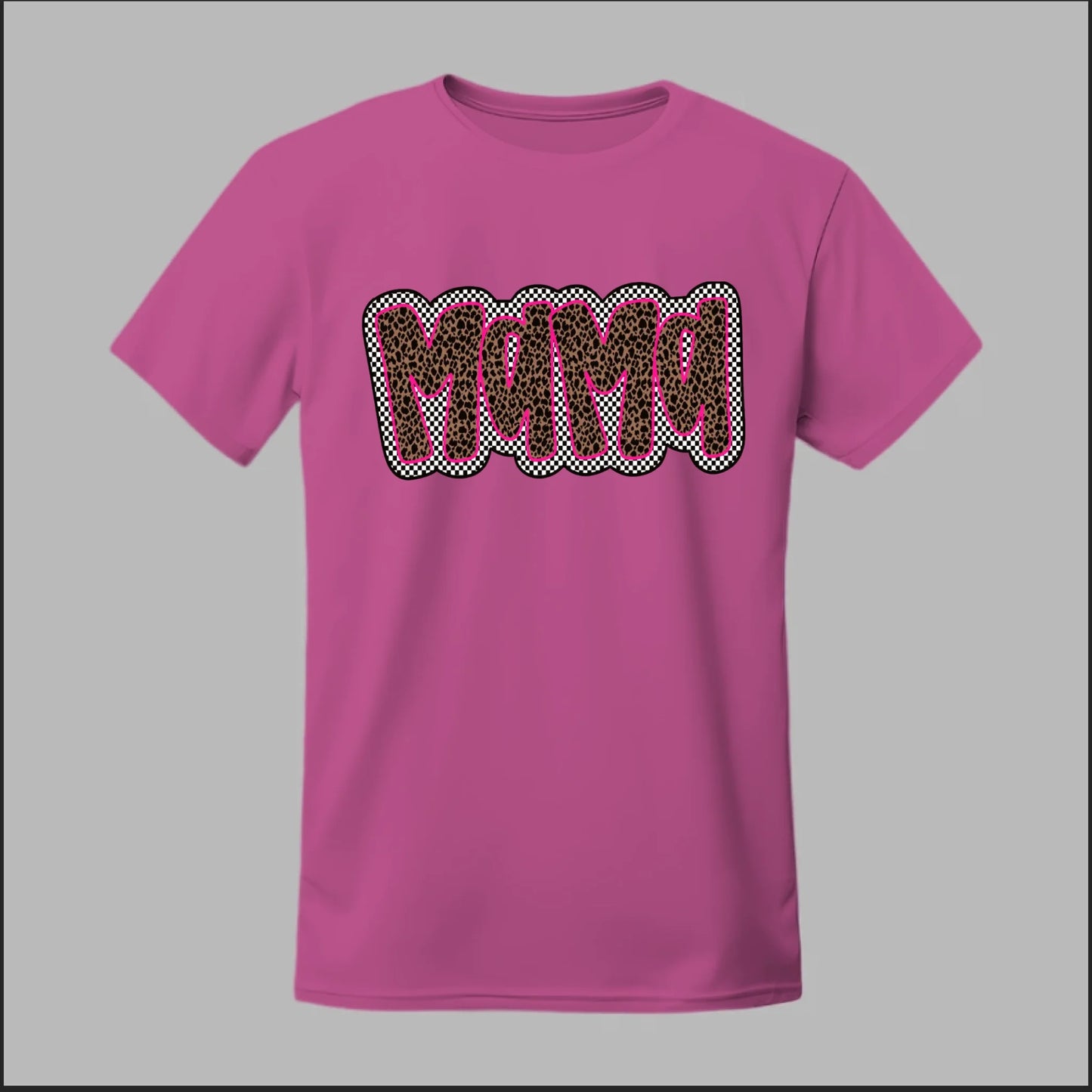 Show your fierce side with “Wild Mama.” The cheetah print and bold lettering pop against a checkered background with a bright pink outline. A fun design for moms with untamed energy.