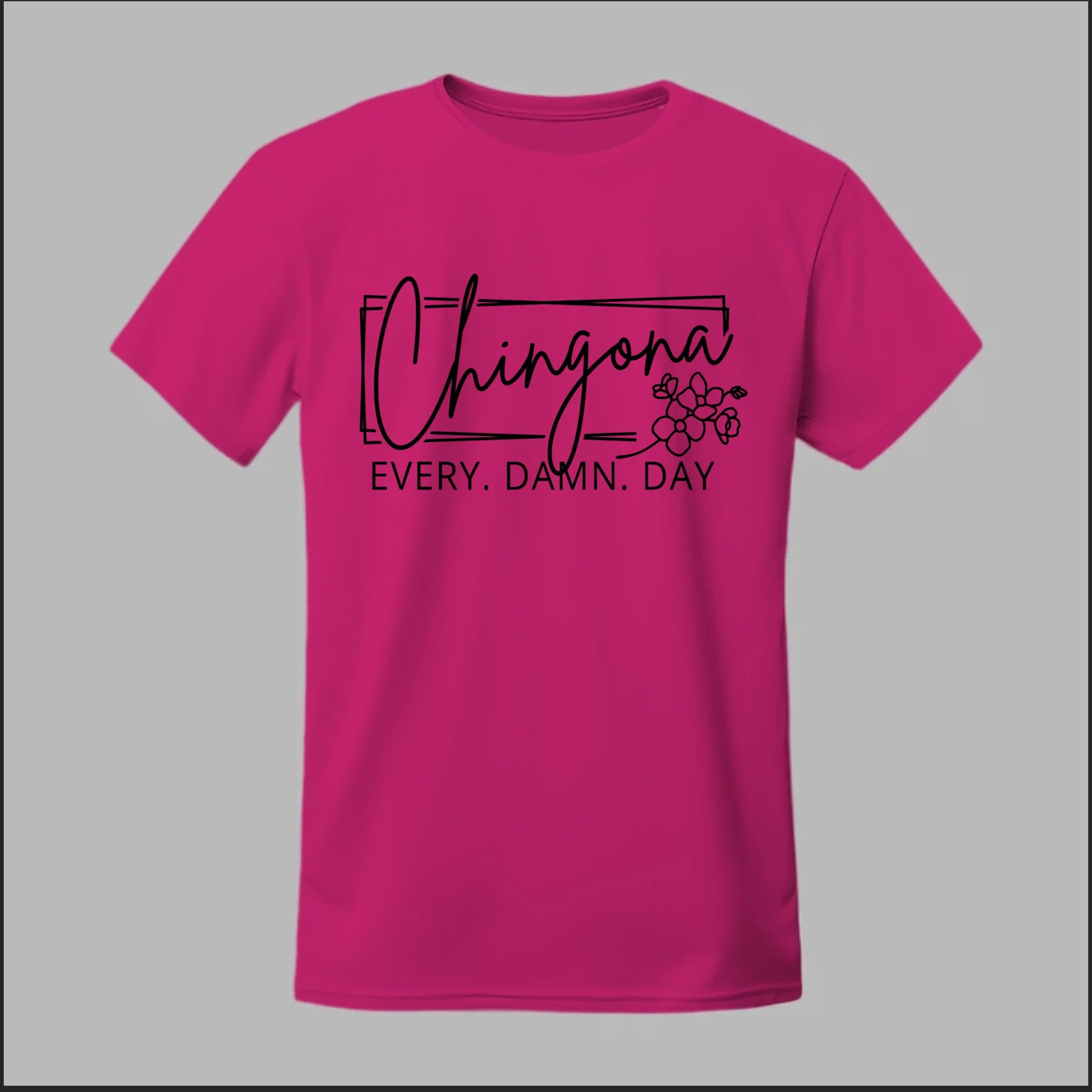 Own your power and confidence with the “Chingona Every Damn Day” tee. Featuring bold script and empowering energy, this shirt is for mujeres who hustle hard, chase dreams, and make no apologies. Soft, breathable, and full of attitude—it’s your daily reminder to be unapologetically you.