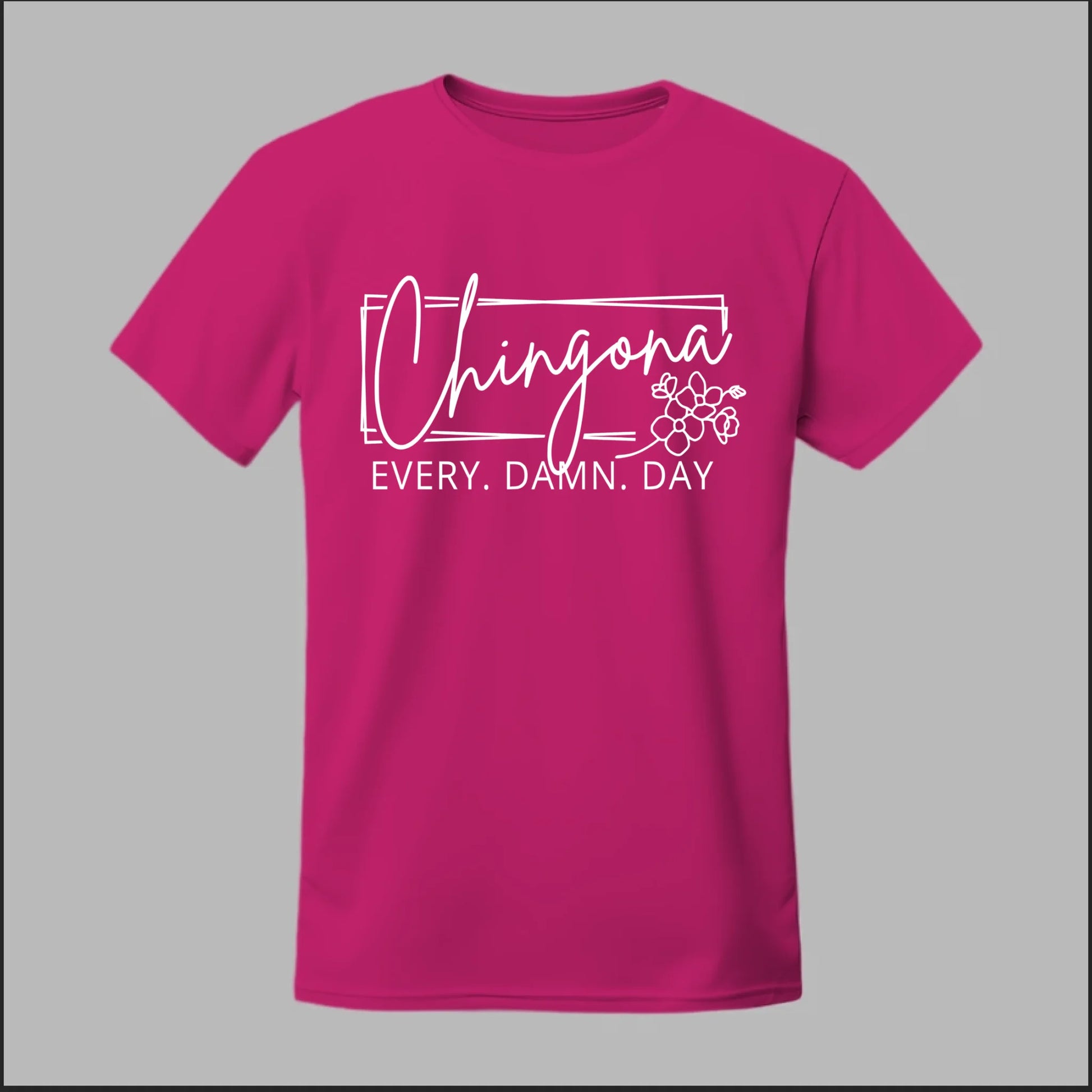 Own your power and confidence with the “Chingona Every Damn Day” tee. Featuring bold script and empowering energy, this shirt is for mujeres who hustle hard, chase dreams, and make no apologies. Soft, breathable, and full of attitude—it’s your daily reminder to be unapologetically you.