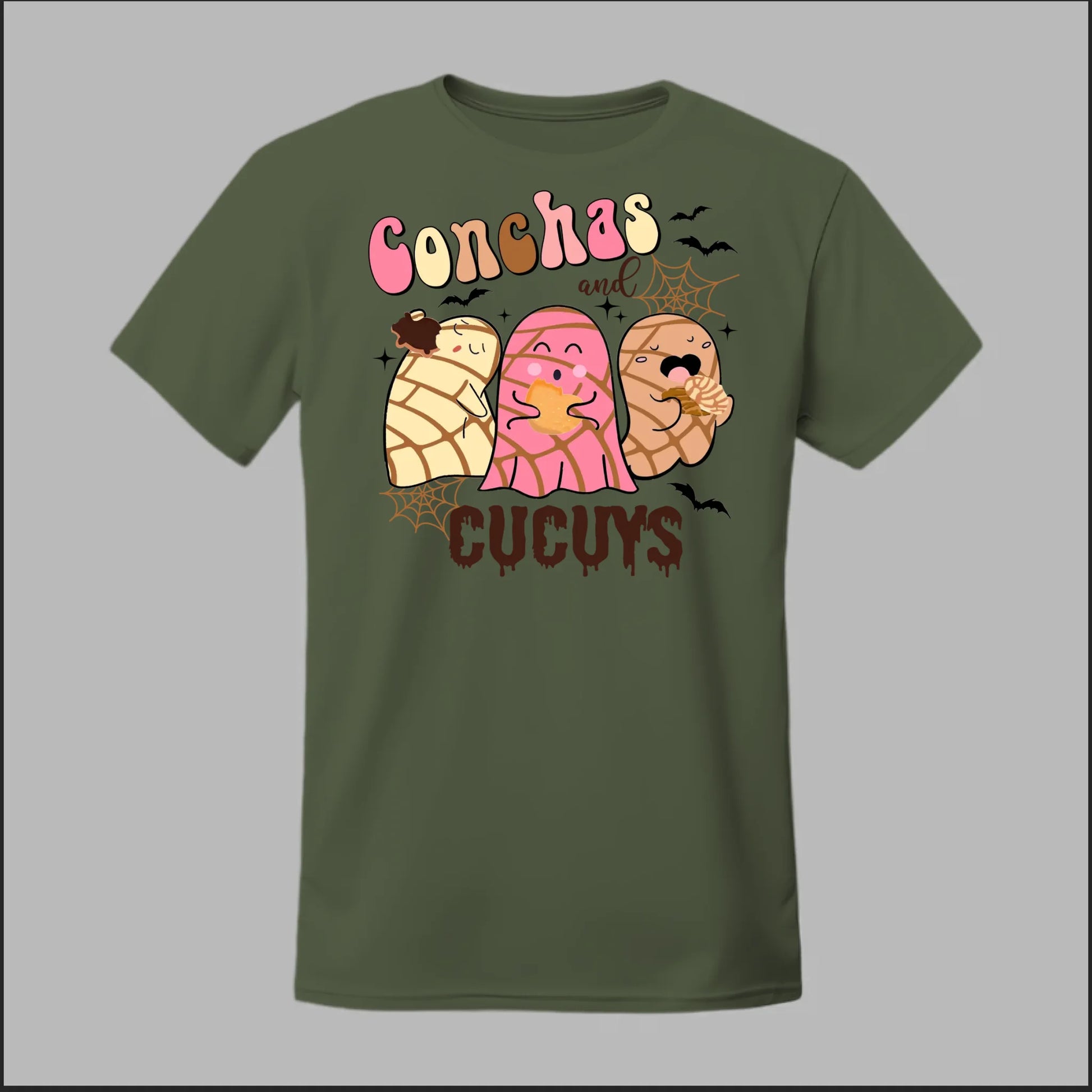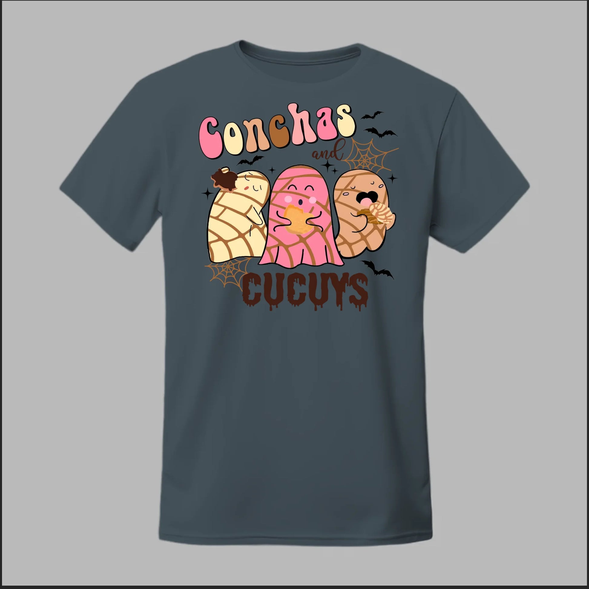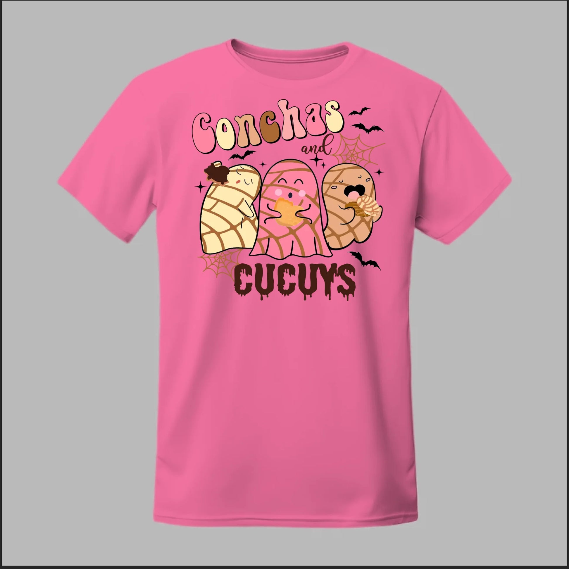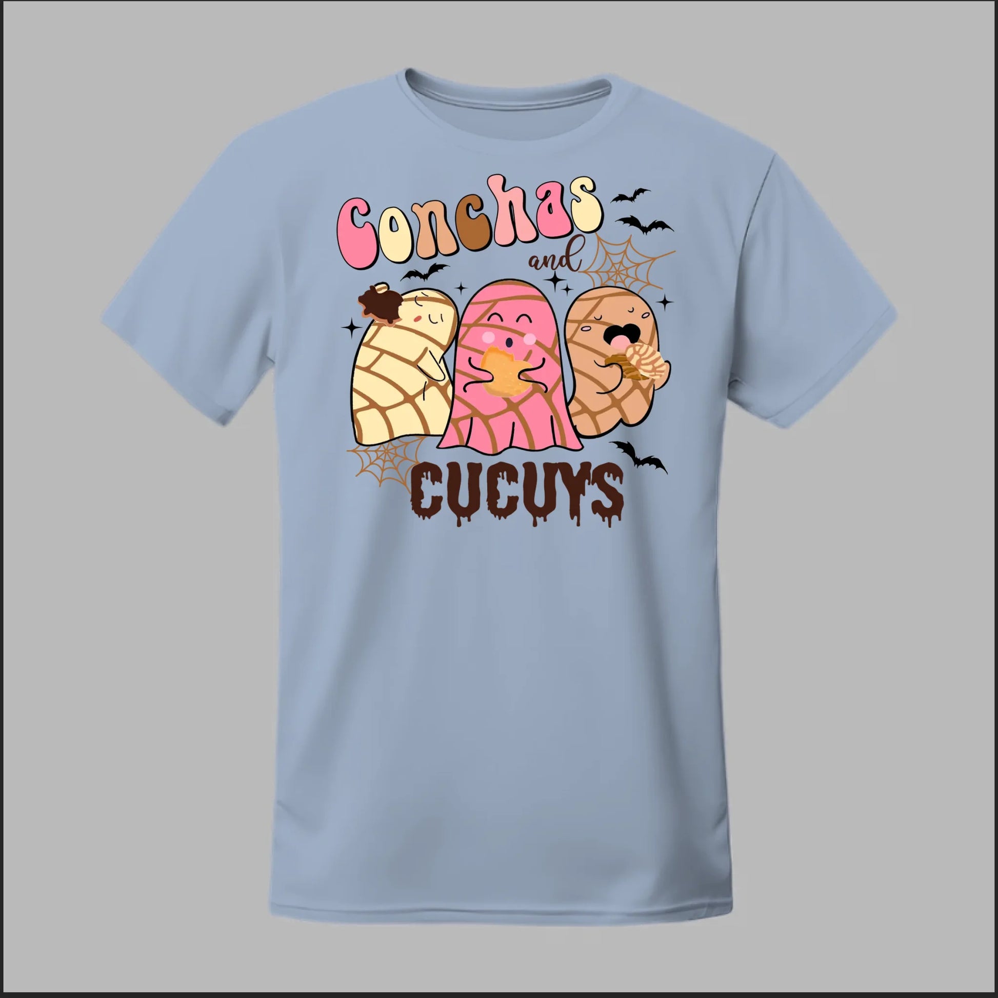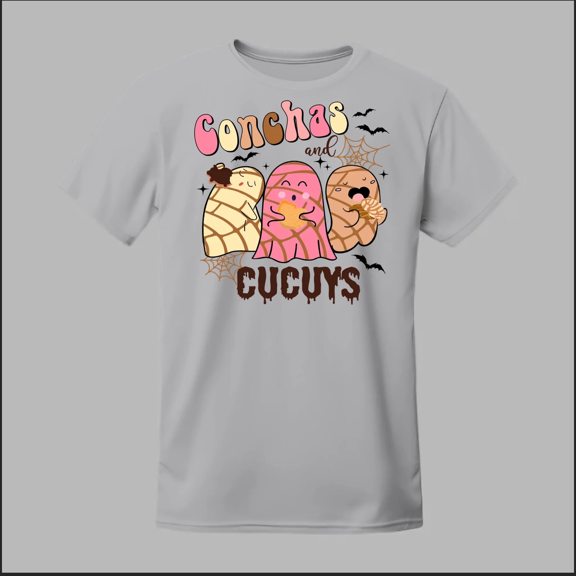 Show off your love for pan dulce and spooky fun with the Conchas and Cucuy Tee. Featuring three adorable concha-shaped cucuys (ghosts) munching on sweet bread, this design blends Mexican culture with playful Halloween vibes. Perfect for everyday wear, spooky season, or anytime you want to bring a smile to someone’s face.
