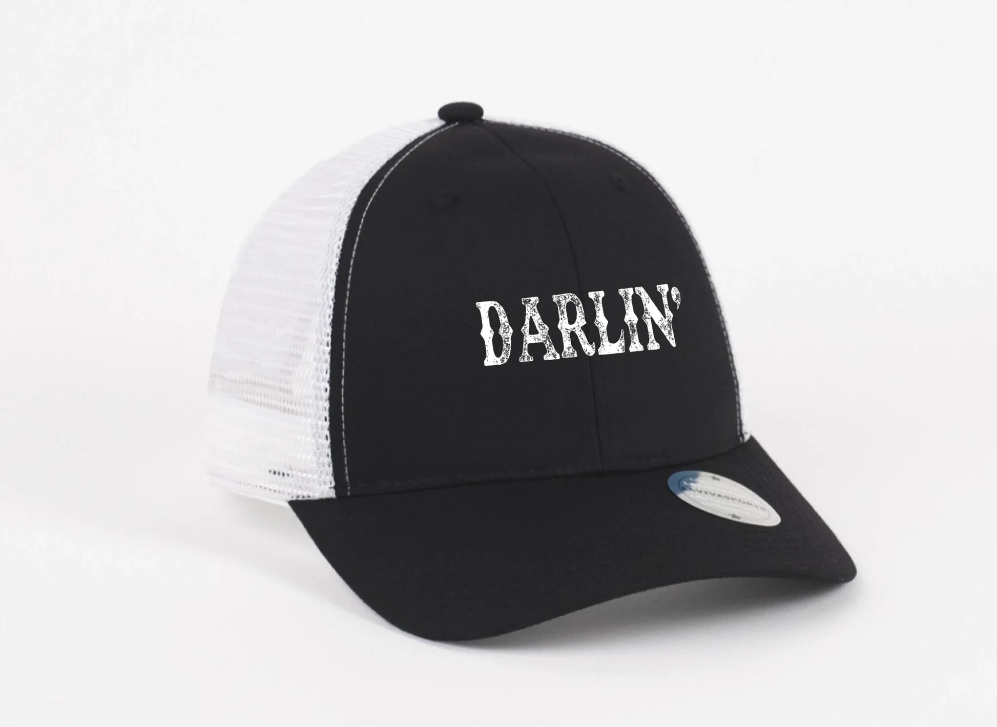 Top off your western look with the “Darlin’” distressed print hat. Perfect for rodeos, nights out, or everyday casual wear, this hat gives you a bold country statement with a vintage feel.