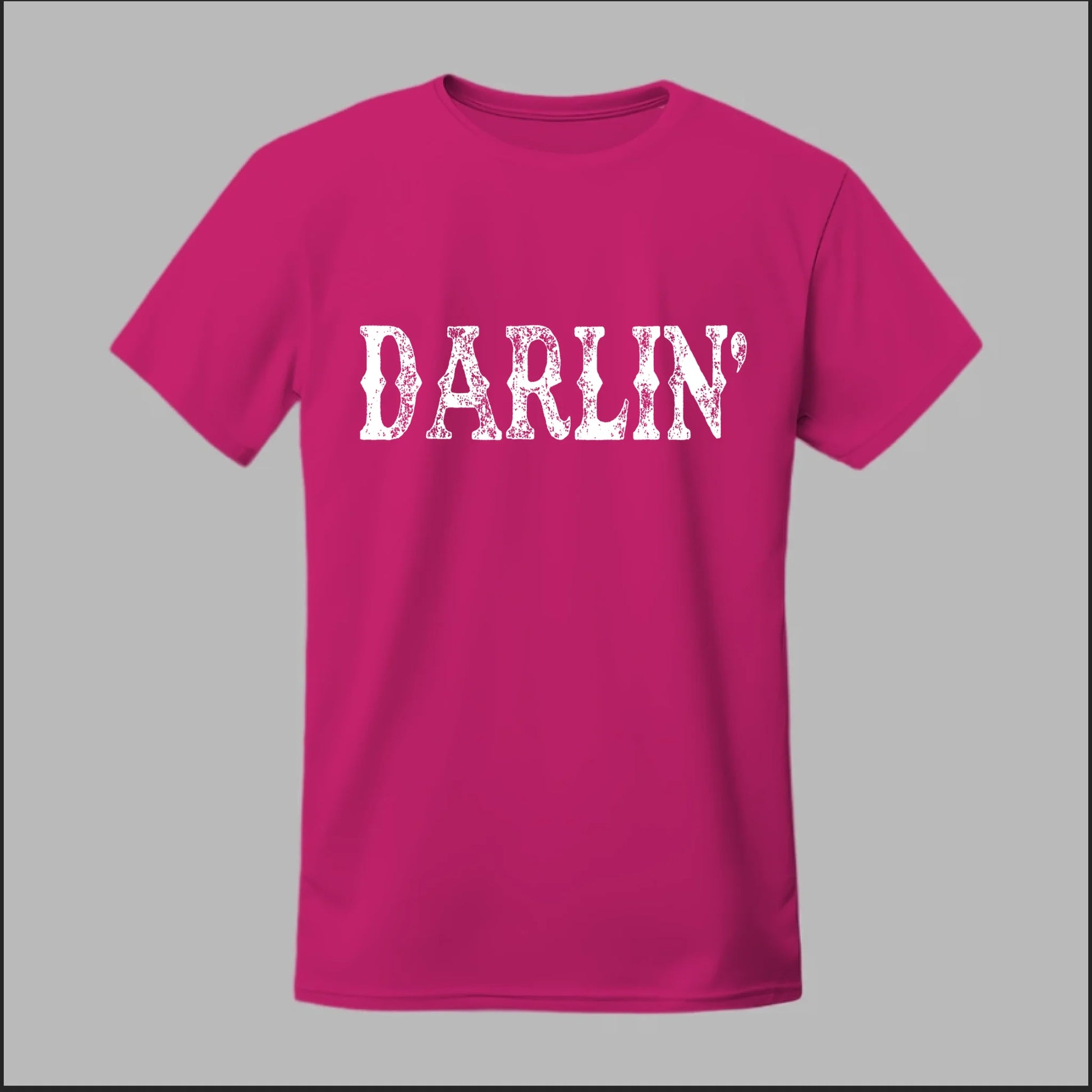 The “Darlin’” distressed tee is a classic western-inspired design with vintage flair. Soft and breathable, it’s perfect for pairing with jeans and boots for a true country vibe.