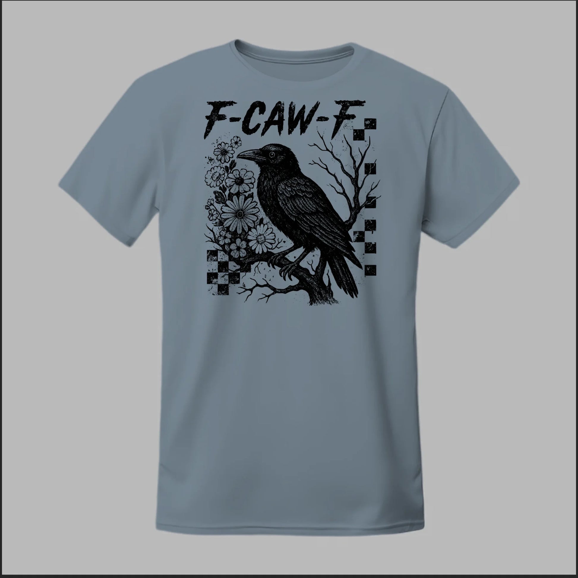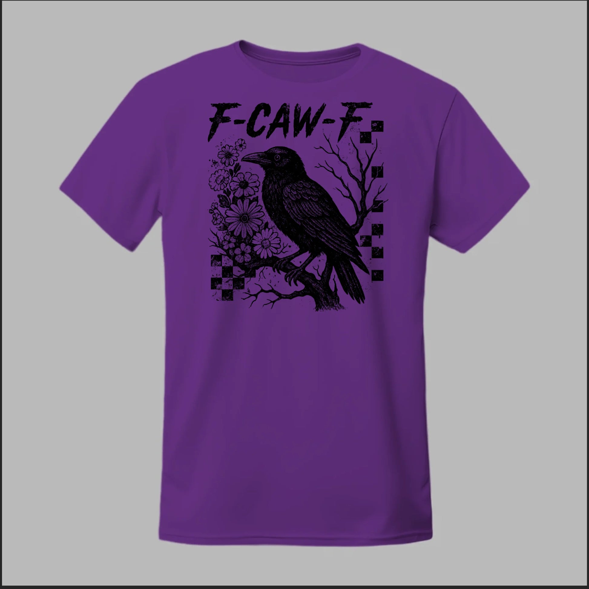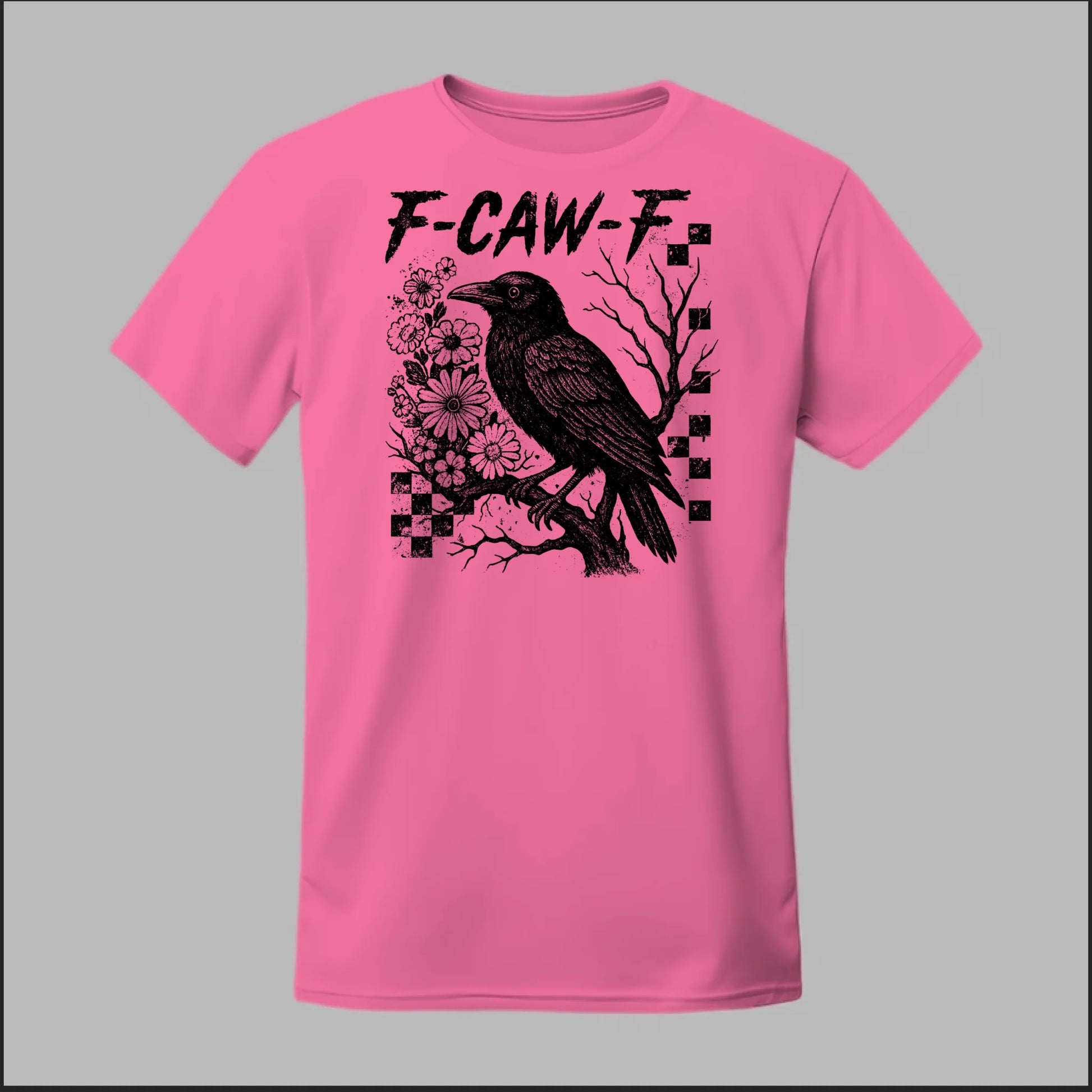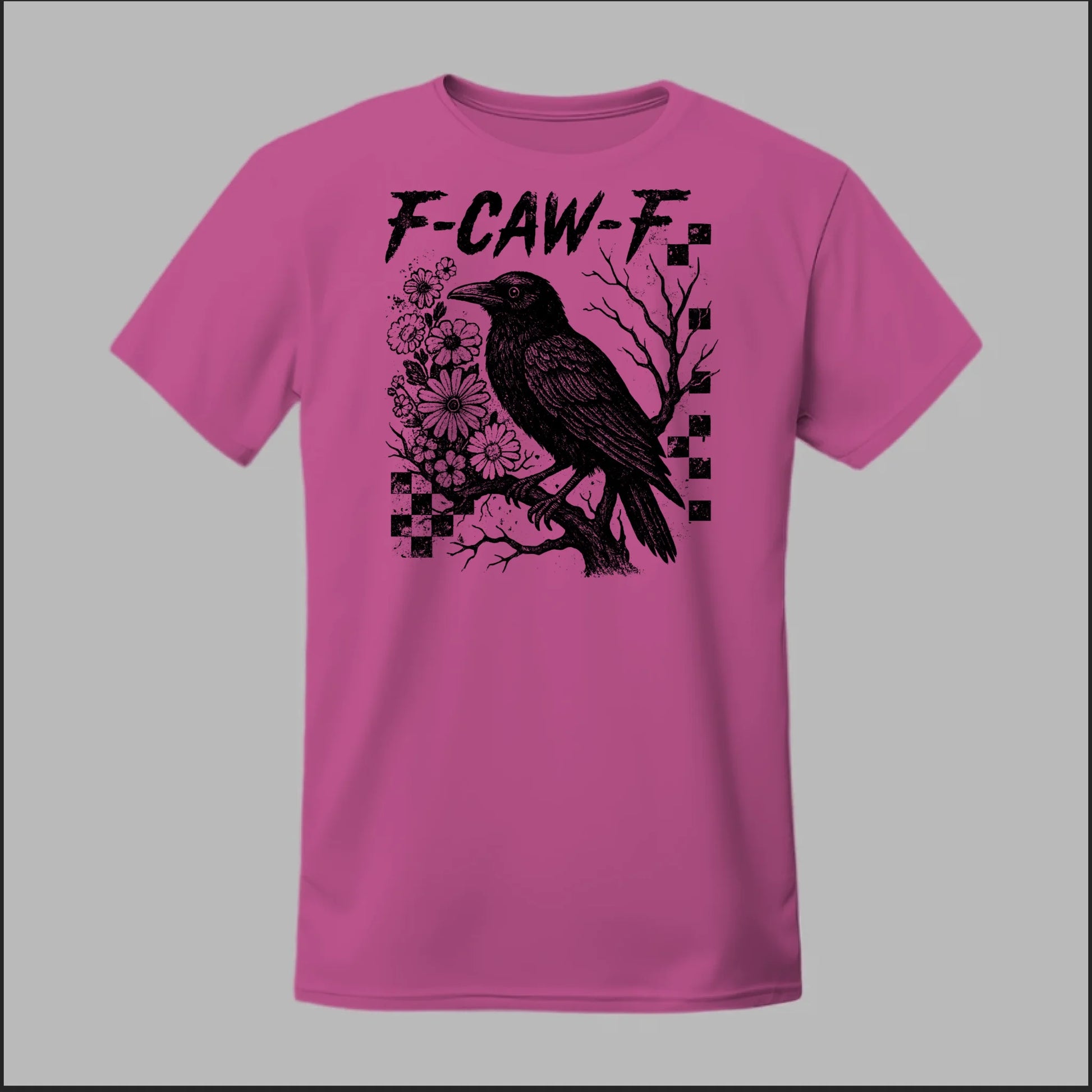 Stand out with this bold F-CAW-F crow shirt, featuring a beautifully detailed crow surrounded by florals and accents. Perfect for anyone with a love of dark humor, gothic style, or unique statement art. A comfortable tee that adds attitude to any outfit.