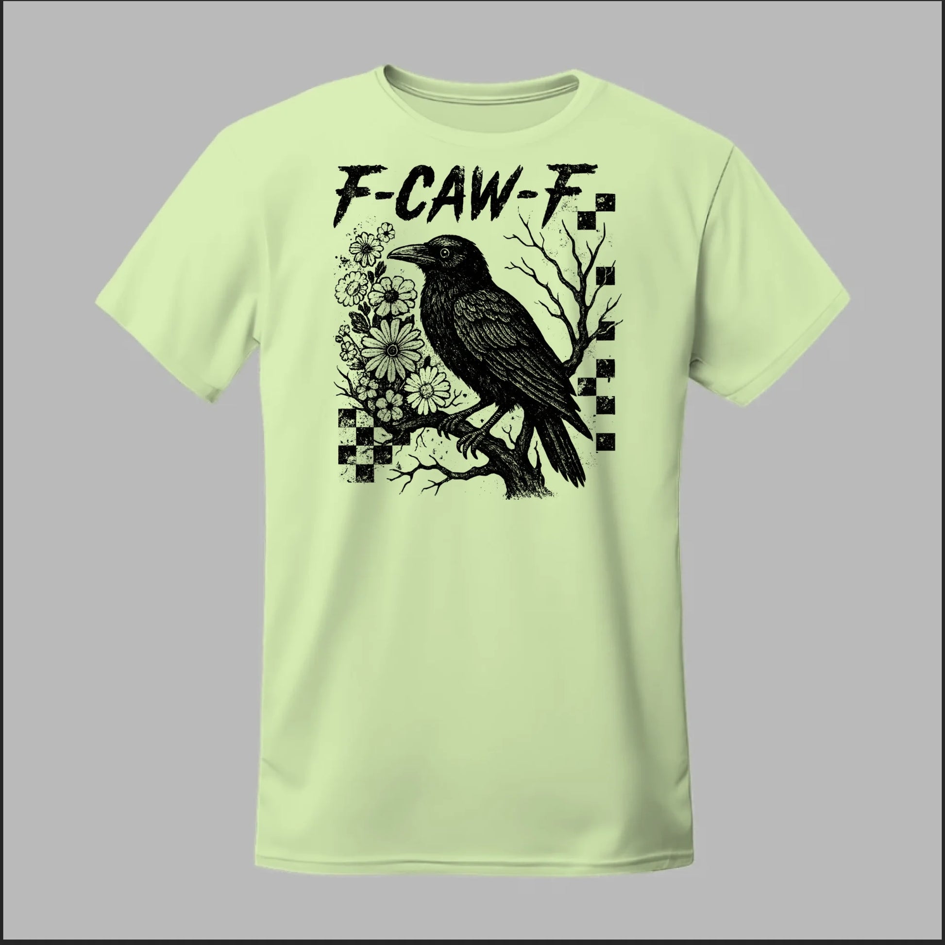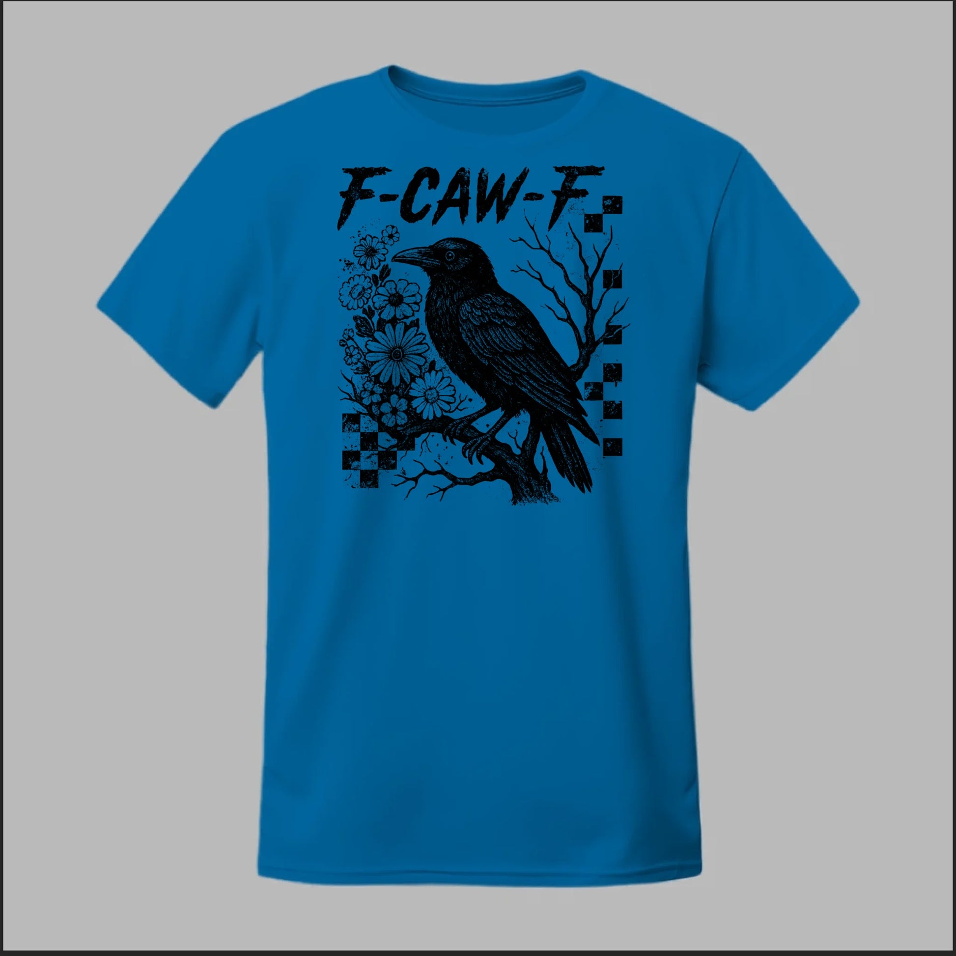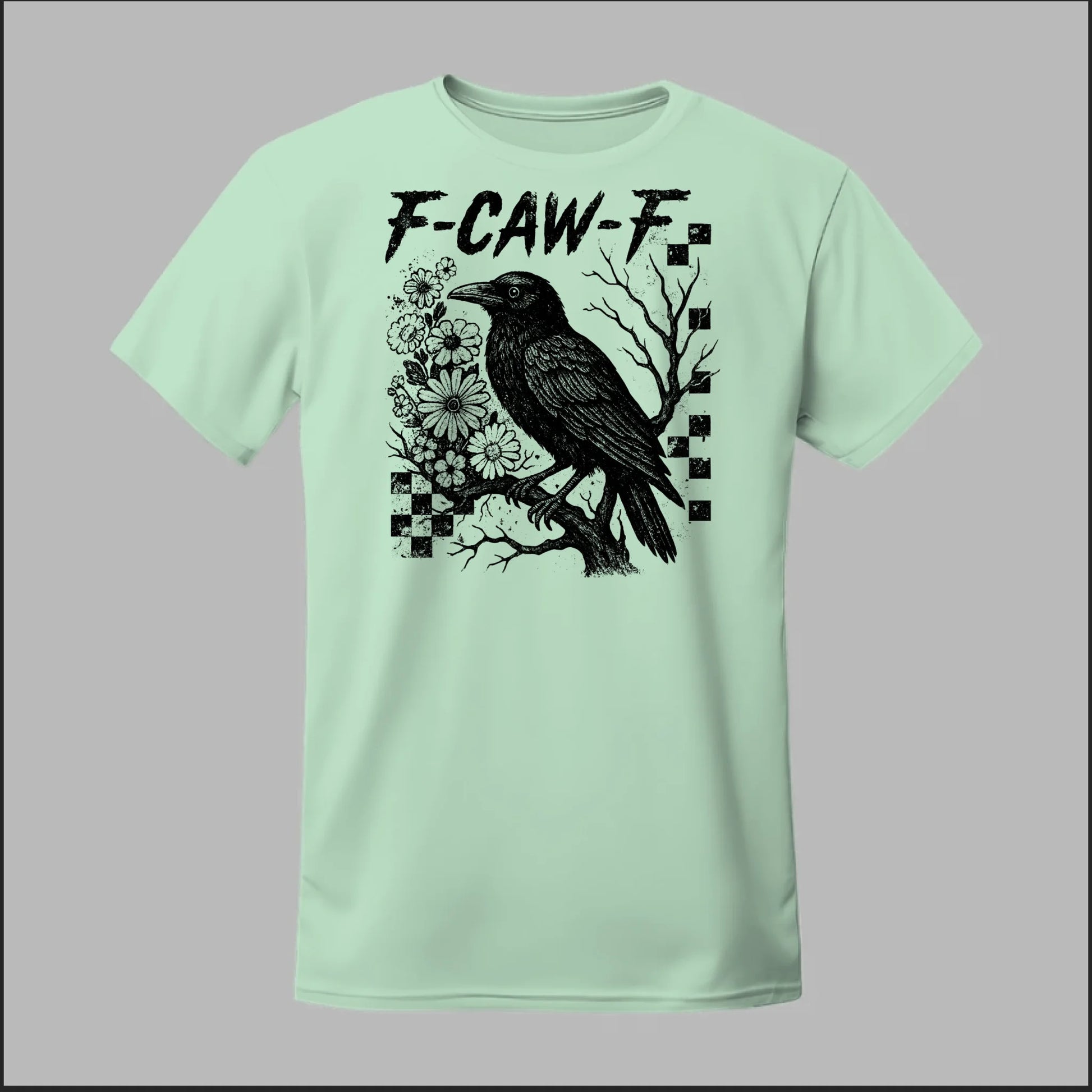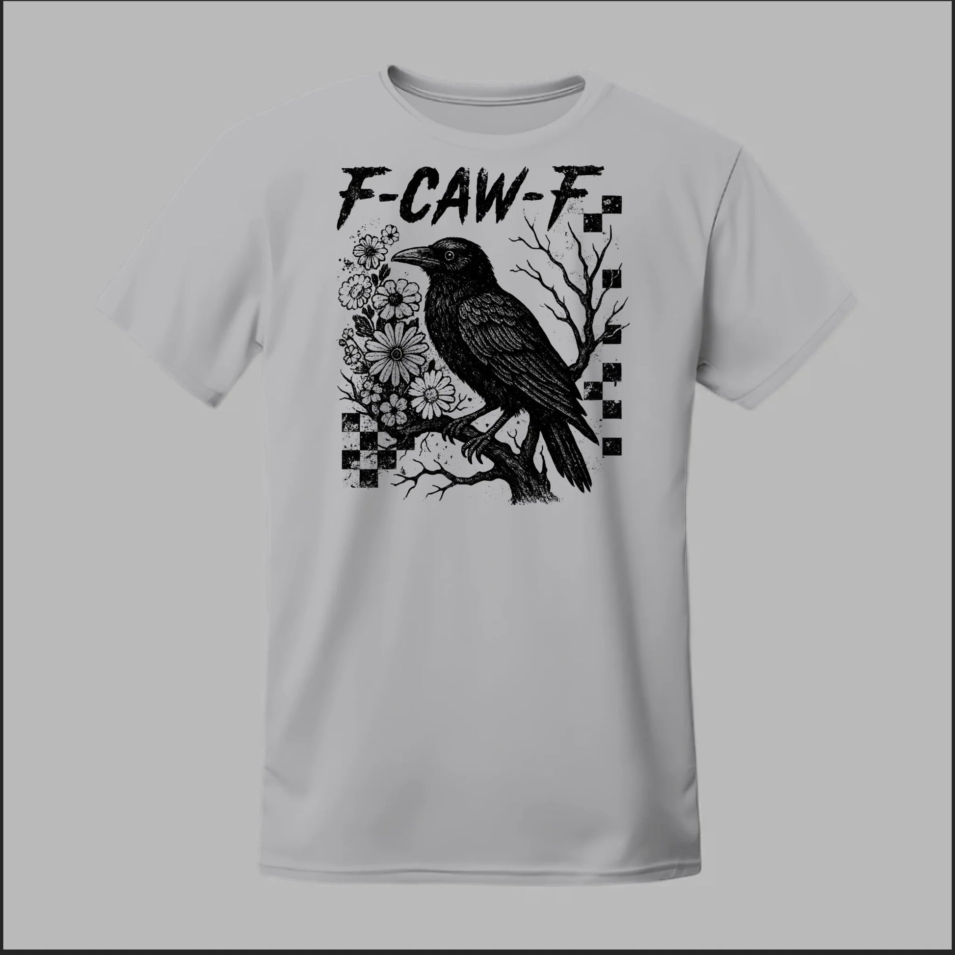Stand out with this bold F-CAW-F crow shirt, featuring a beautifully detailed crow surrounded by florals and accents. Perfect for anyone with a love of dark humor, gothic style, or unique statement art. A comfortable tee that adds attitude to any outfit.