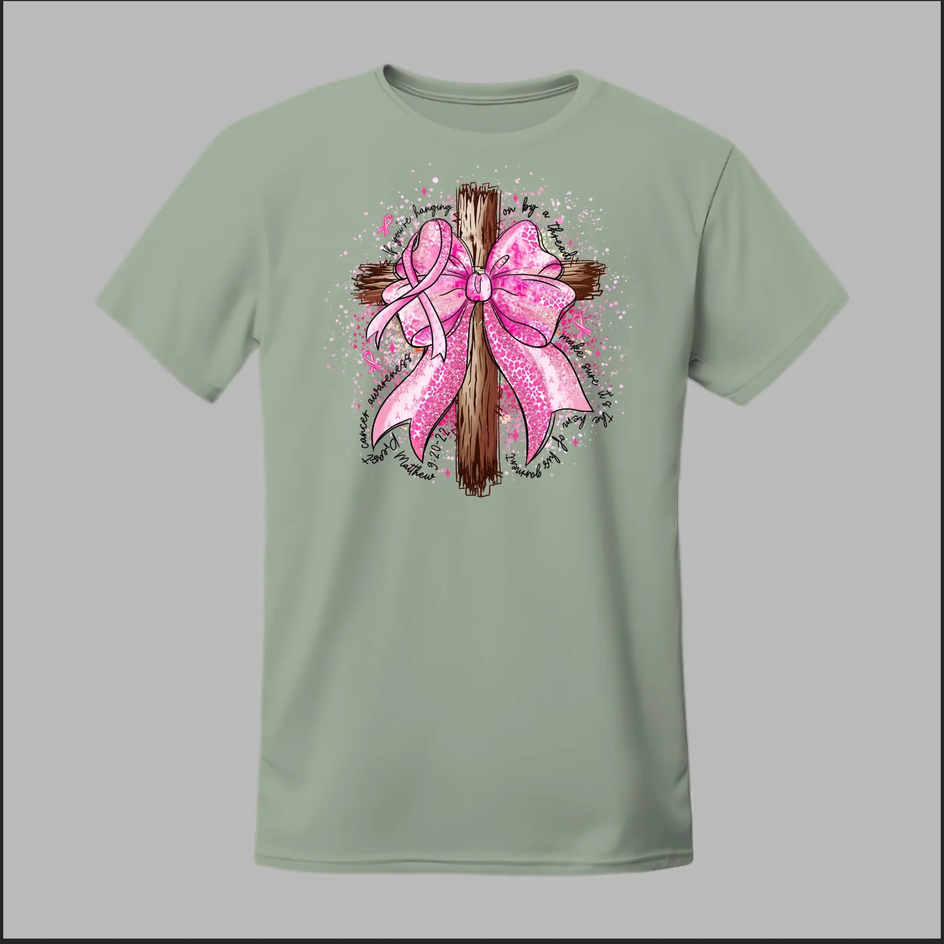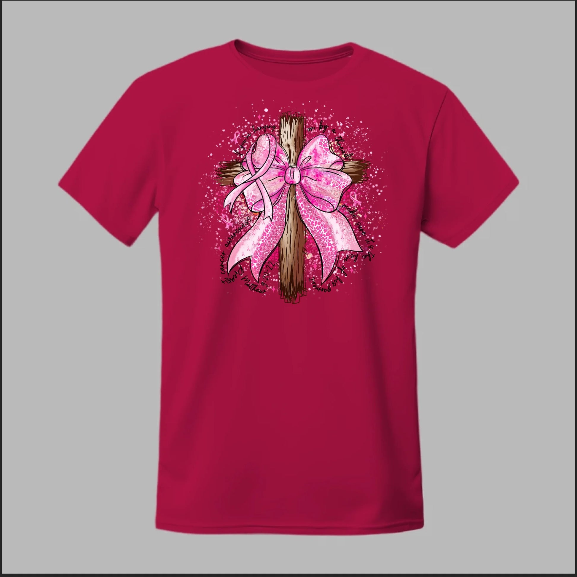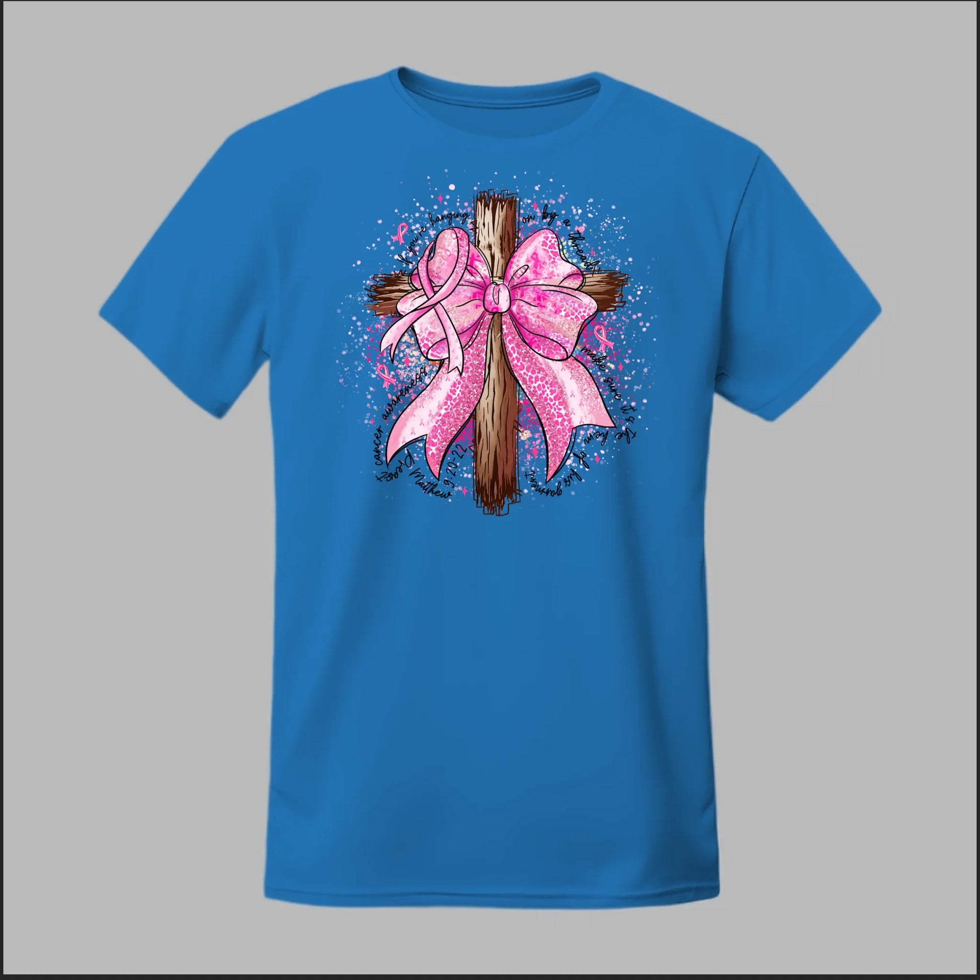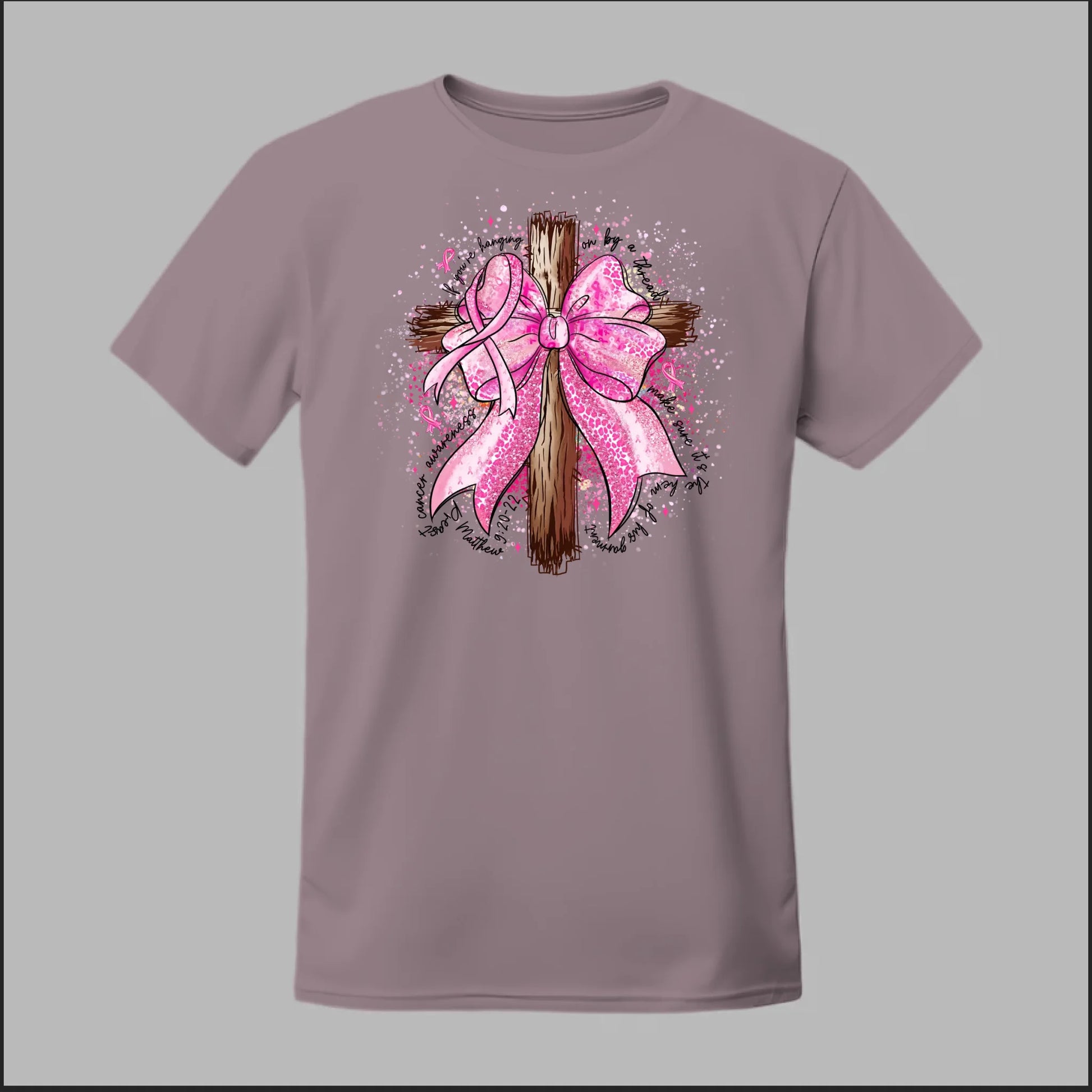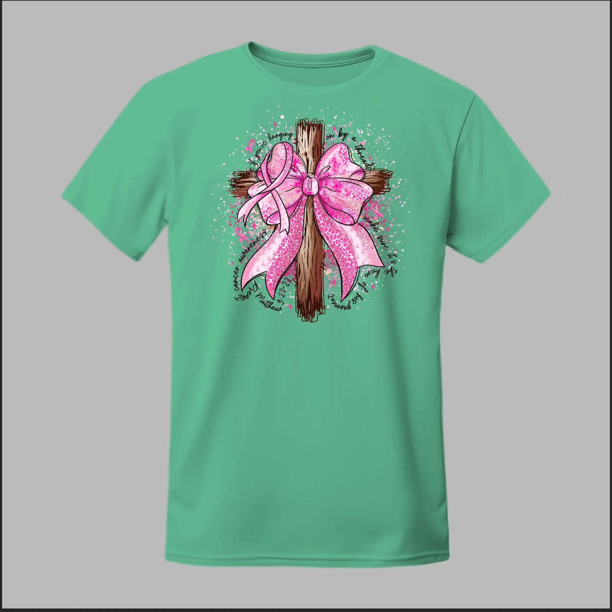 The Faith Over Fear Tee features a rustic wooden cross wrapped in a vibrant pink ribbon and bow, surrounded by splashes of uplifting color. Symbolizing strength, hope, and faith, this design is a meaningful way to show support for breast cancer awareness and honor those fighting the battle. Perfect for awareness walks, church events, or everyday wear, it’s a bold reminder that faith and courage shine brightest in the fight.