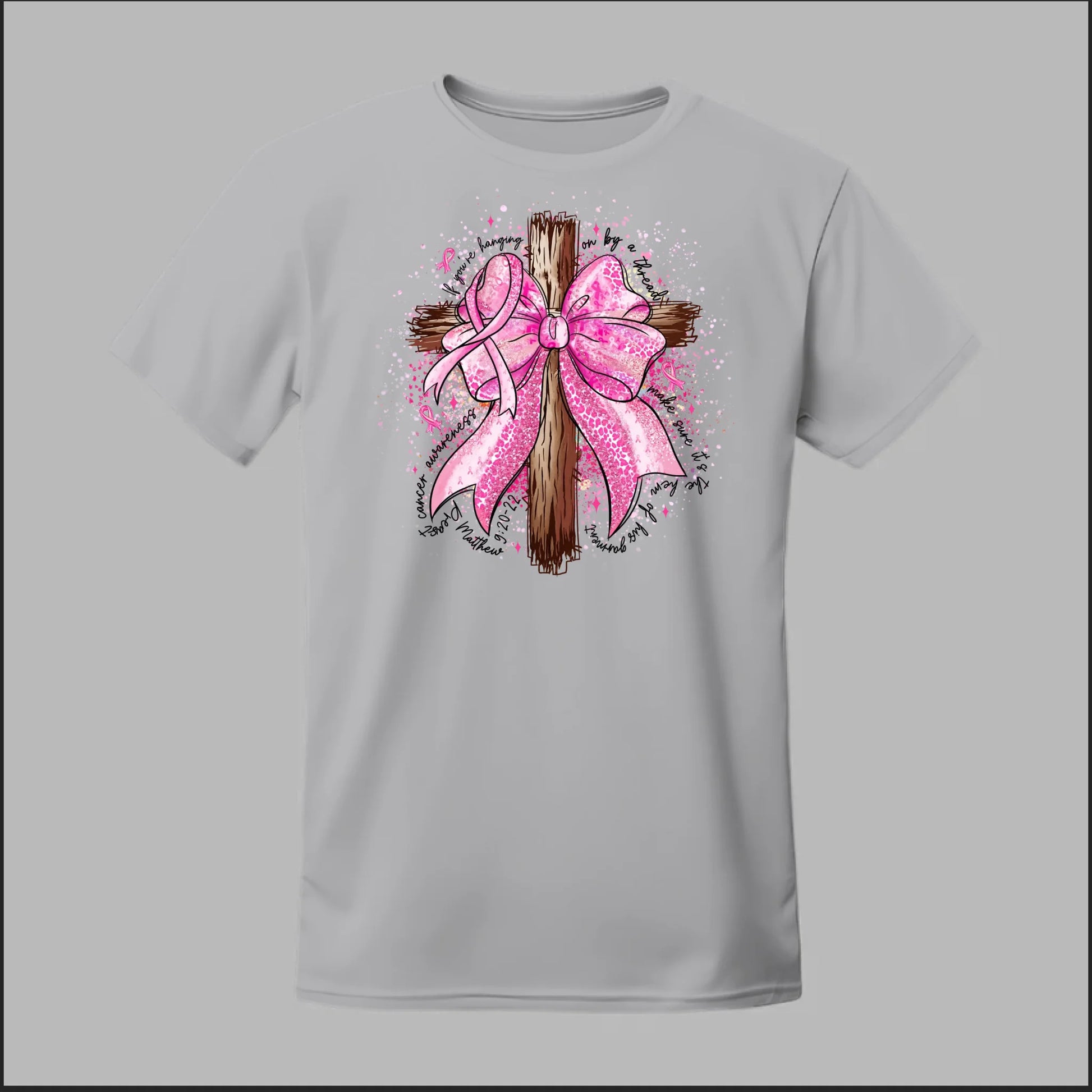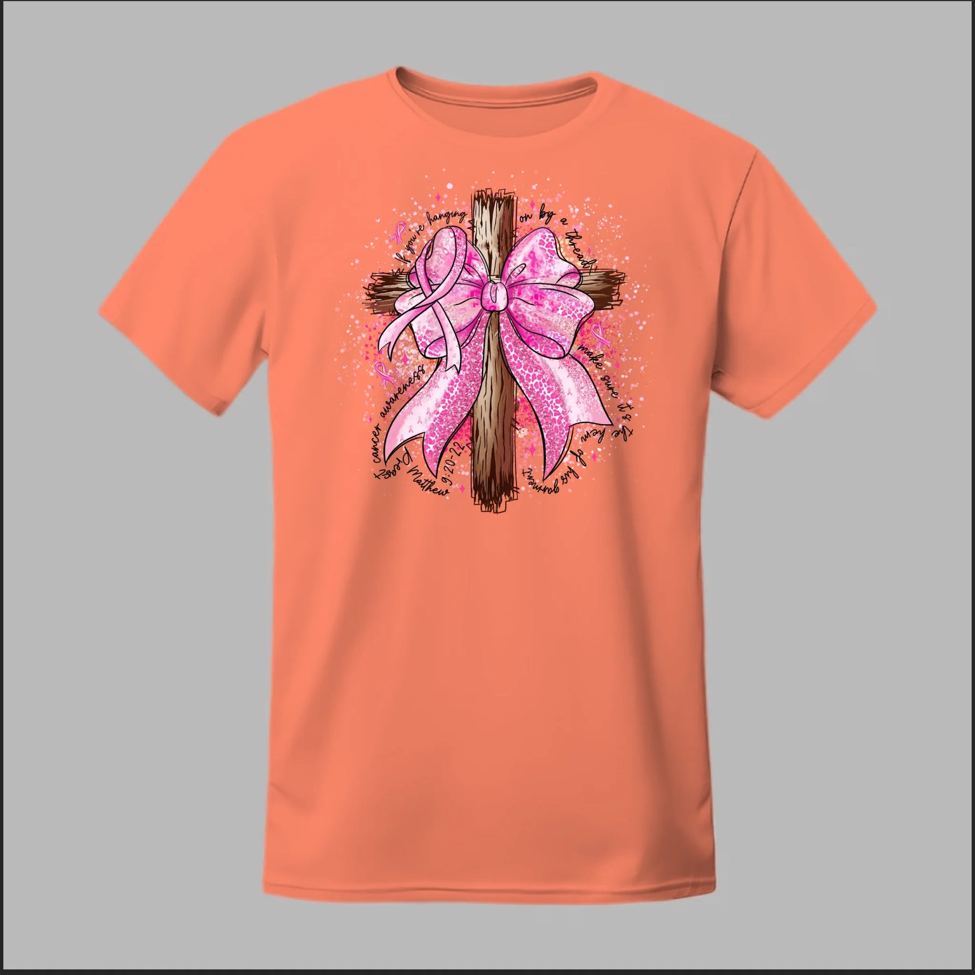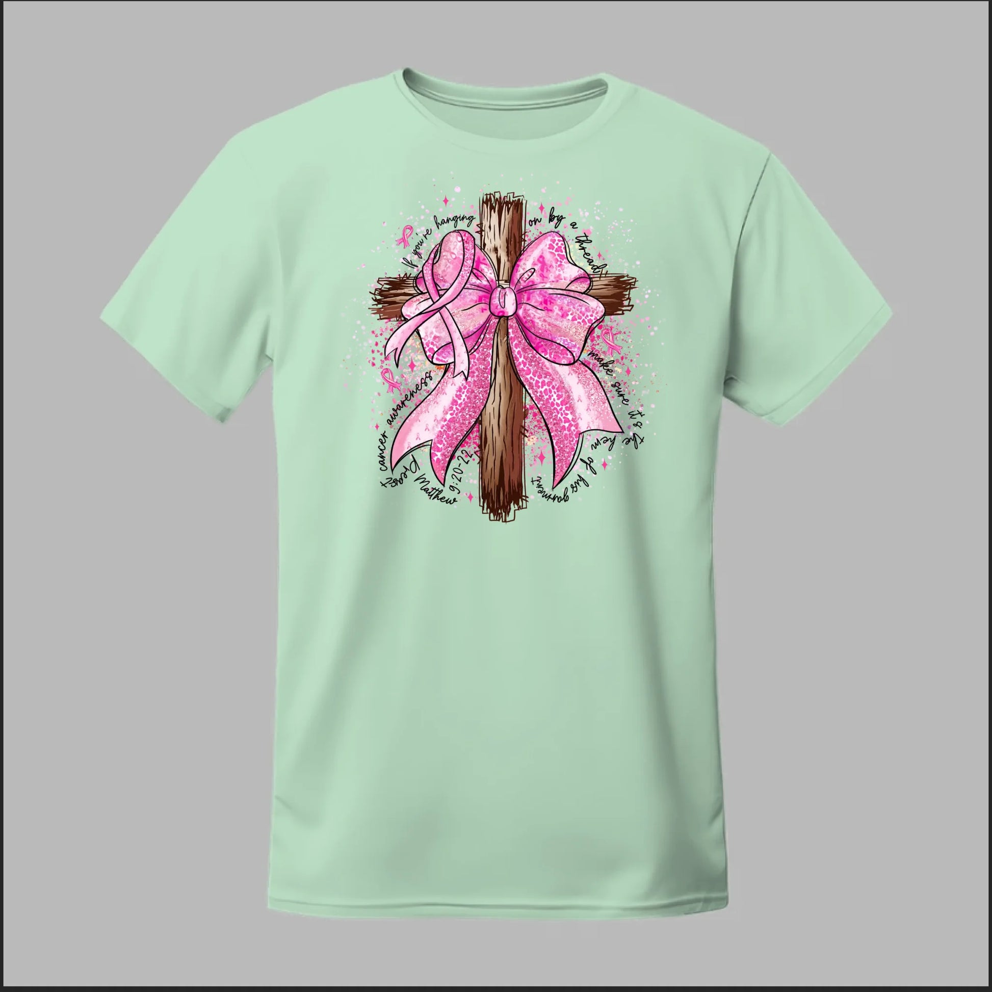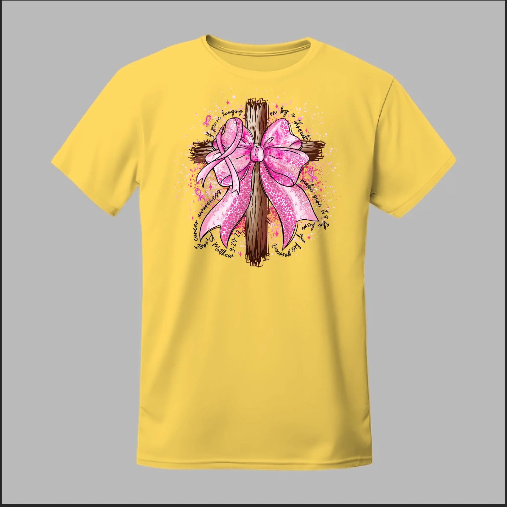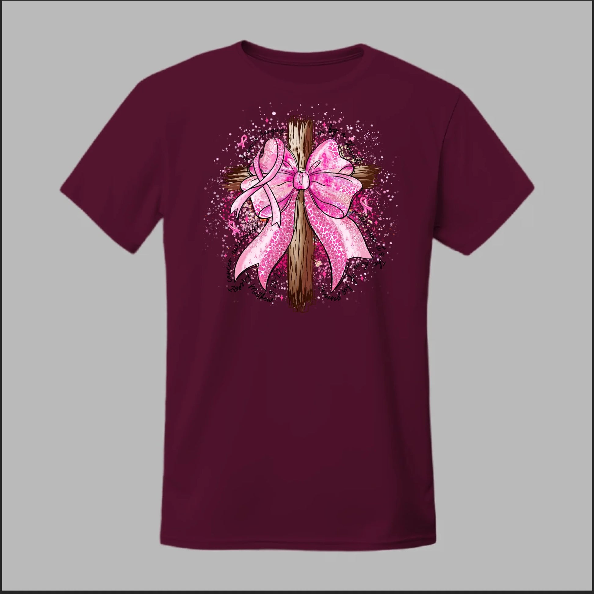 The Faith Over Fear Tee features a rustic wooden cross wrapped in a vibrant pink ribbon and bow, surrounded by splashes of uplifting color. Symbolizing strength, hope, and faith, this design is a meaningful way to show support for breast cancer awareness and honor those fighting the battle. Perfect for awareness walks, church events, or everyday wear, it’s a bold reminder that faith and courage shine brightest in the fight.