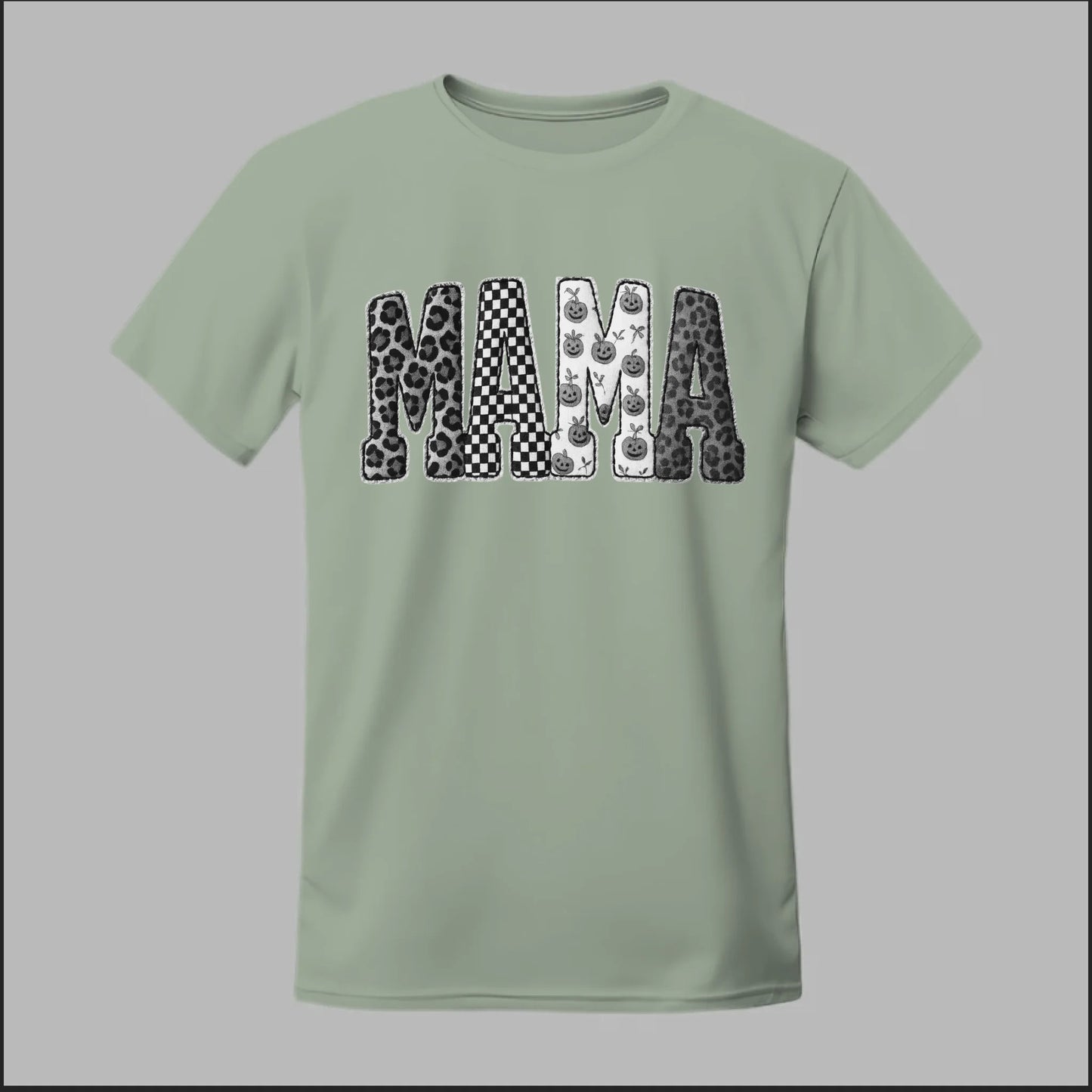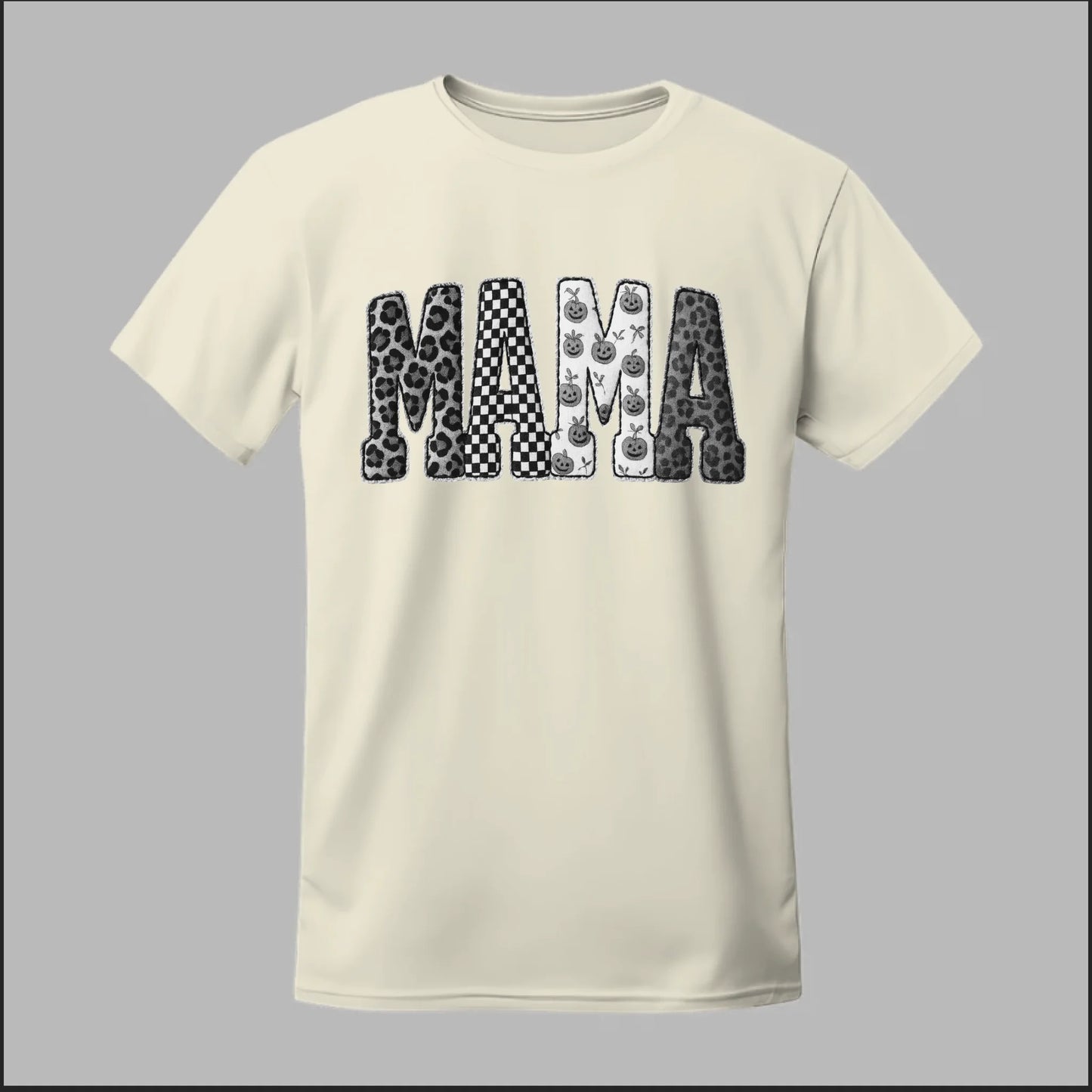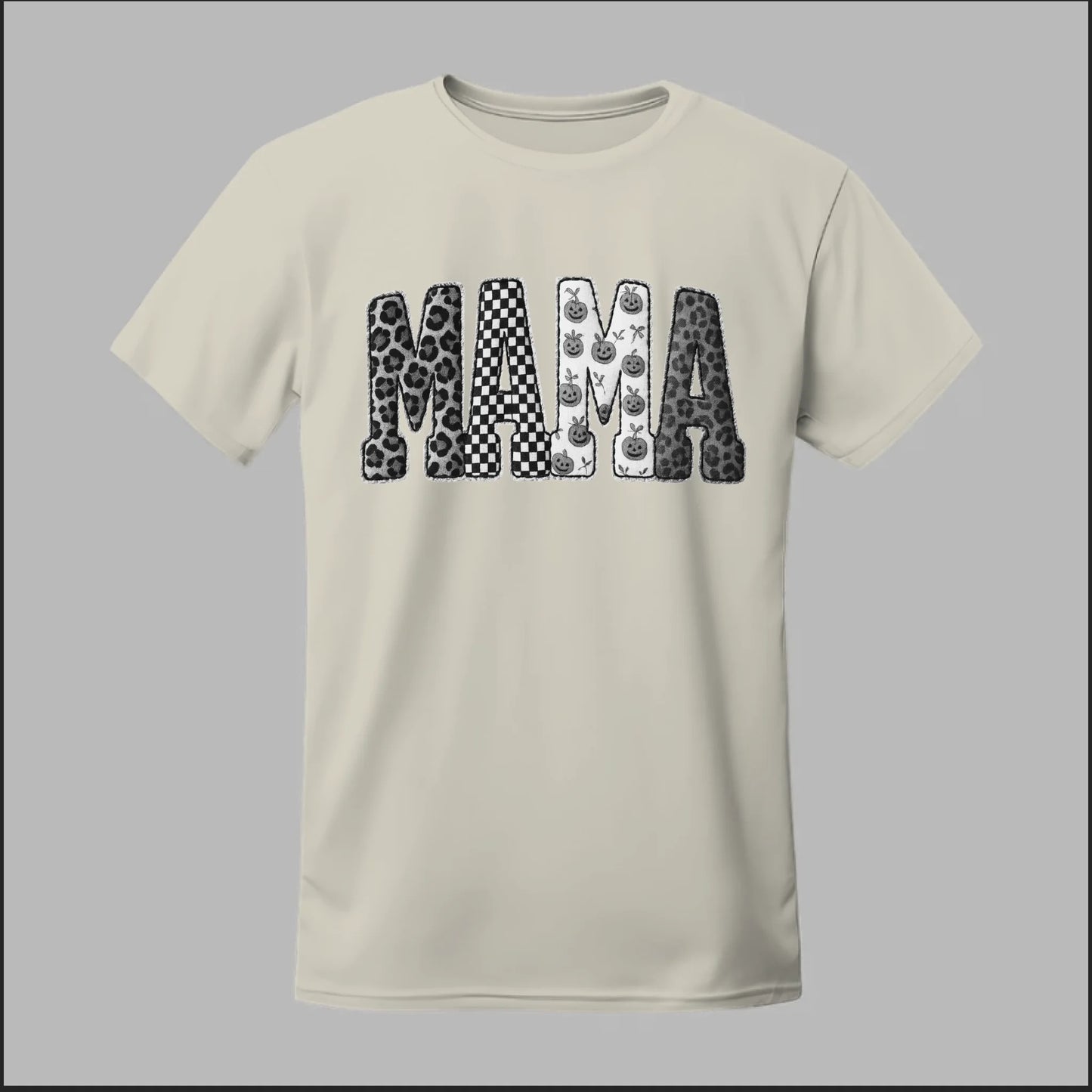 Show off your seasonal spirit with the Greyscale Fall Mama Shirt! Featuring bold stitched-style letters filled with leopard print, checkerboard, and pumpkin patterns, this design gives a chic twist to classic fall vibes. The neutral black-and-white palette makes it easy to style with any outfit—perfect for cozy days, pumpkin patch outings, or casual fall fun.