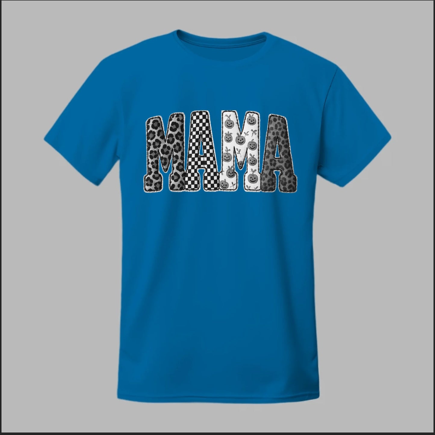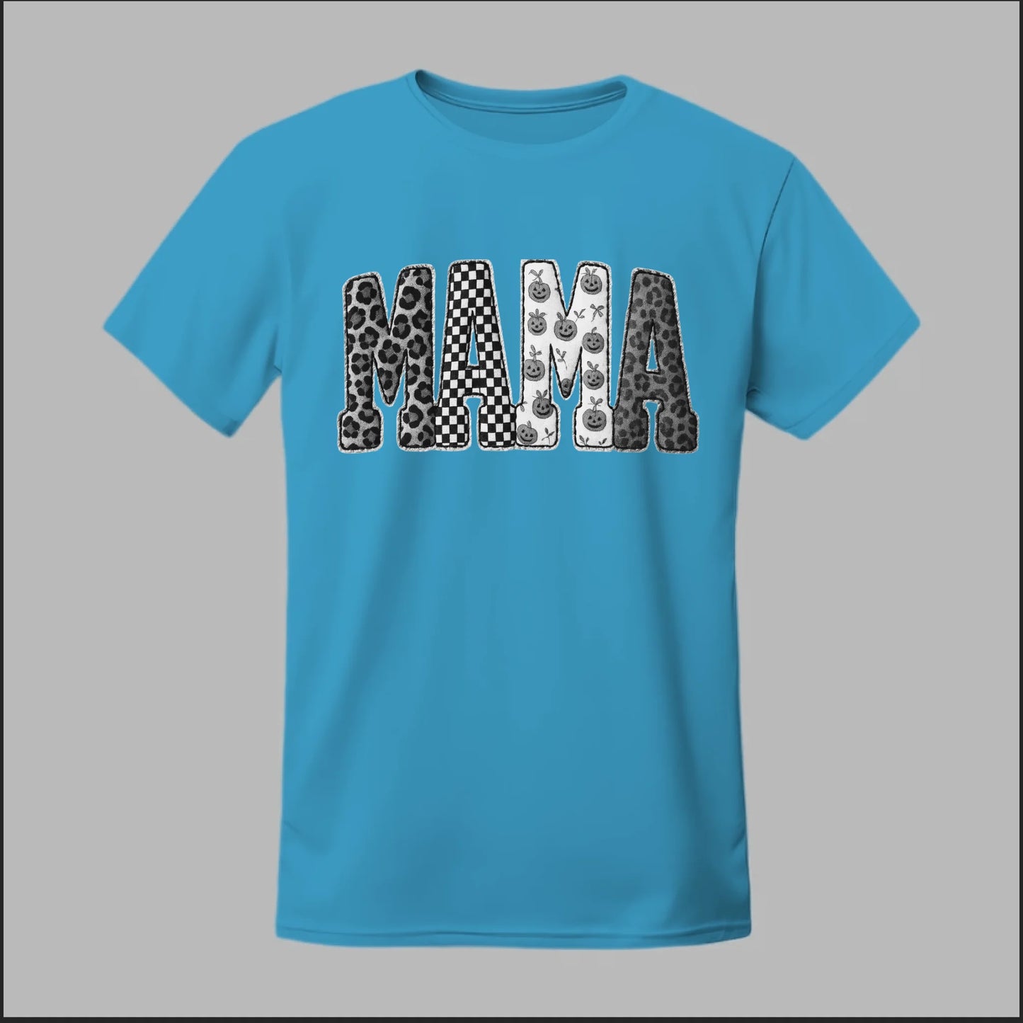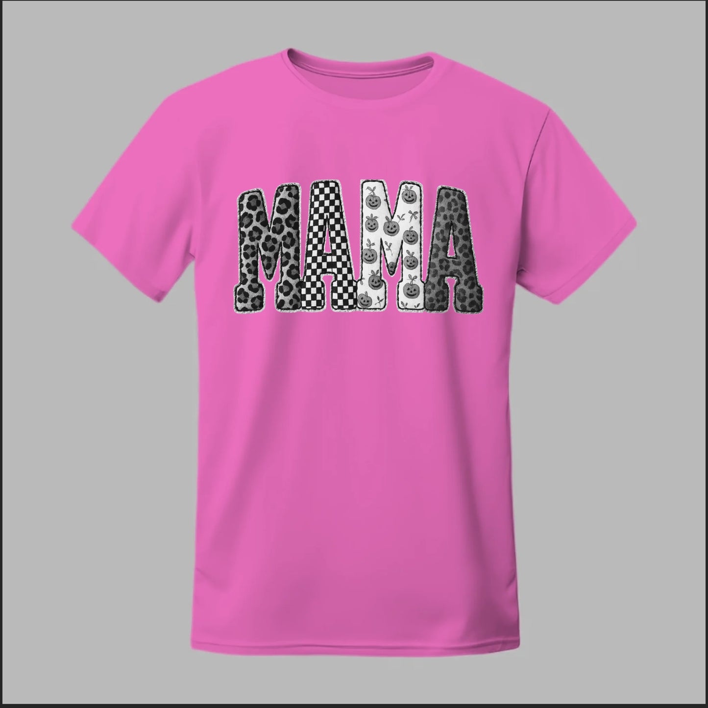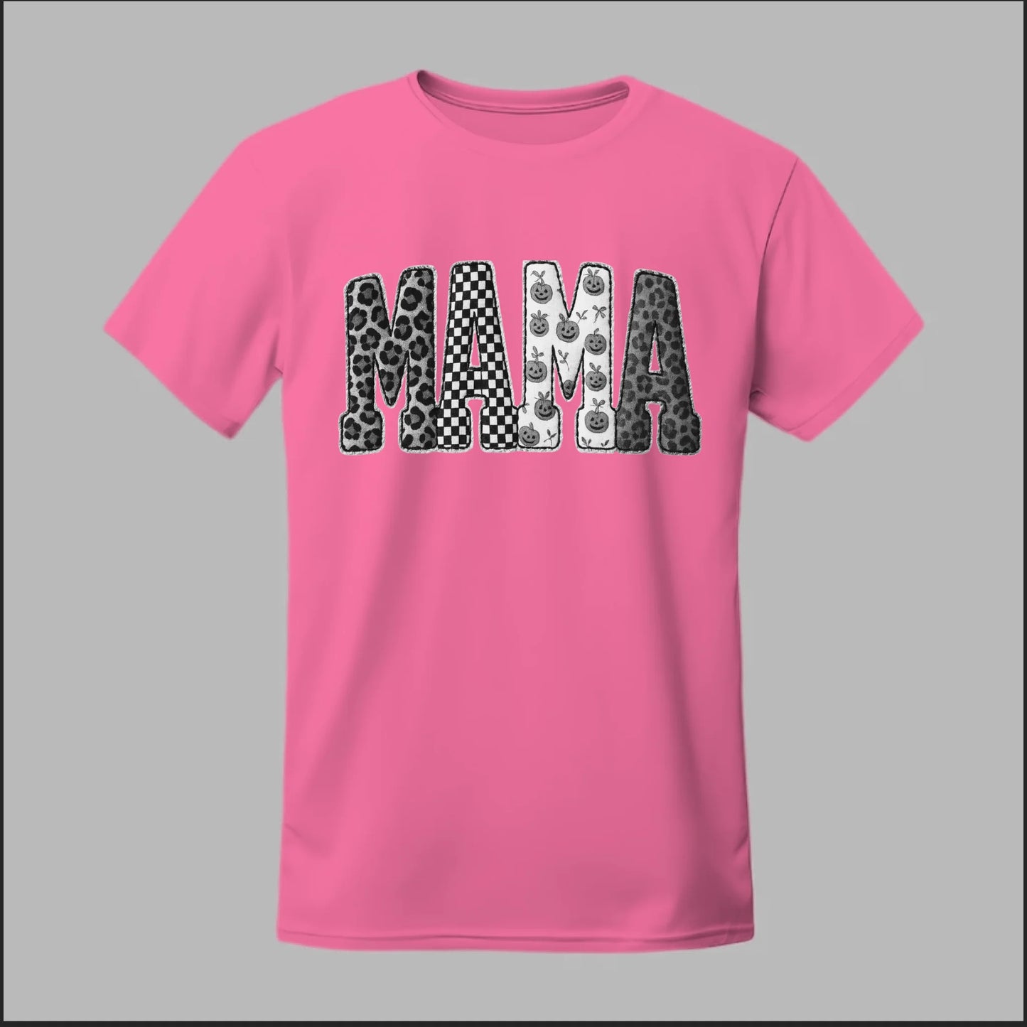 Show off your seasonal spirit with the Greyscale Fall Mama Shirt! Featuring bold stitched-style letters filled with leopard print, checkerboard, and pumpkin patterns, this design gives a chic twist to classic fall vibes. The neutral black-and-white palette makes it easy to style with any outfit—perfect for cozy days, pumpkin patch outings, or casual fall fun.