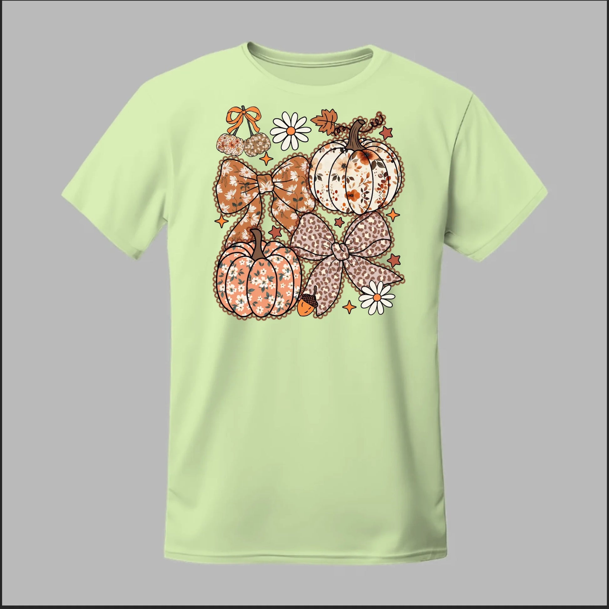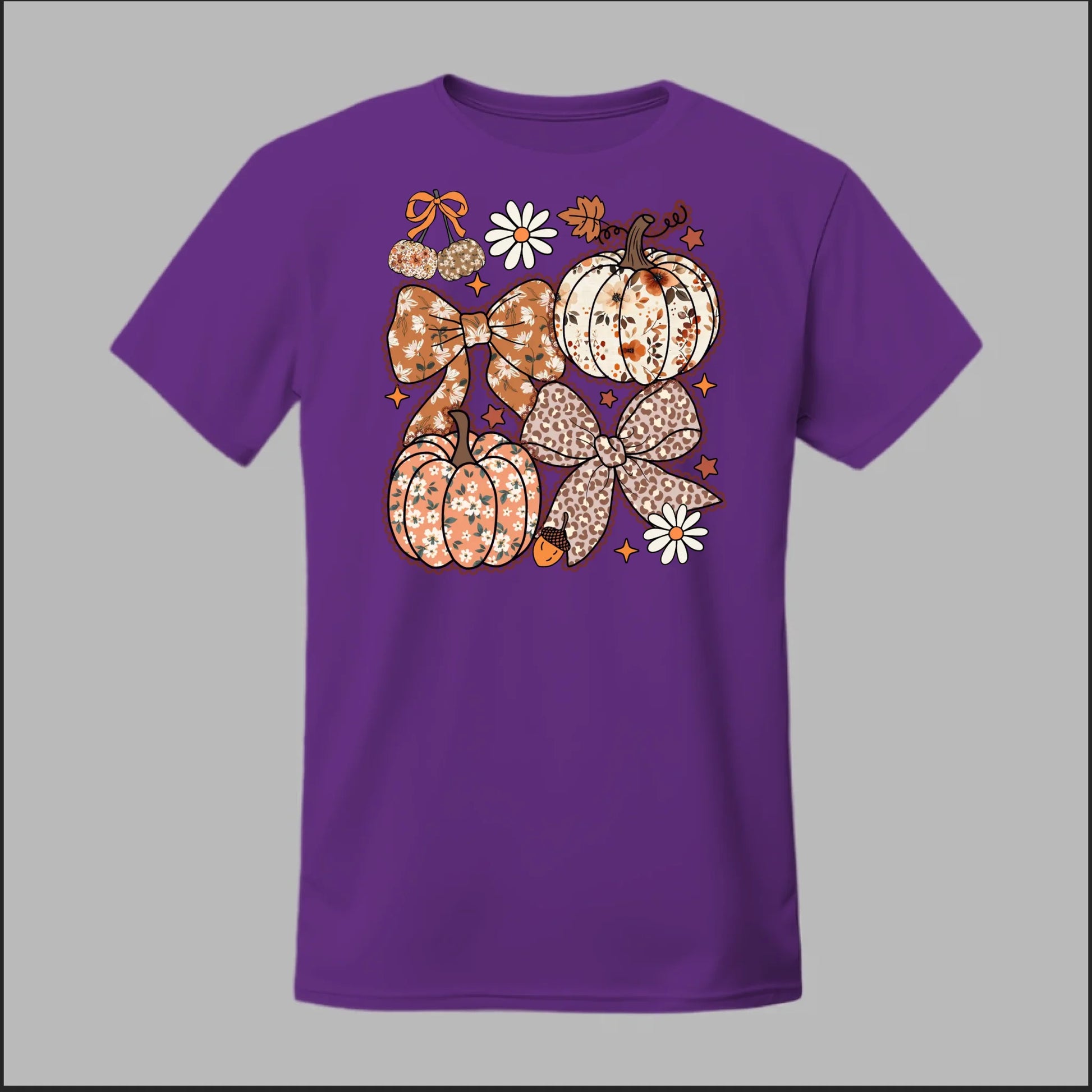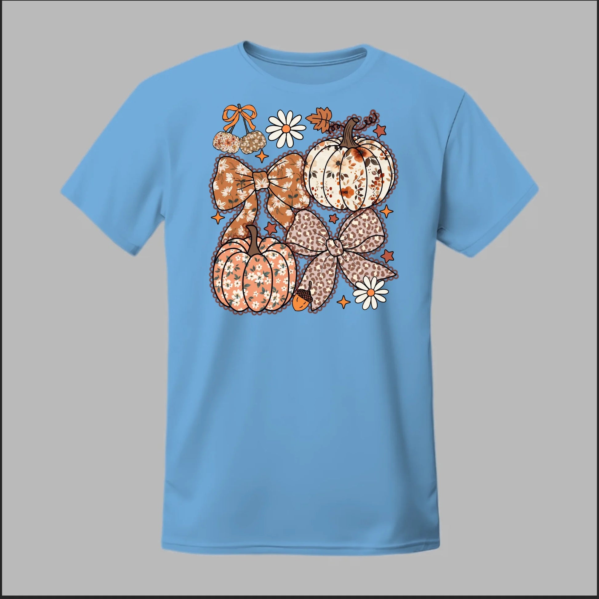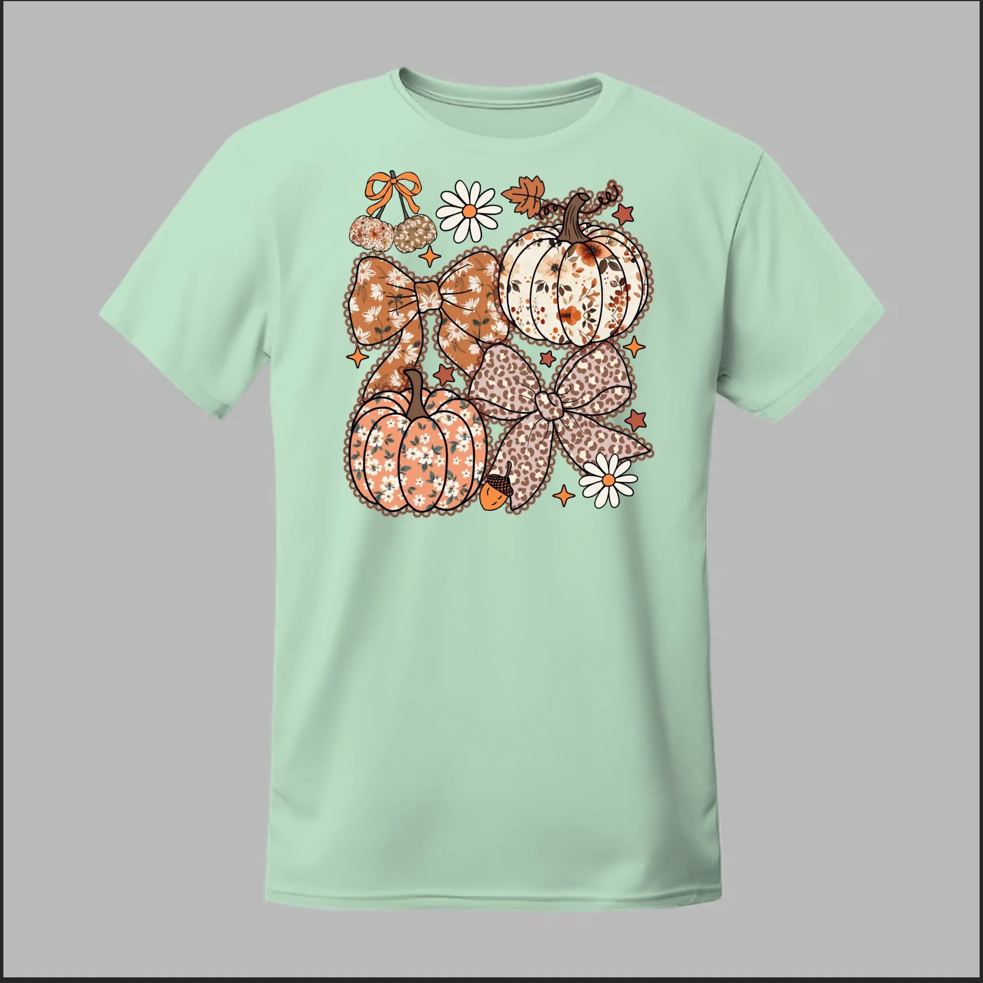 Bring soft fall vibes into your everyday style with the Floral Pumpkins & Bows Tee. This charming design features patterned pumpkins and dainty bows in floral and leopard prints, making it a cozy yet stylish choice for pumpkin patch outings, fall festivals, or casual weekends.