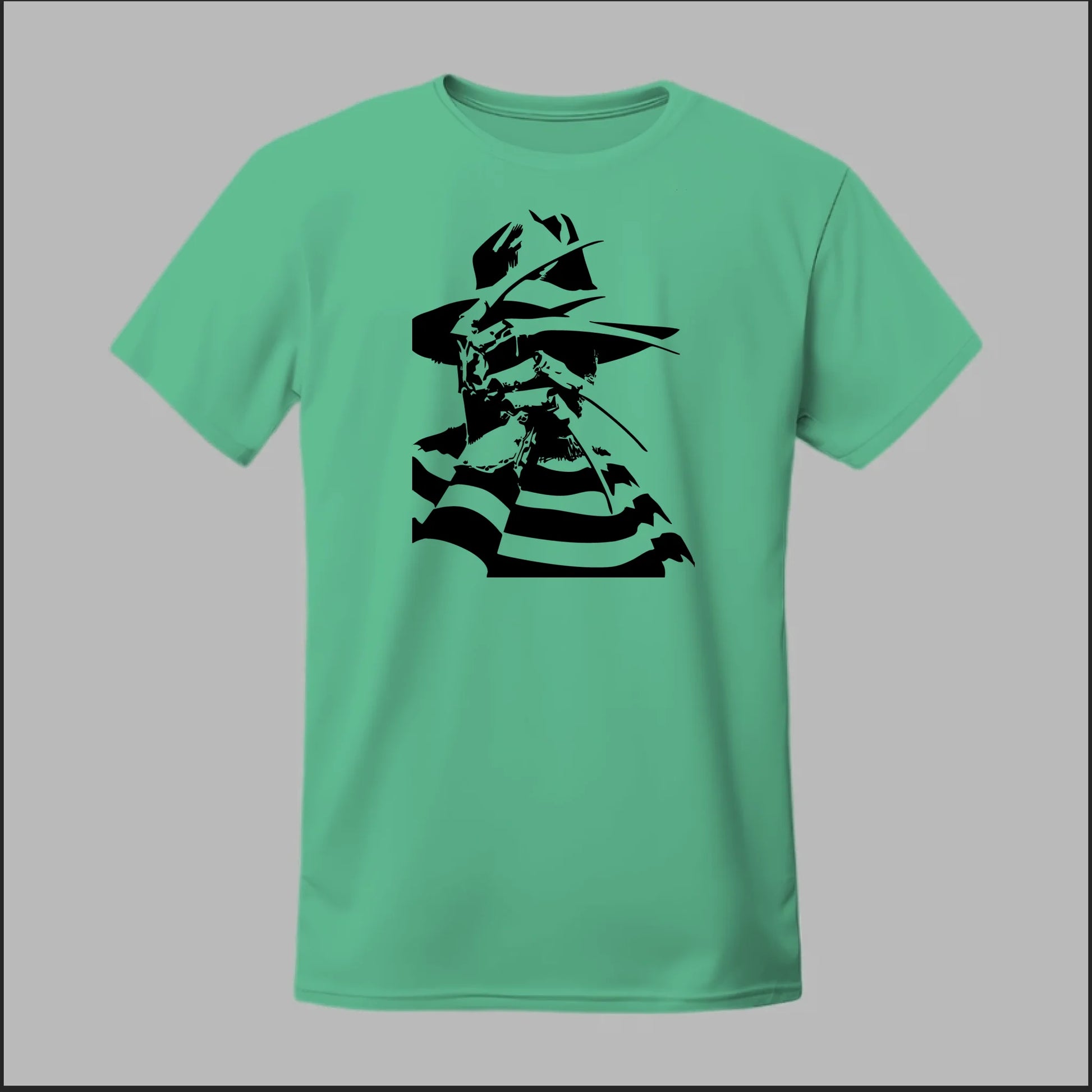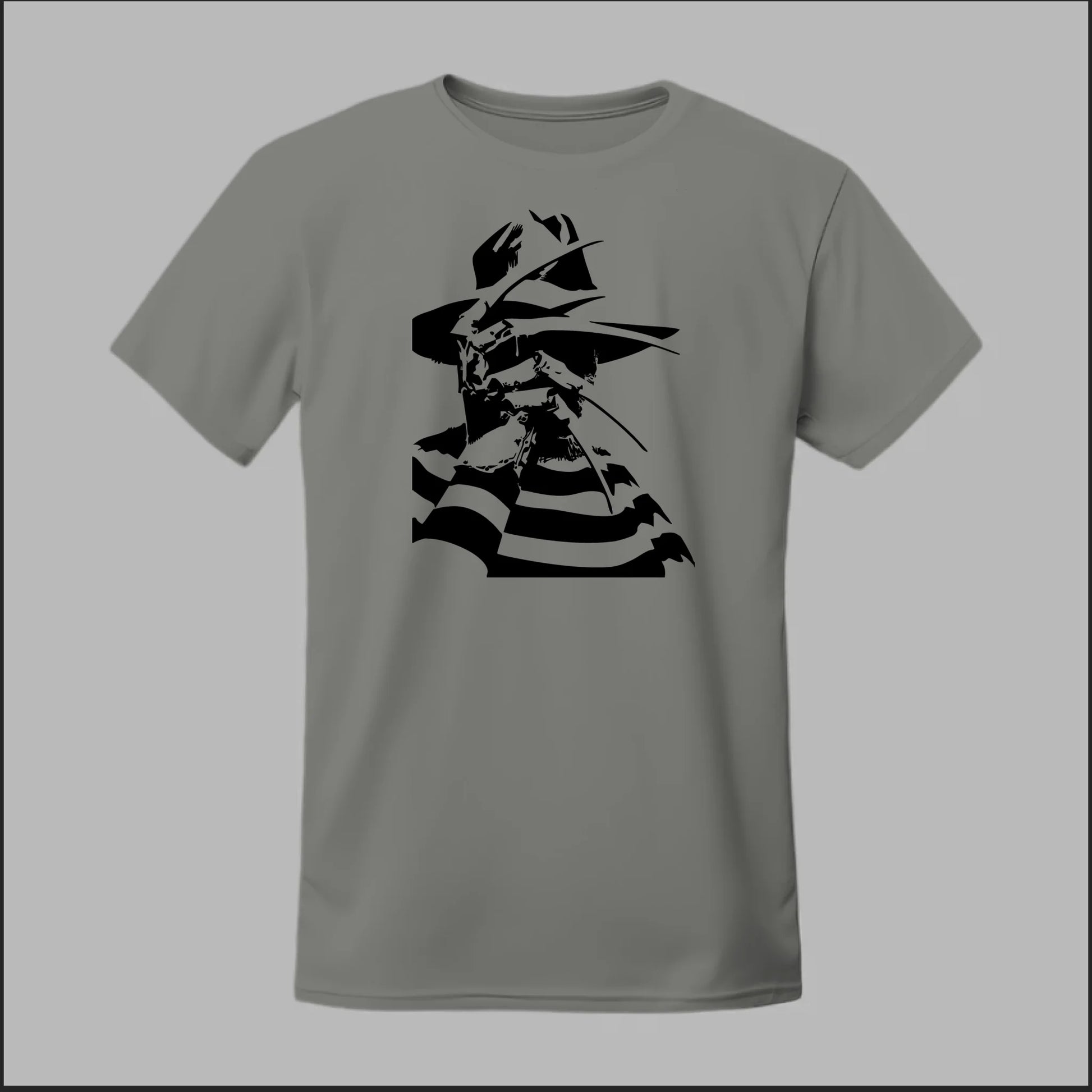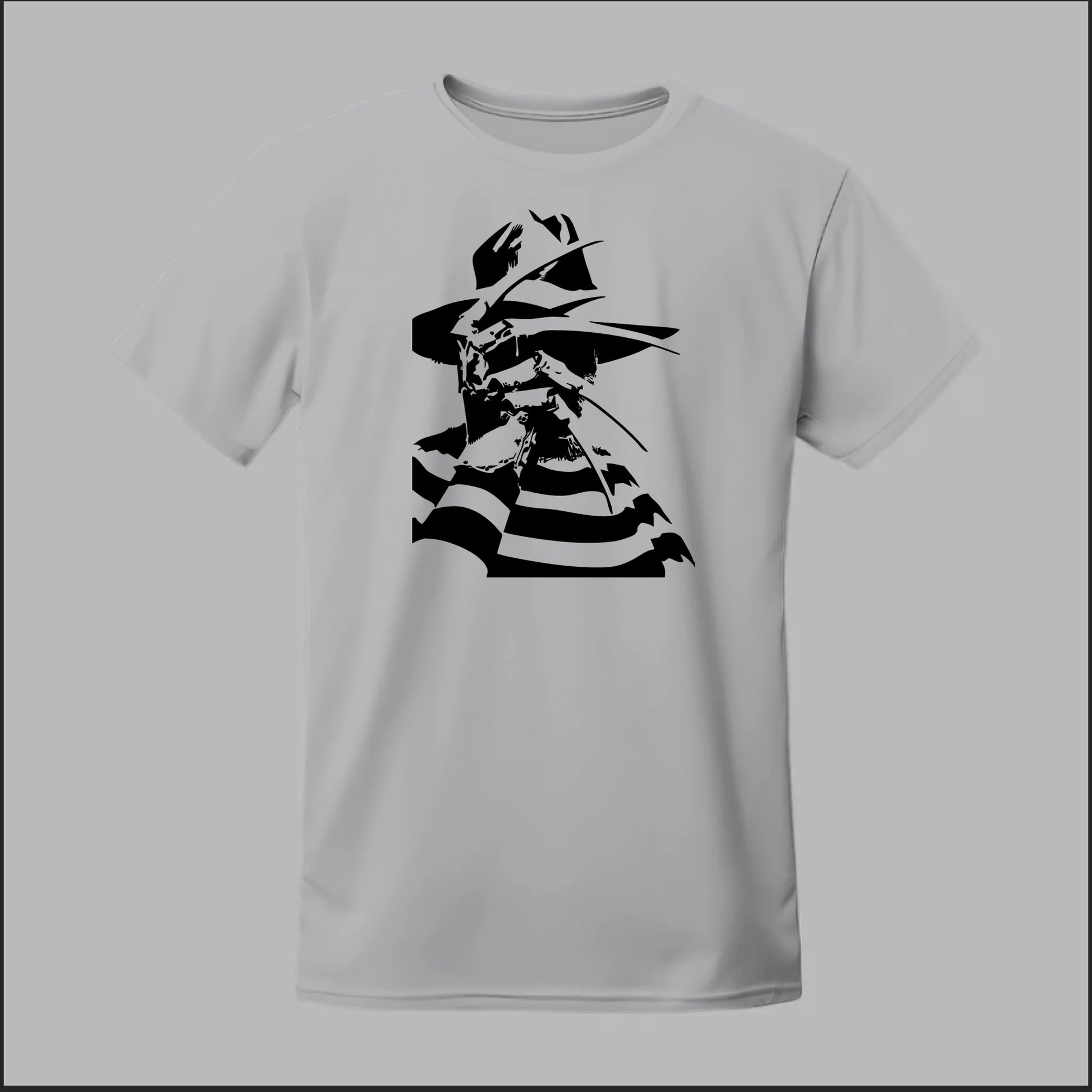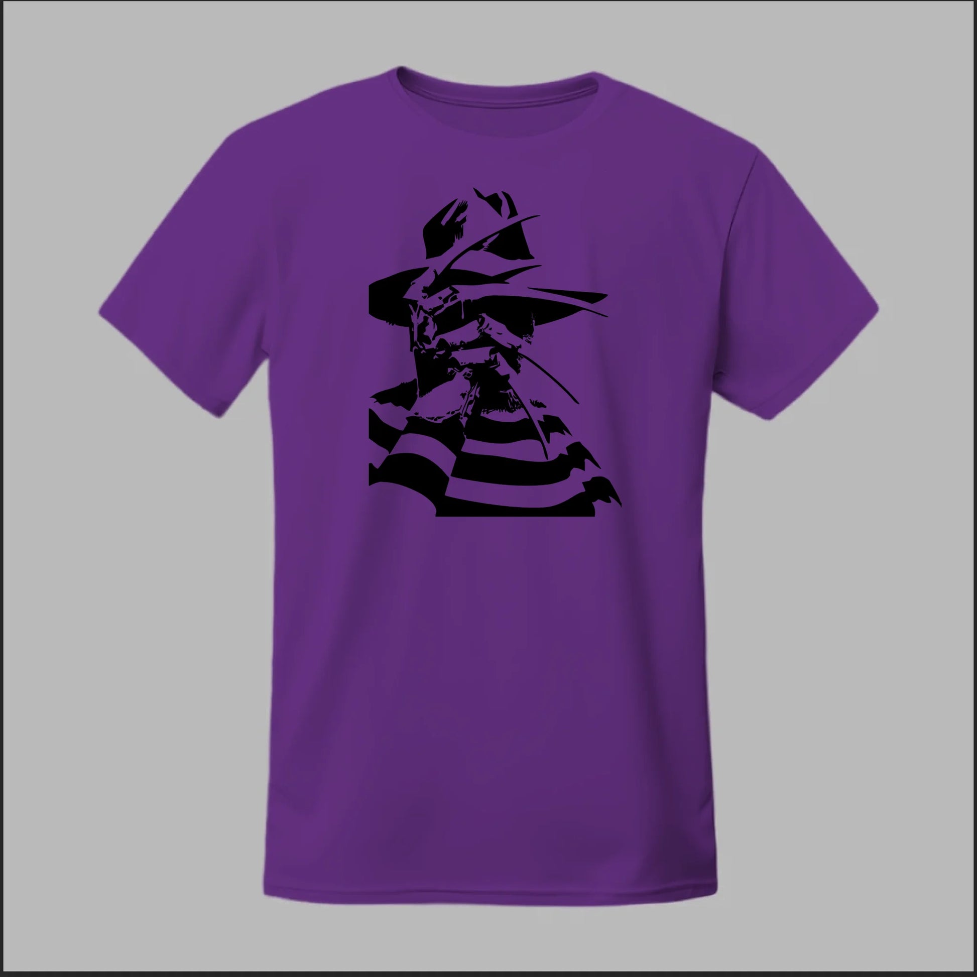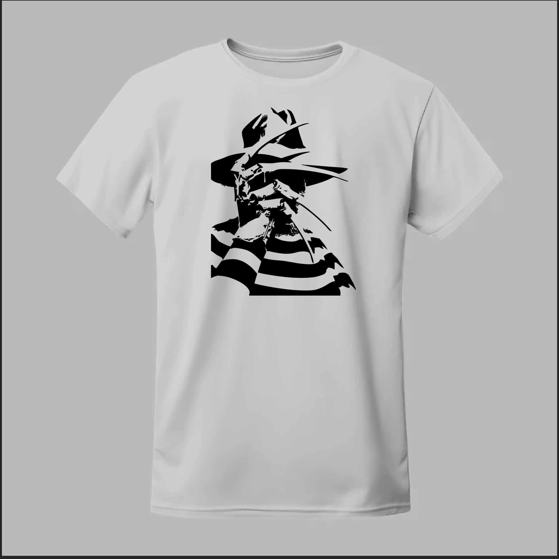 One, two… Freddy’s coming for you. This bold silhouette design of Freddy Krueger captures the terrifying essence of the horror legend. Perfect for fans of classic scary movies and Halloween enthusiasts alike.