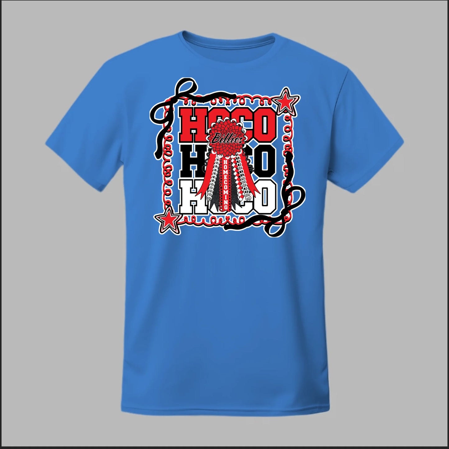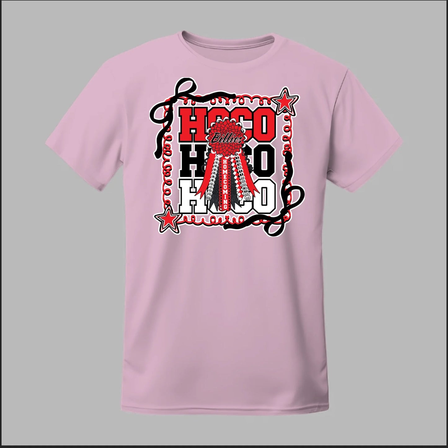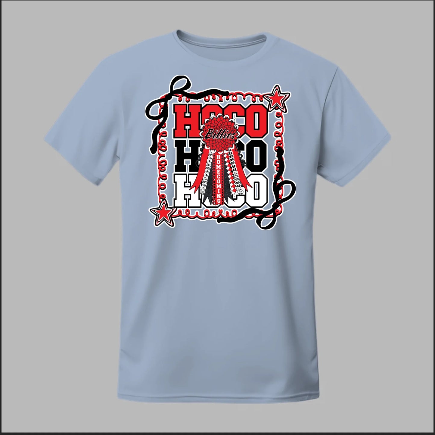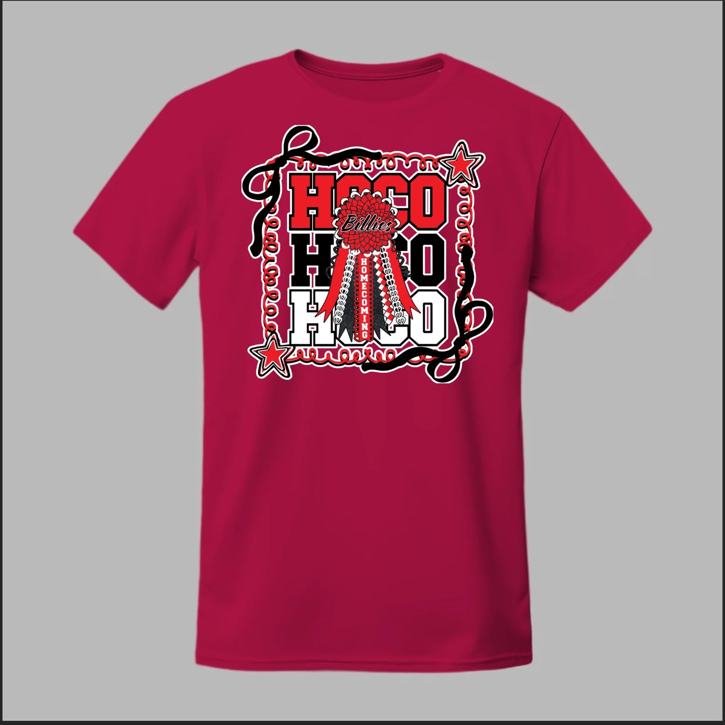 Show your Fredericksburg Billies pride this Homecoming with a shirt as bold as your spirit! Featuring layered HOCO text, a detailed Texas-style mum with ribbons, and a classic red, black, and white color scheme, this design is perfect for students, parents, and alumni alike.