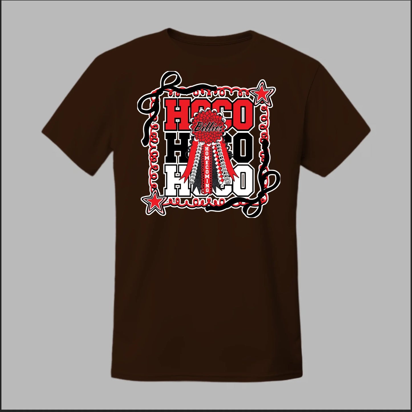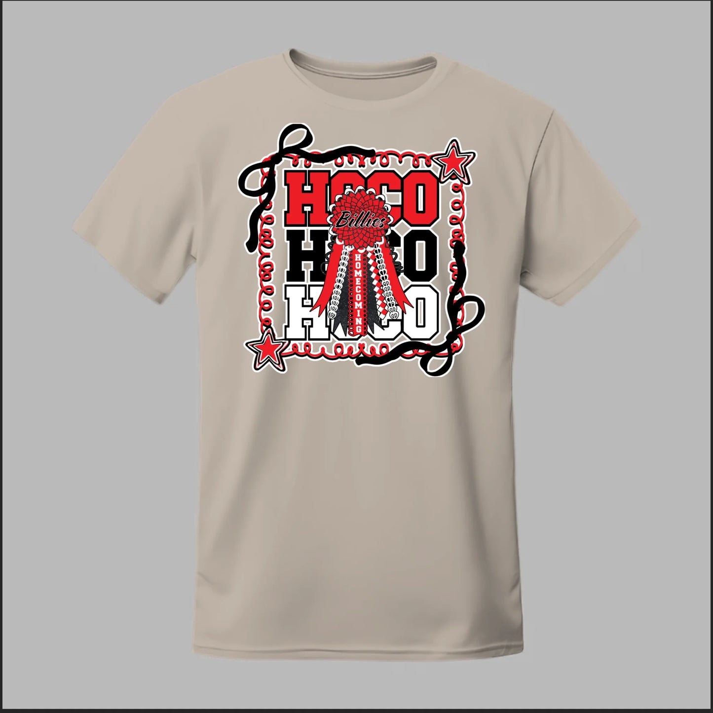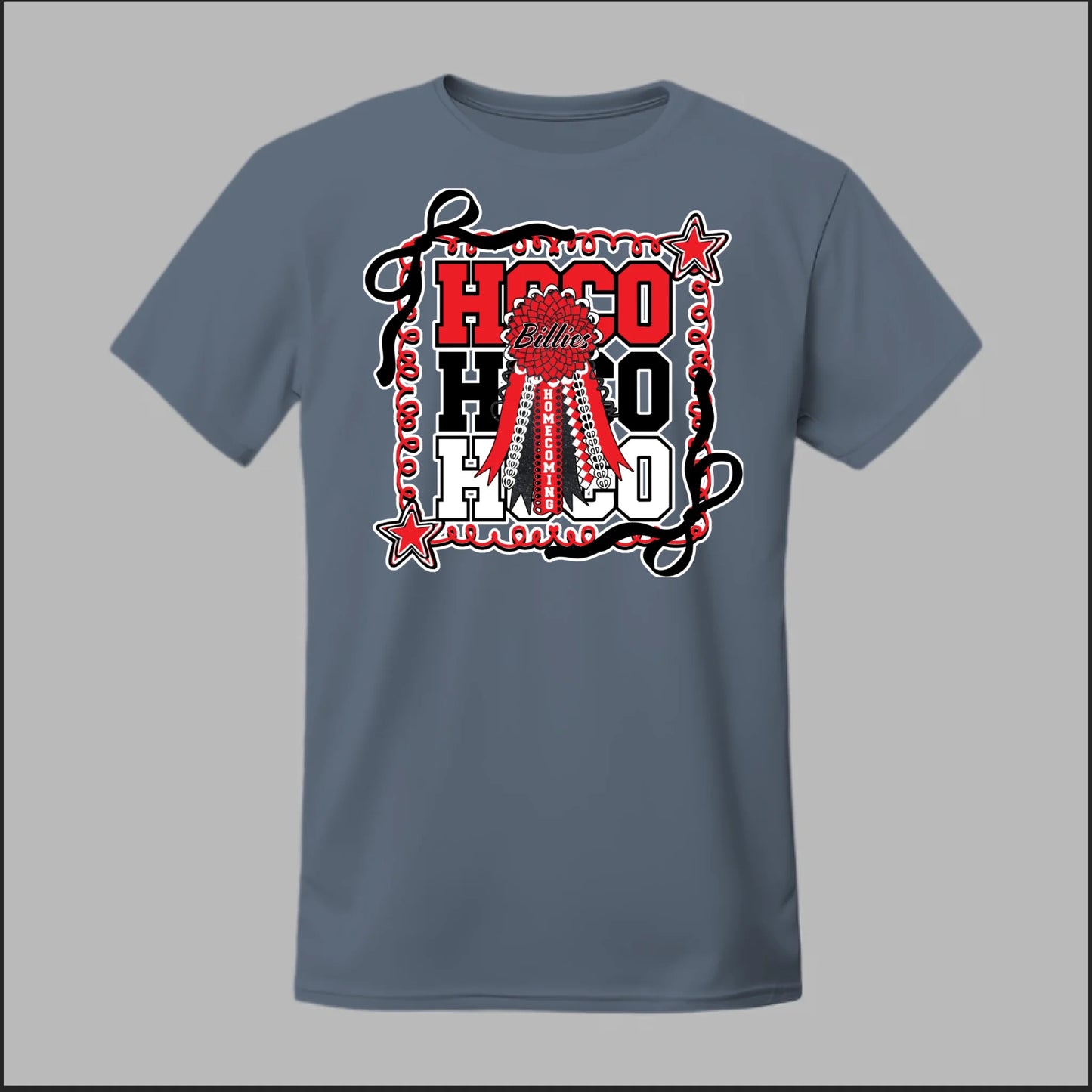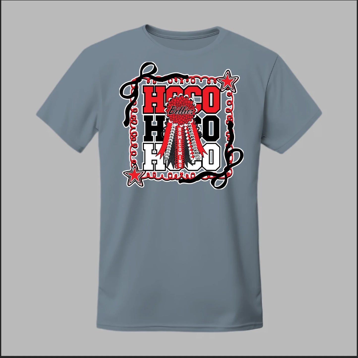 Show your Fredericksburg Billies pride this Homecoming with a shirt as bold as your spirit! Featuring layered HOCO text, a detailed Texas-style mum with ribbons, and a classic red, black, and white color scheme, this design is perfect for students, parents, and alumni alike.