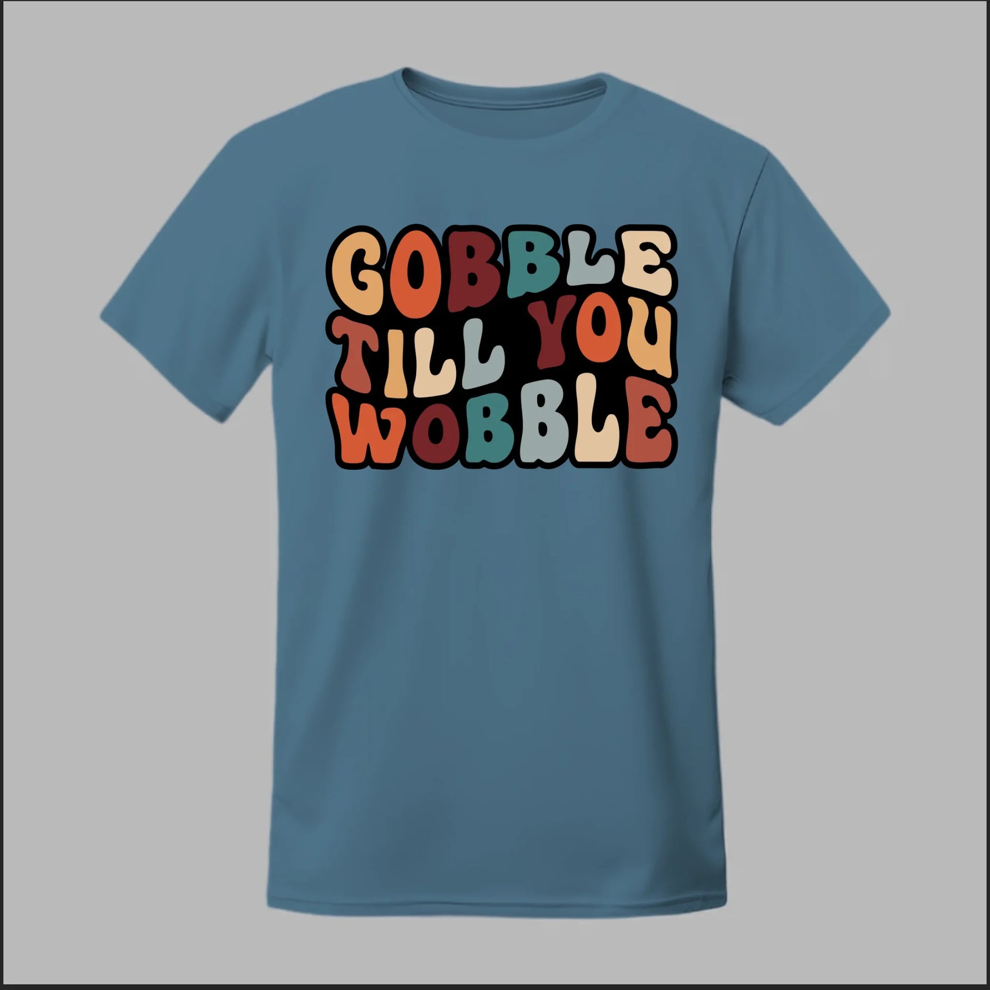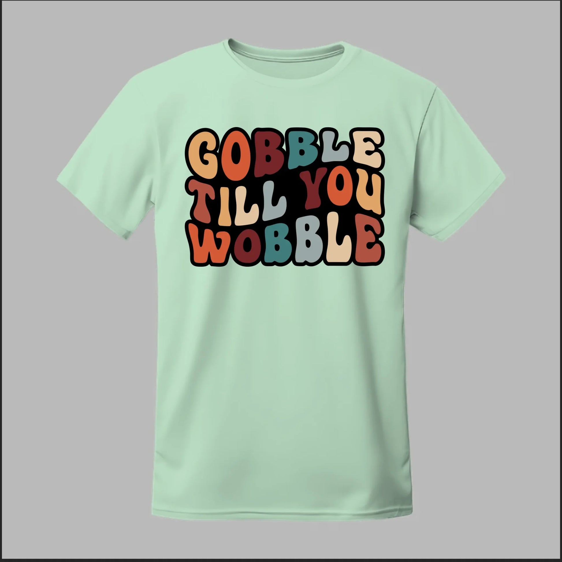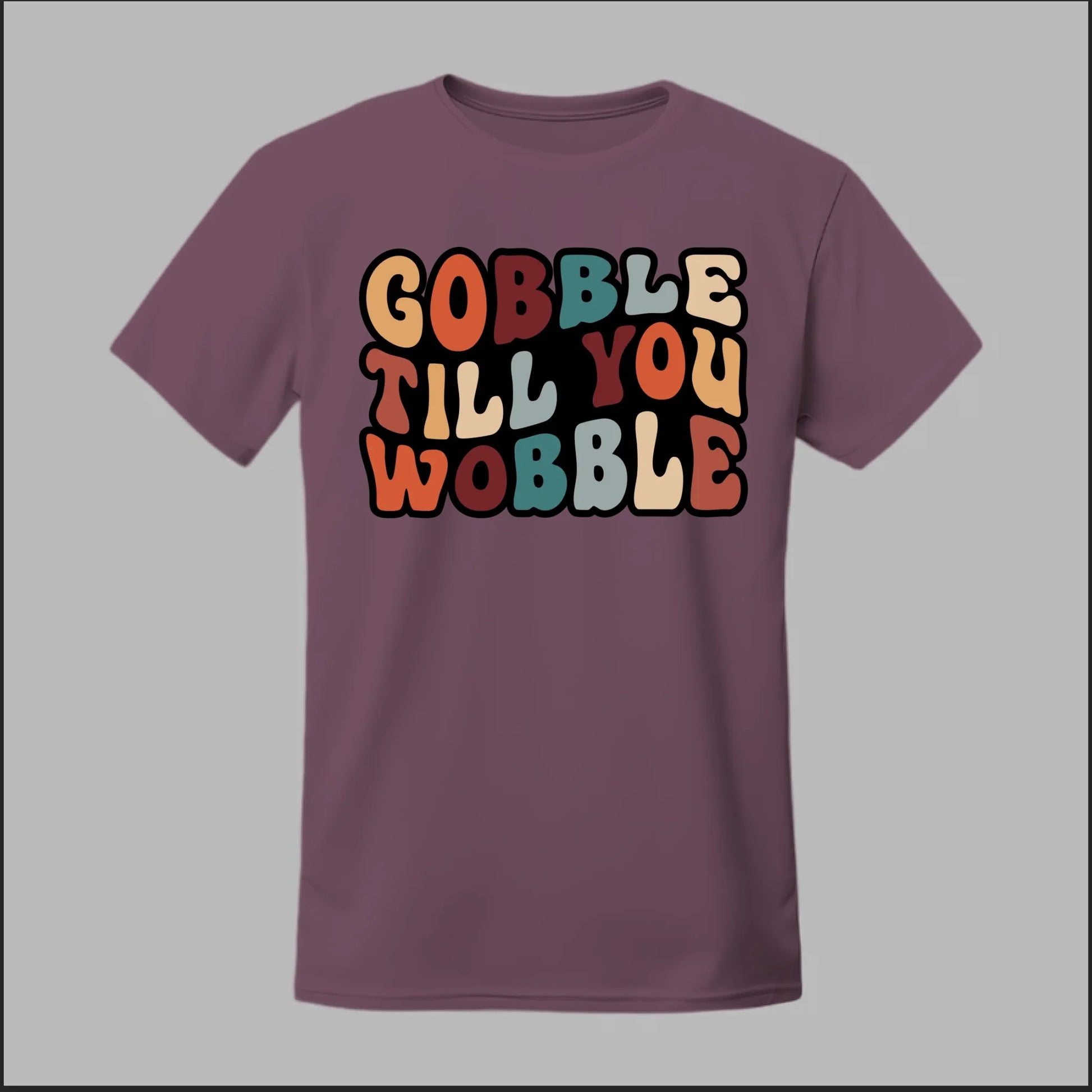 Bring some humor to the holiday feast with our Gobble Till You Wobble design! Perfect for Thanksgiving gatherings, Friendsgiving parties, or just showing off your love for turkey and pumpkin pie. With bold, retro-inspired lettering in fall colors, this design captures the joy (and food coma) of the season.