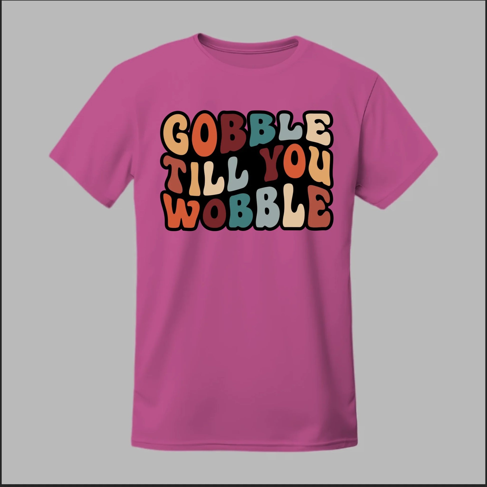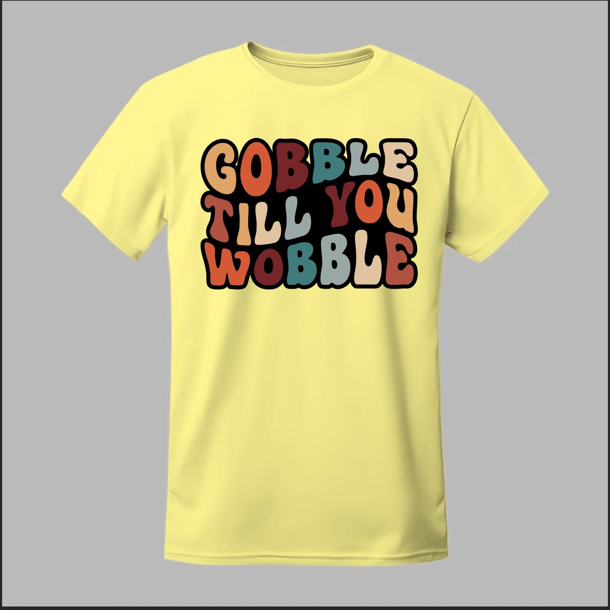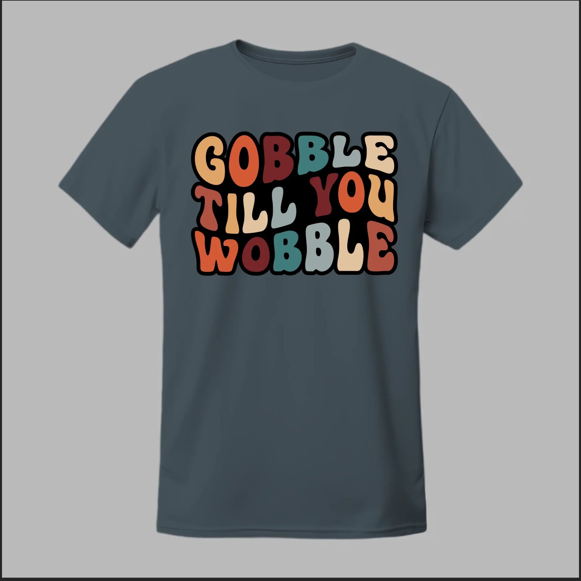 Bring some humor to the holiday feast with our Gobble Till You Wobble design! Perfect for Thanksgiving gatherings, Friendsgiving parties, or just showing off your love for turkey and pumpkin pie. With bold, retro-inspired lettering in fall colors, this design captures the joy (and food coma) of the season.