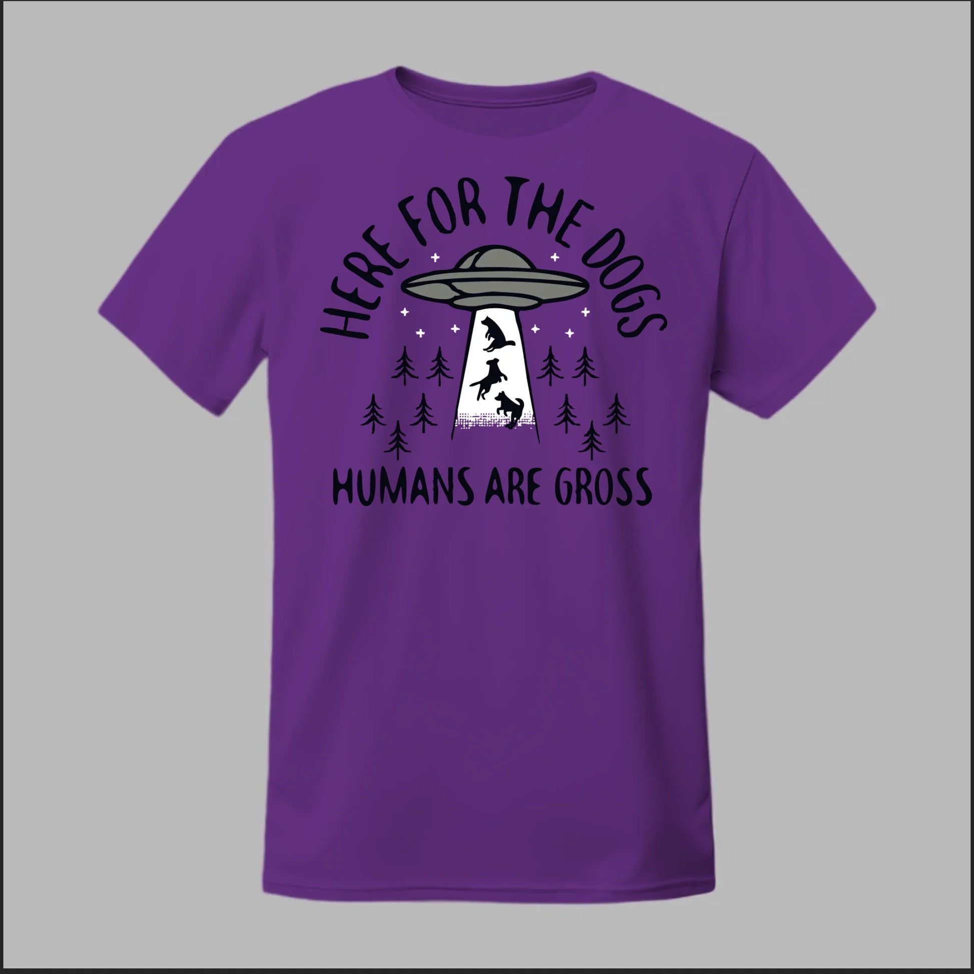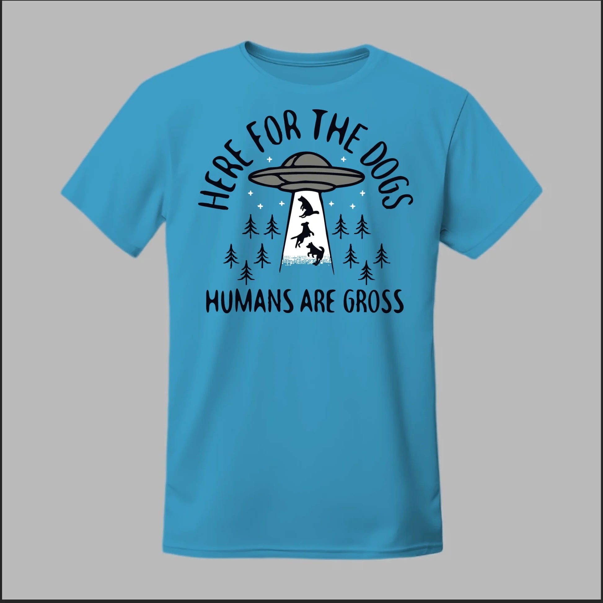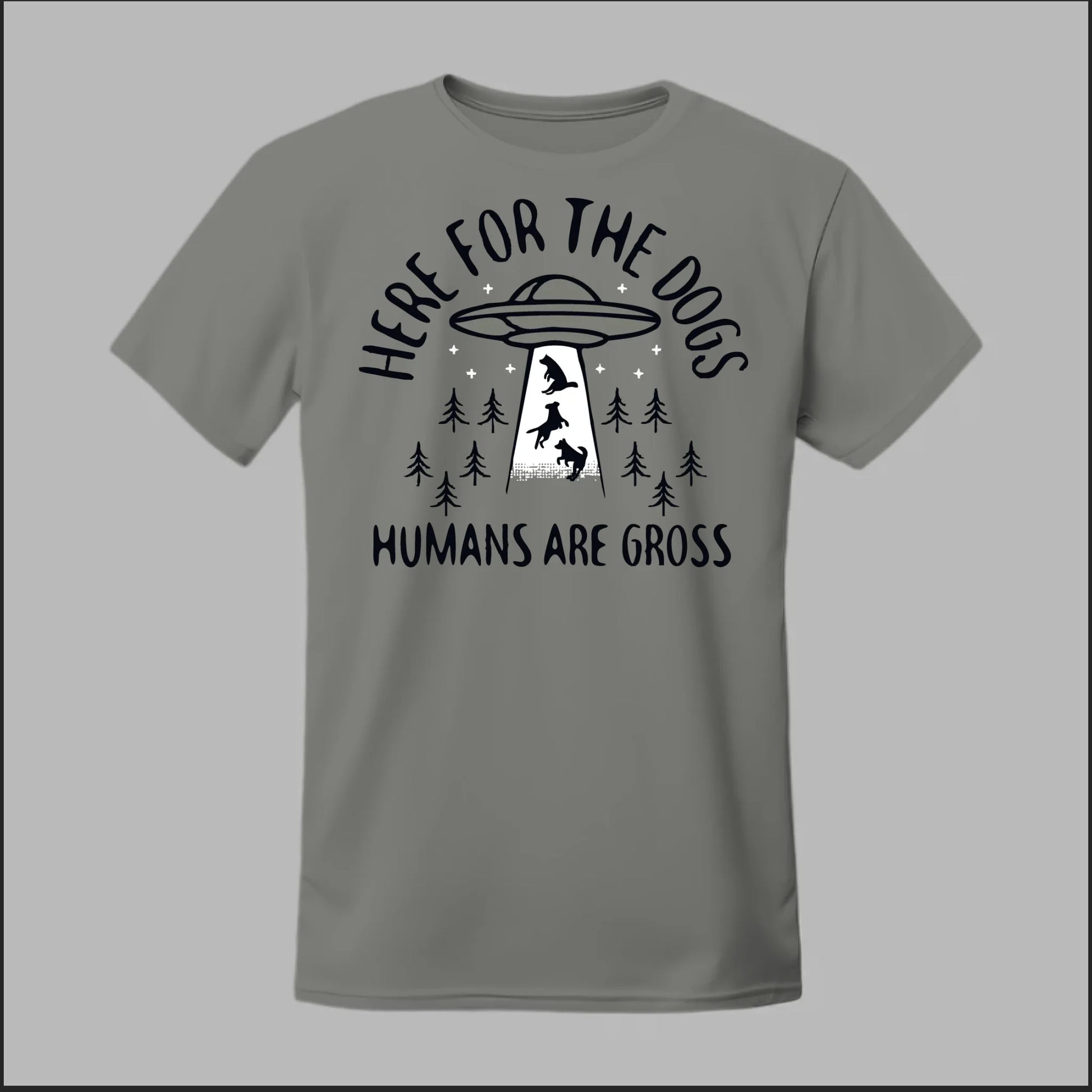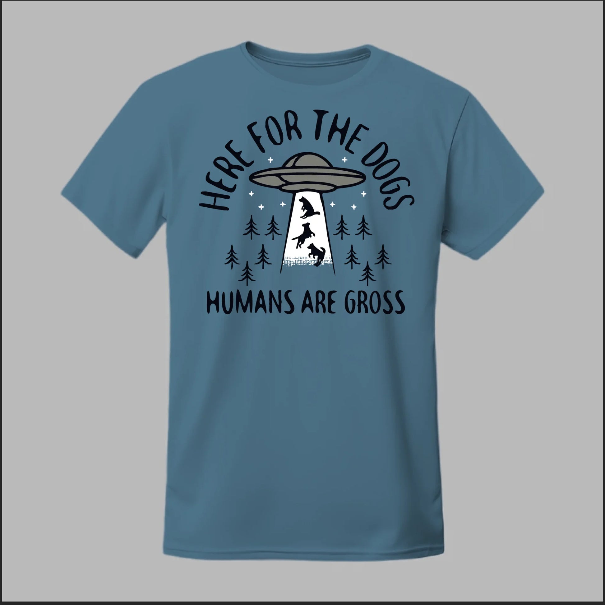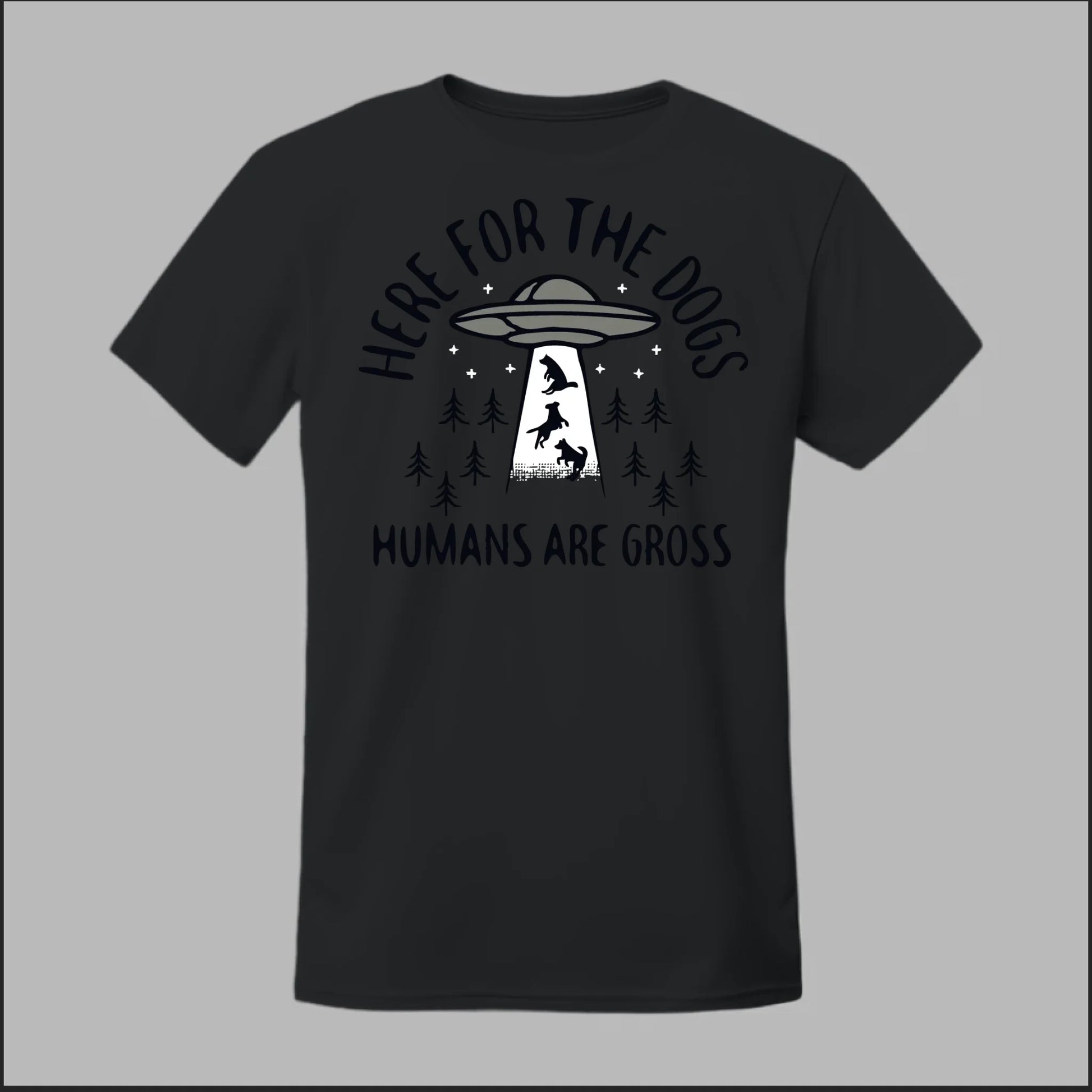If aliens came to Earth, let’s be real, they’d be Here for the Dogs. This funny and unique design features a UFO abducting pups while making it clear that humans… well, not so much. Perfect for dog lovers, sci-fi fans, and quirky humorists.