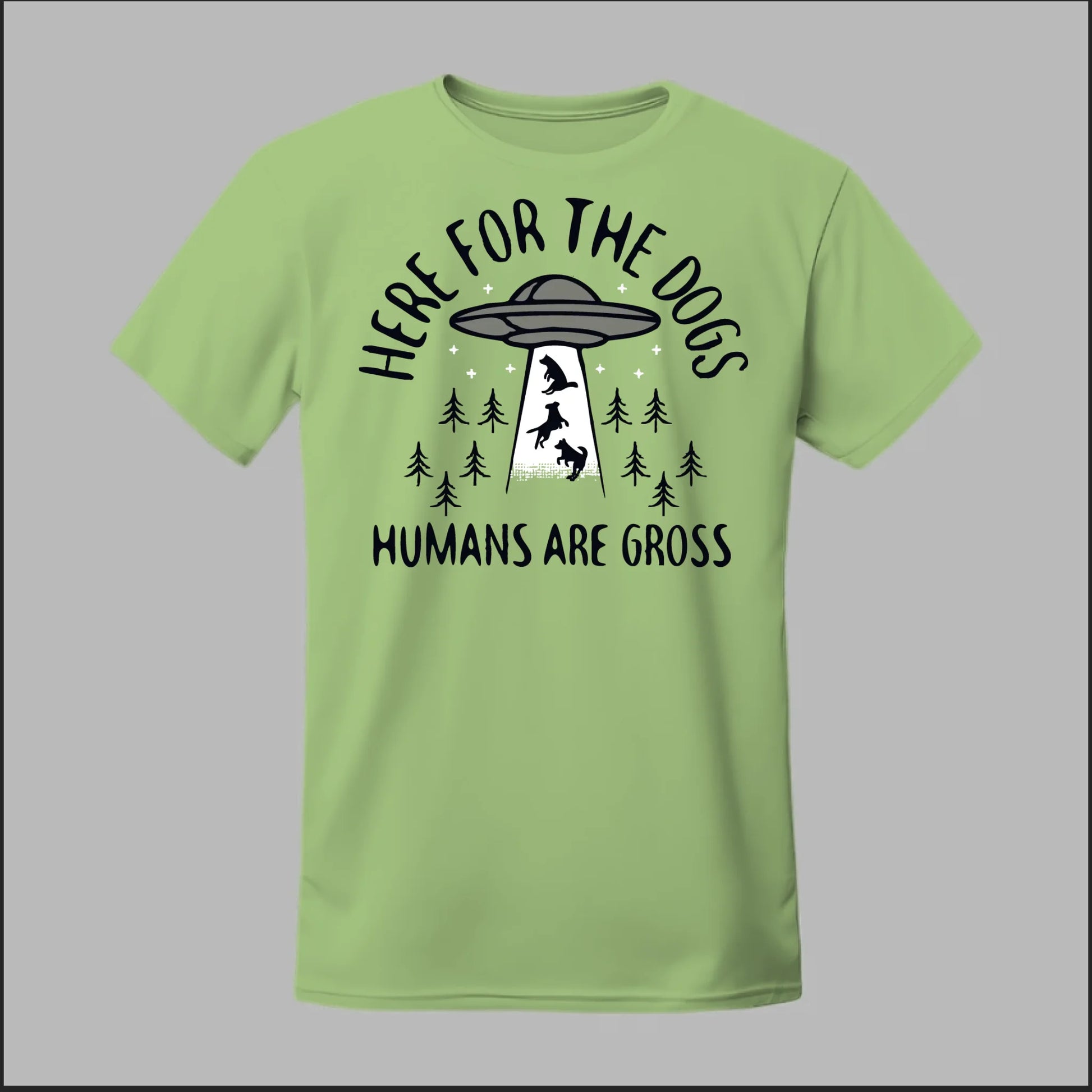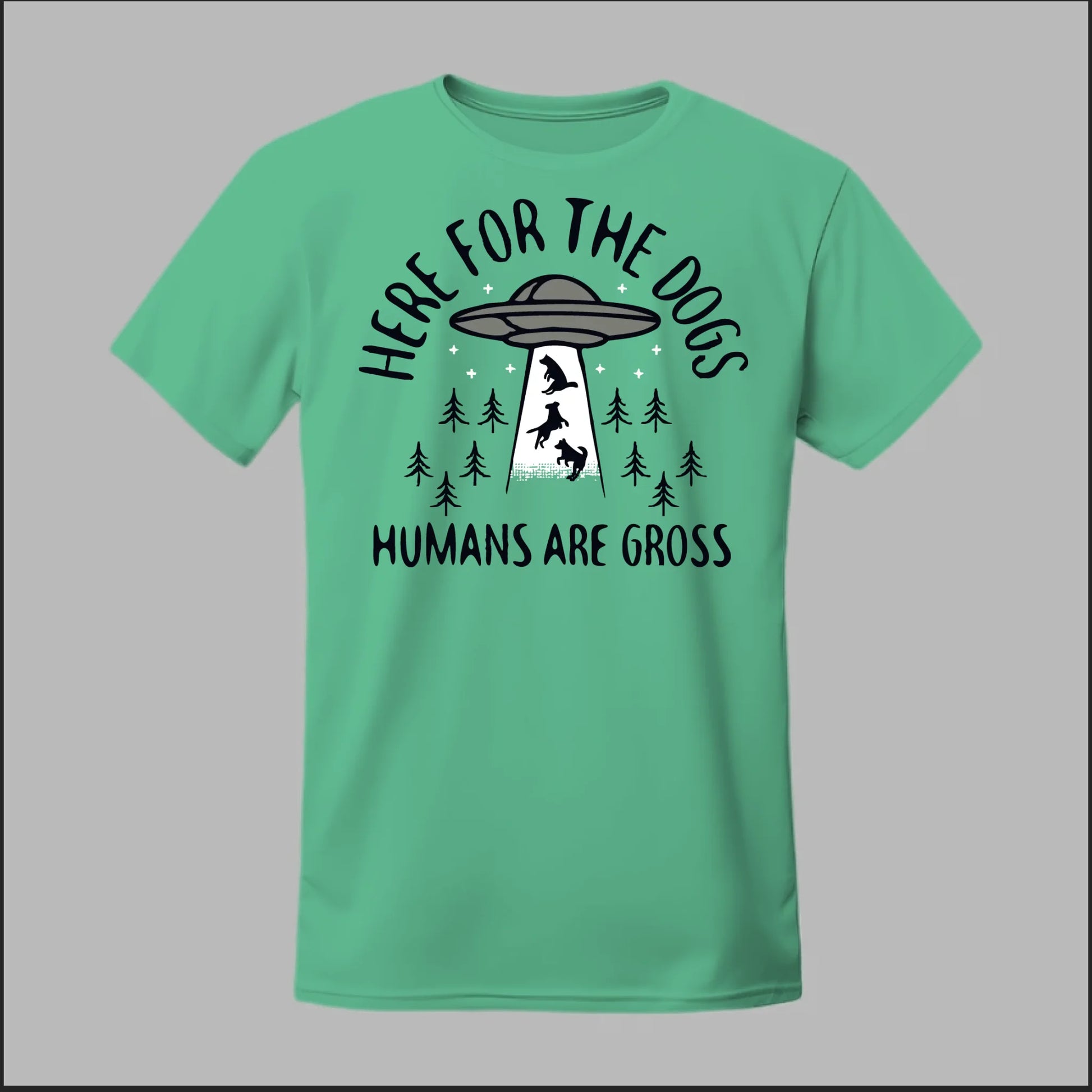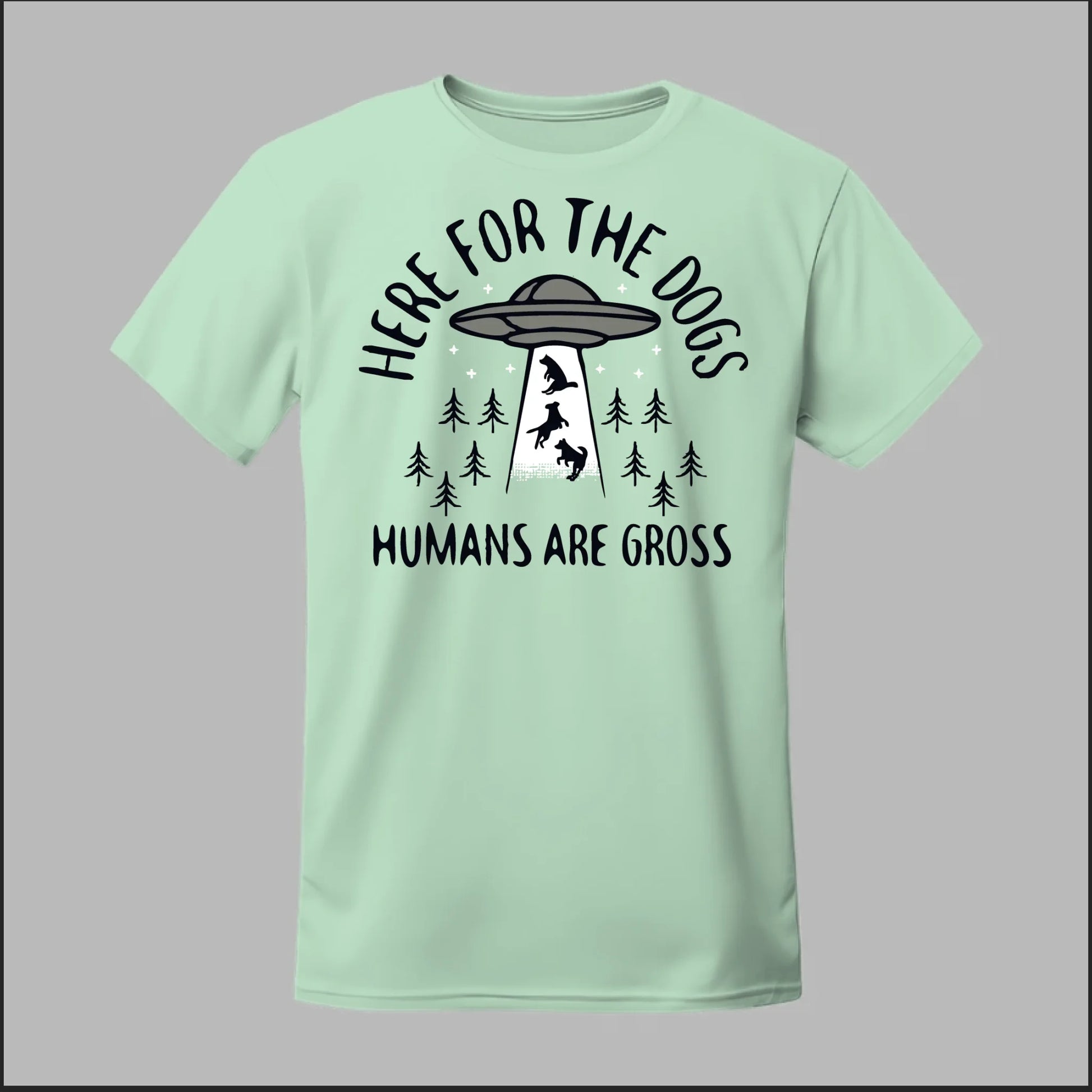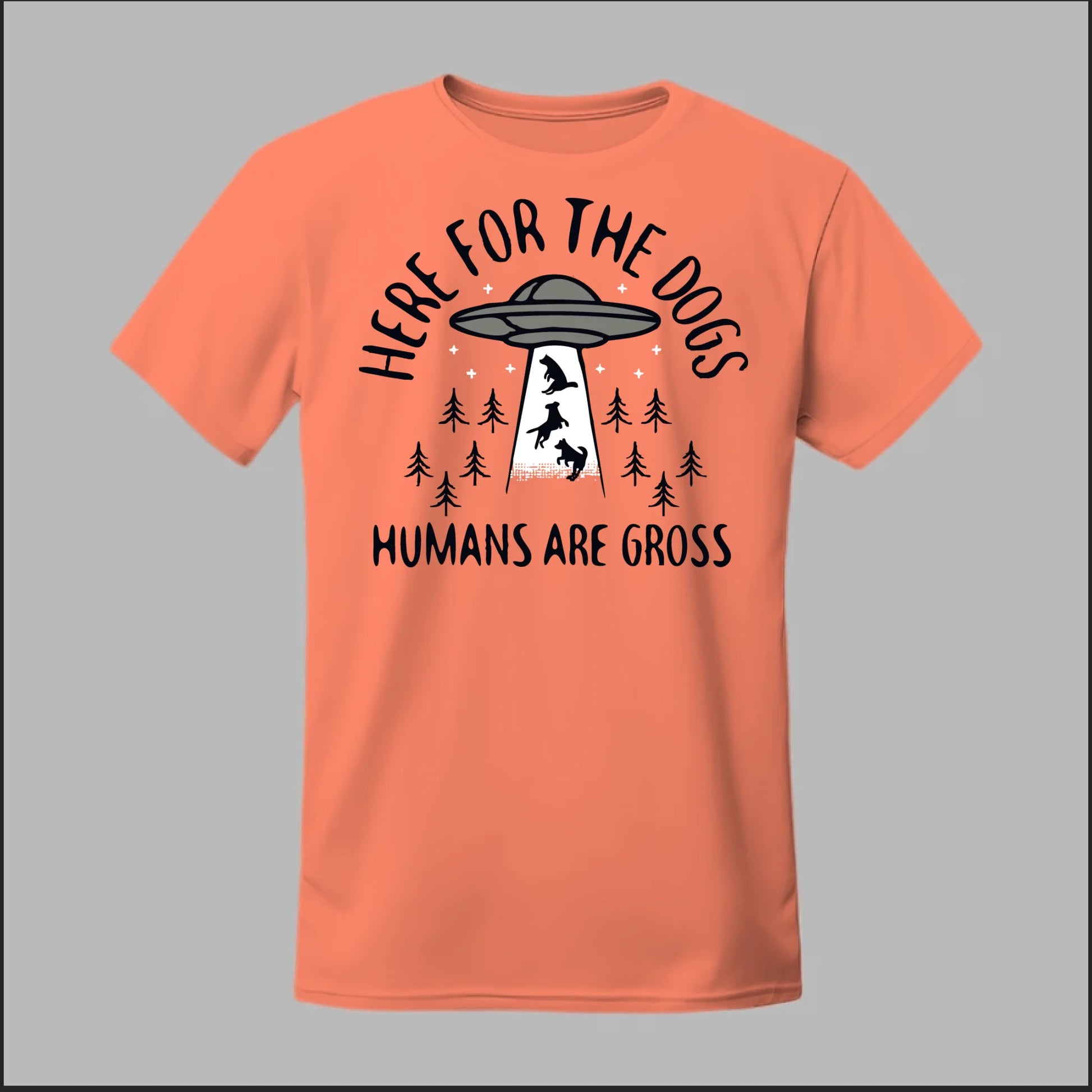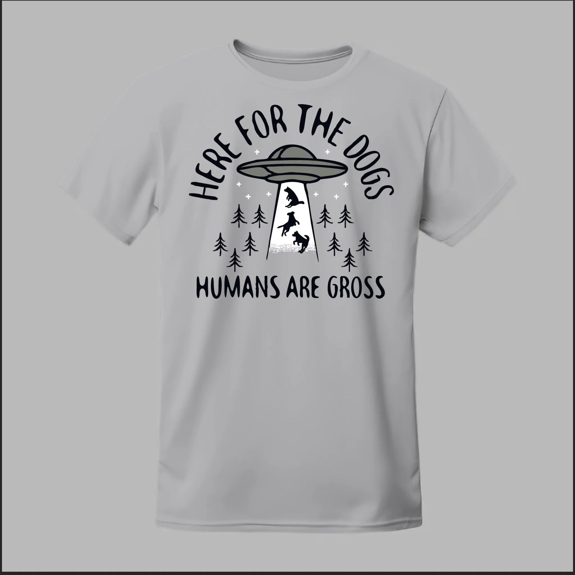 If aliens came to Earth, let’s be real, they’d be Here for the Dogs. This funny and unique design features a UFO abducting pups while making it clear that humans… well, not so much. Perfect for dog lovers, sci-fi fans, and quirky humorists.