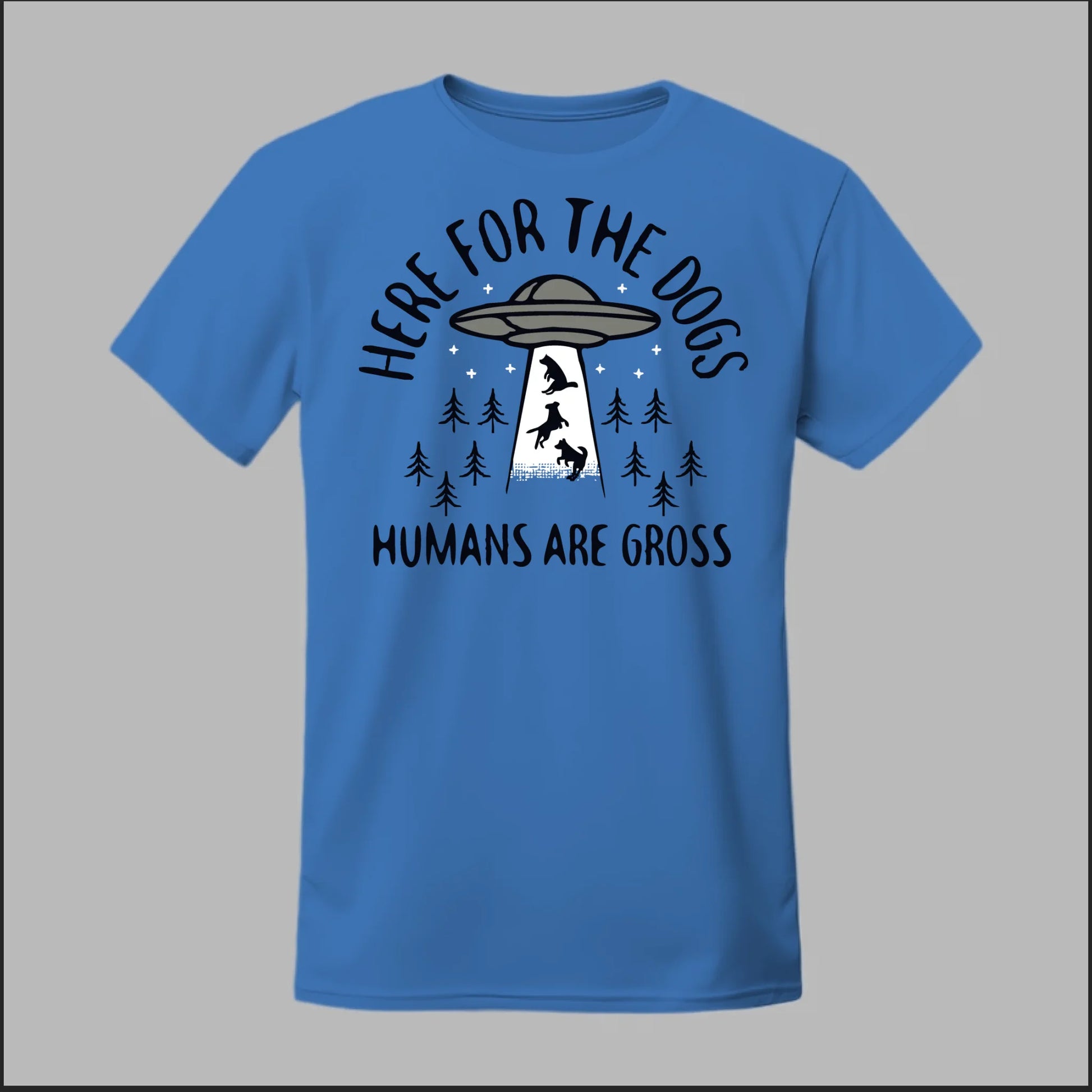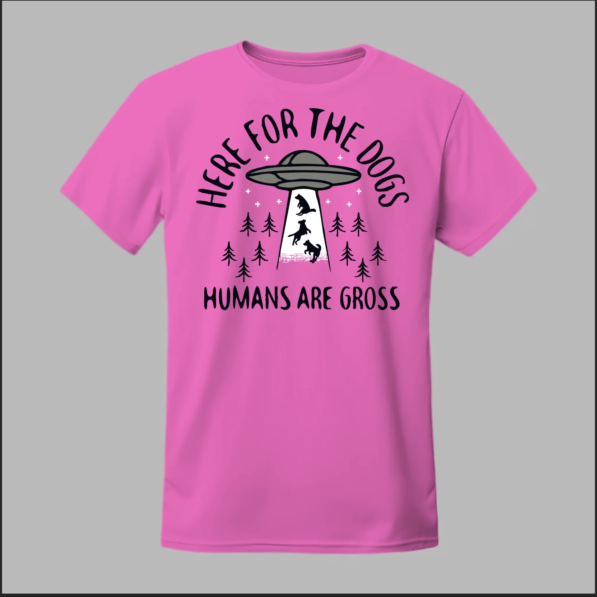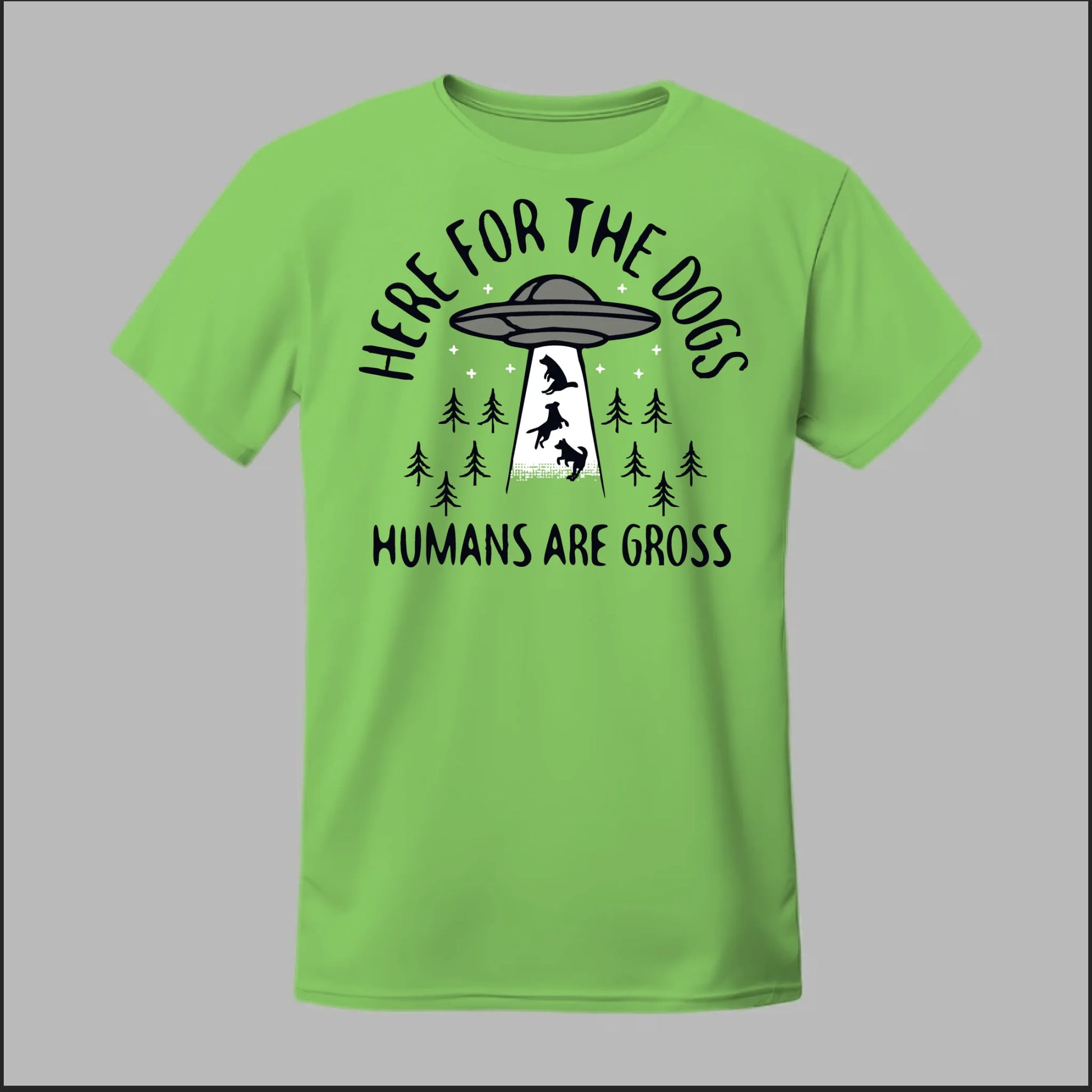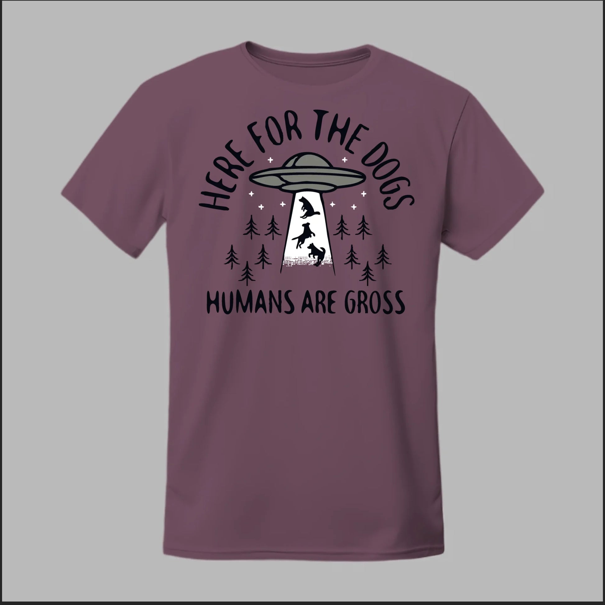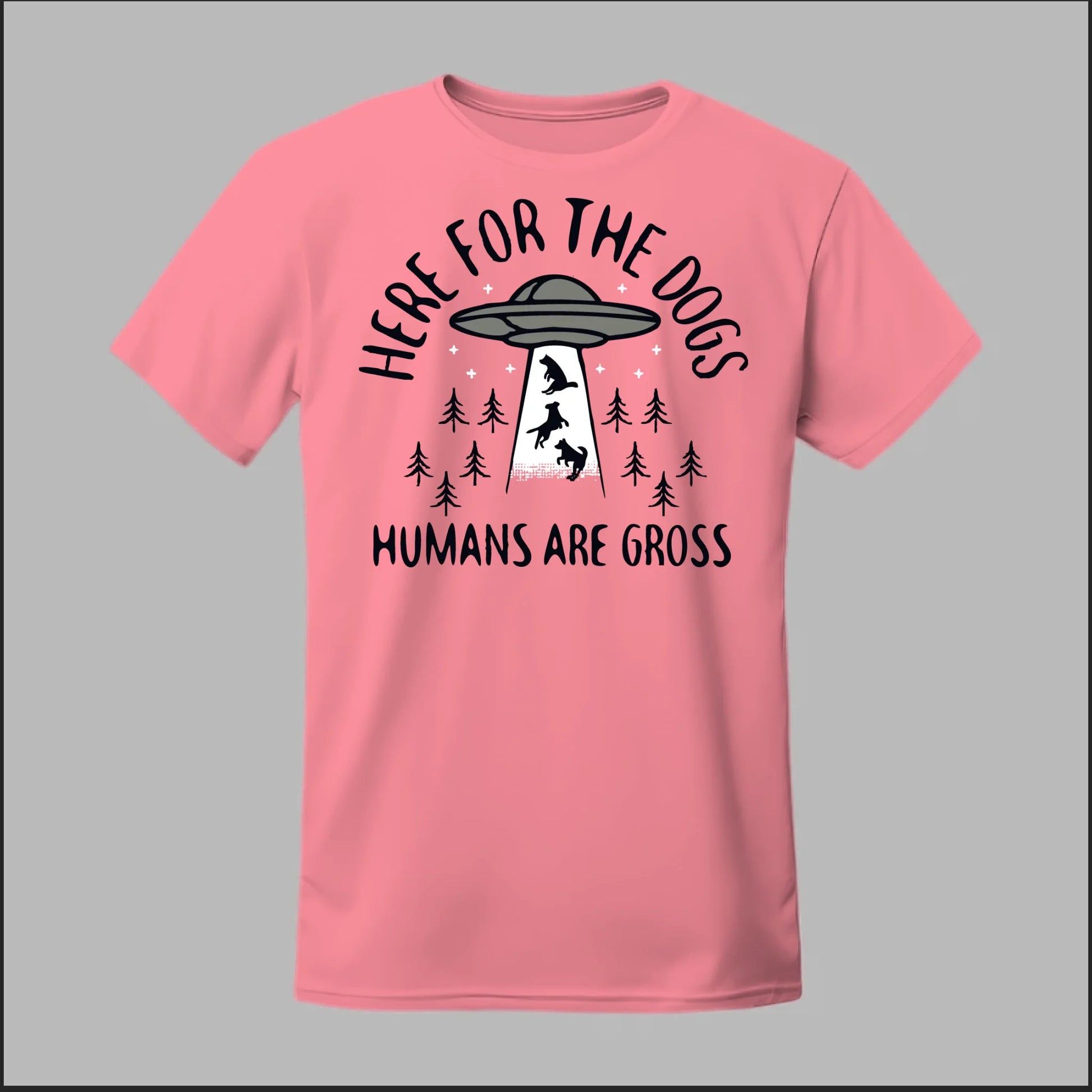 If aliens came to Earth, let’s be real, they’d be Here for the Dogs. This funny and unique design features a UFO abducting pups while making it clear that humans… well, not so much. Perfect for dog lovers, sci-fi fans, and quirky humorists.