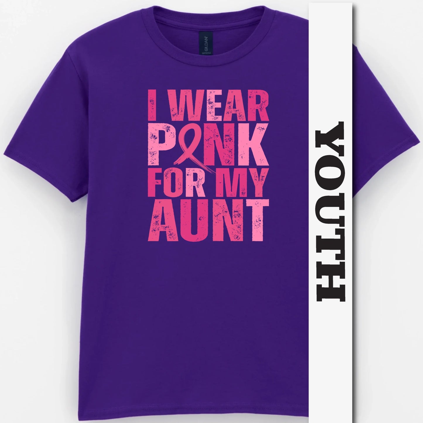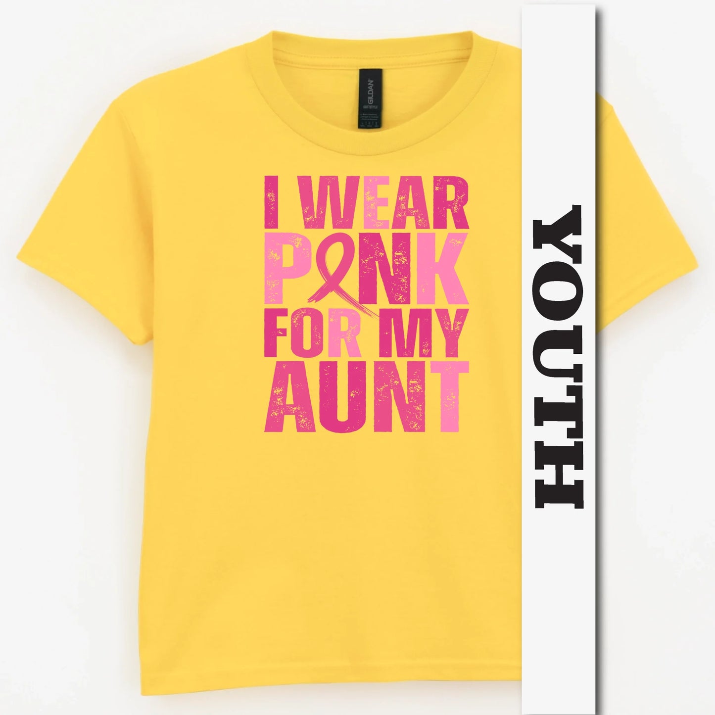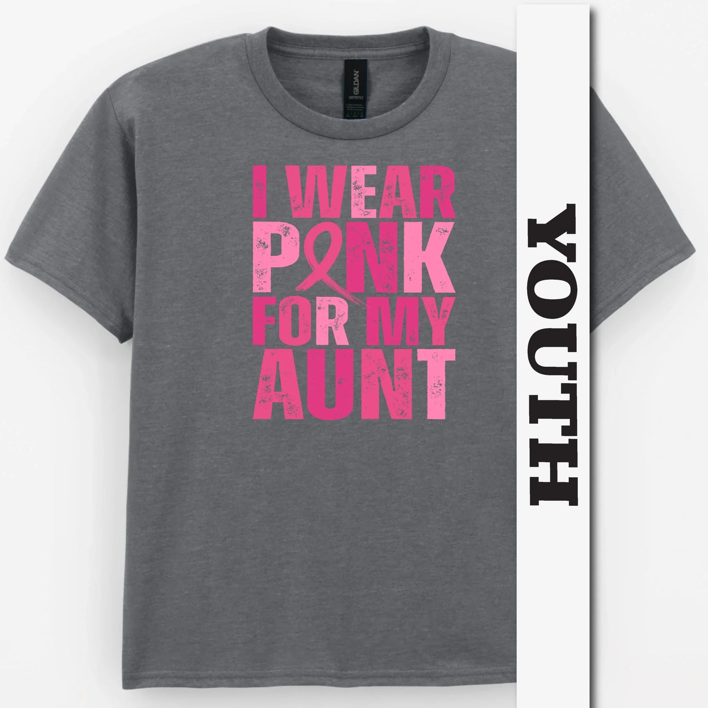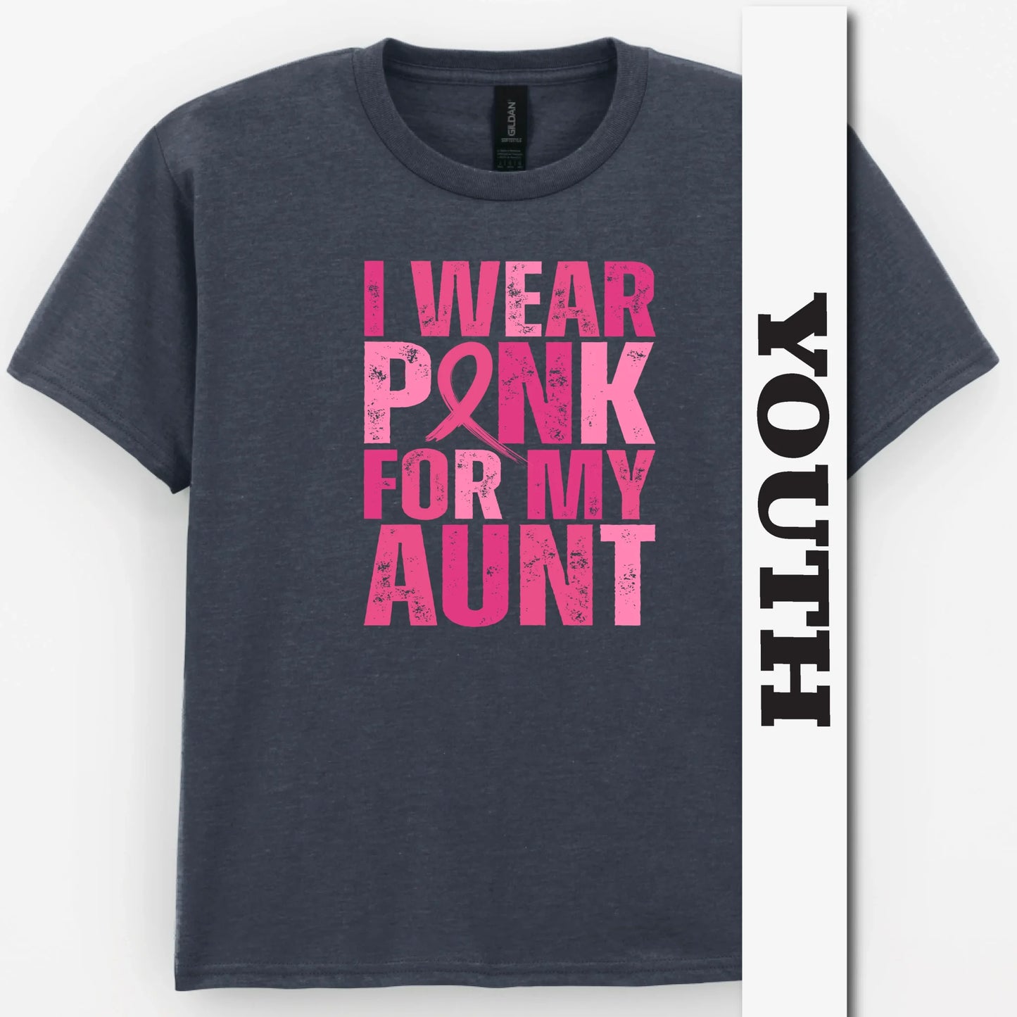 The I Wear Pink For My Aunt Tee is a striking way to celebrate your aunt and stand with her in the fight against breast cancer. With distressed pink lettering and ribbon, it’s perfect for events or daily wear.