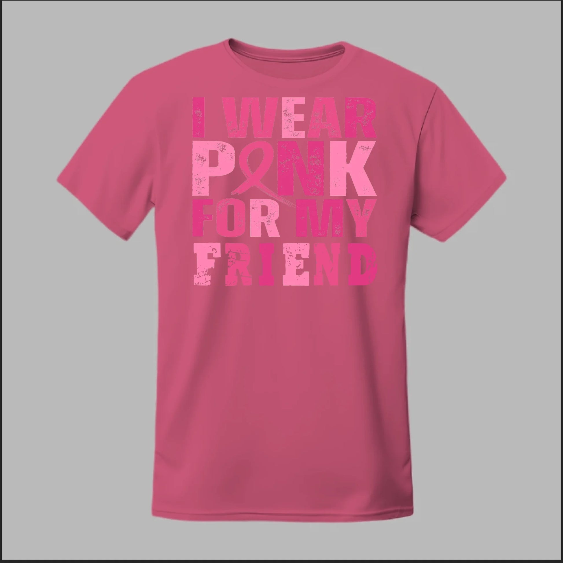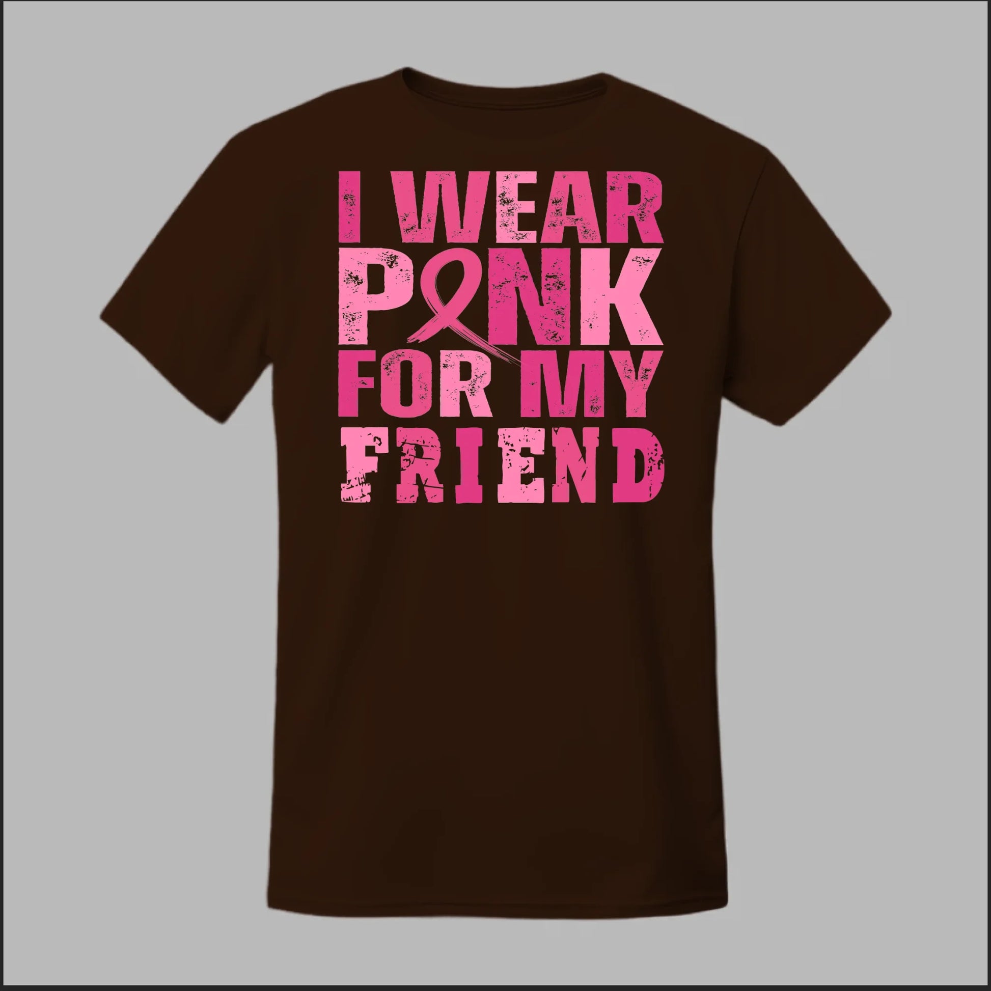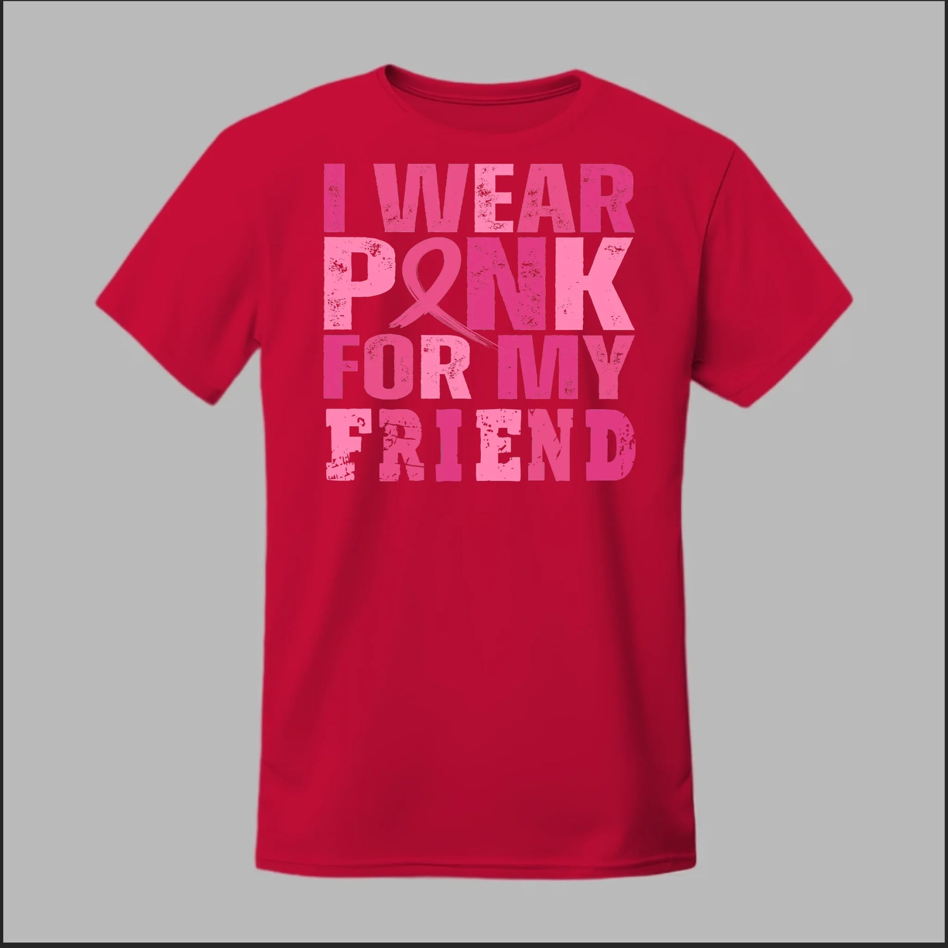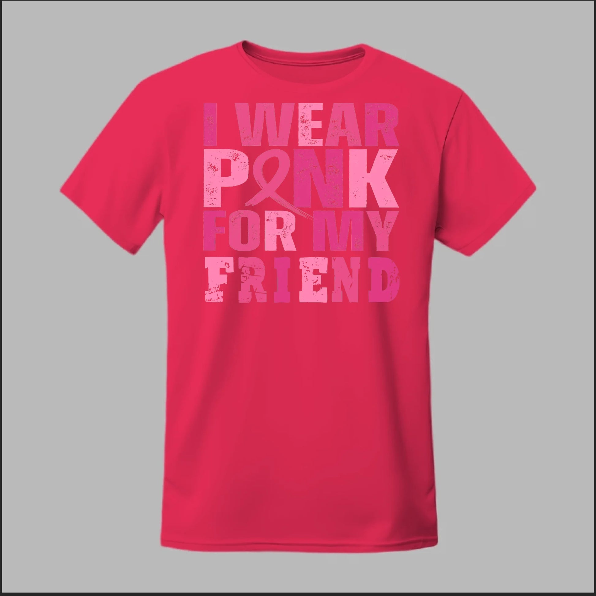 Show your support with this Breast Cancer Awareness tee. The bold pink lettering and ribbon design make a powerful statement: “I Wear Pink for My Friend.” Made with soft cotton, it’s perfect for awareness walks, fundraisers, or everyday wear to honor those you care about.