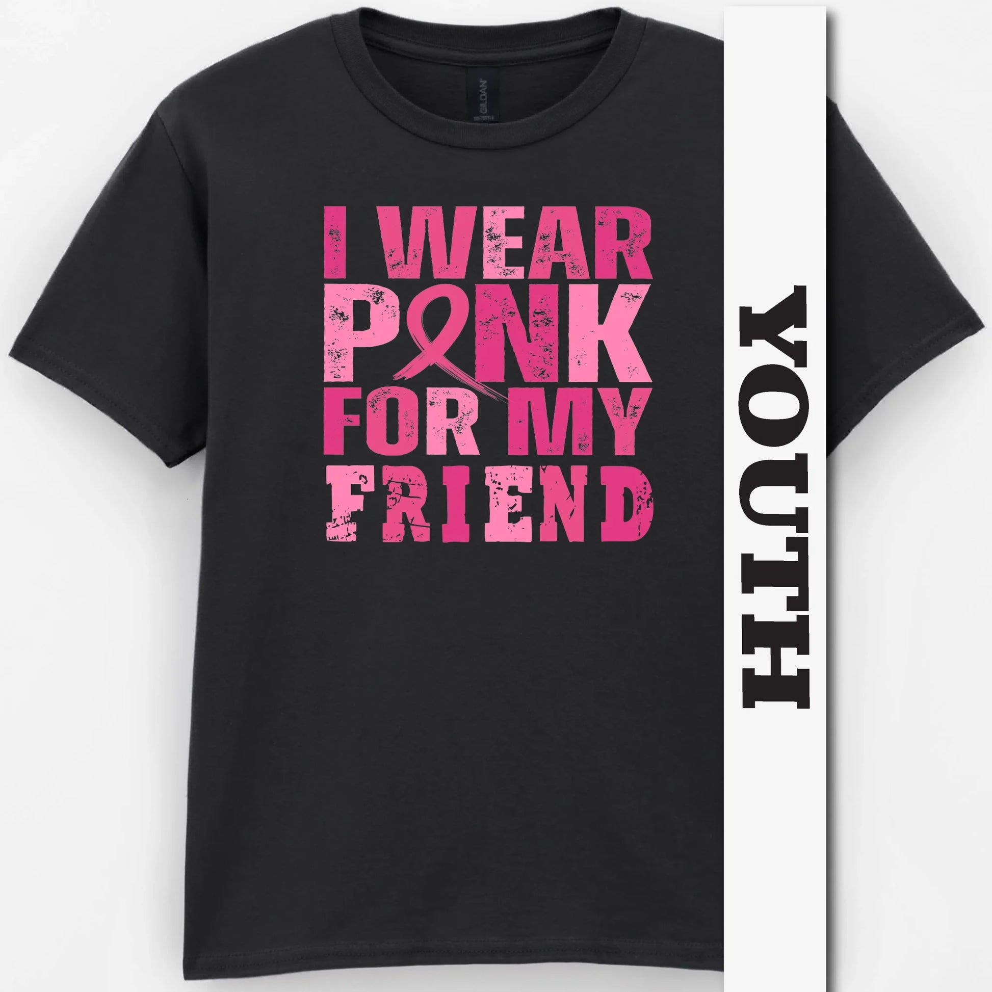 Show your support with this Breast Cancer Awareness tee. The bold pink lettering and ribbon design make a powerful statement: “I Wear Pink for My Friend.” Made with soft cotton, it’s perfect for awareness walks, fundraisers, or everyday wear to honor those you care about.