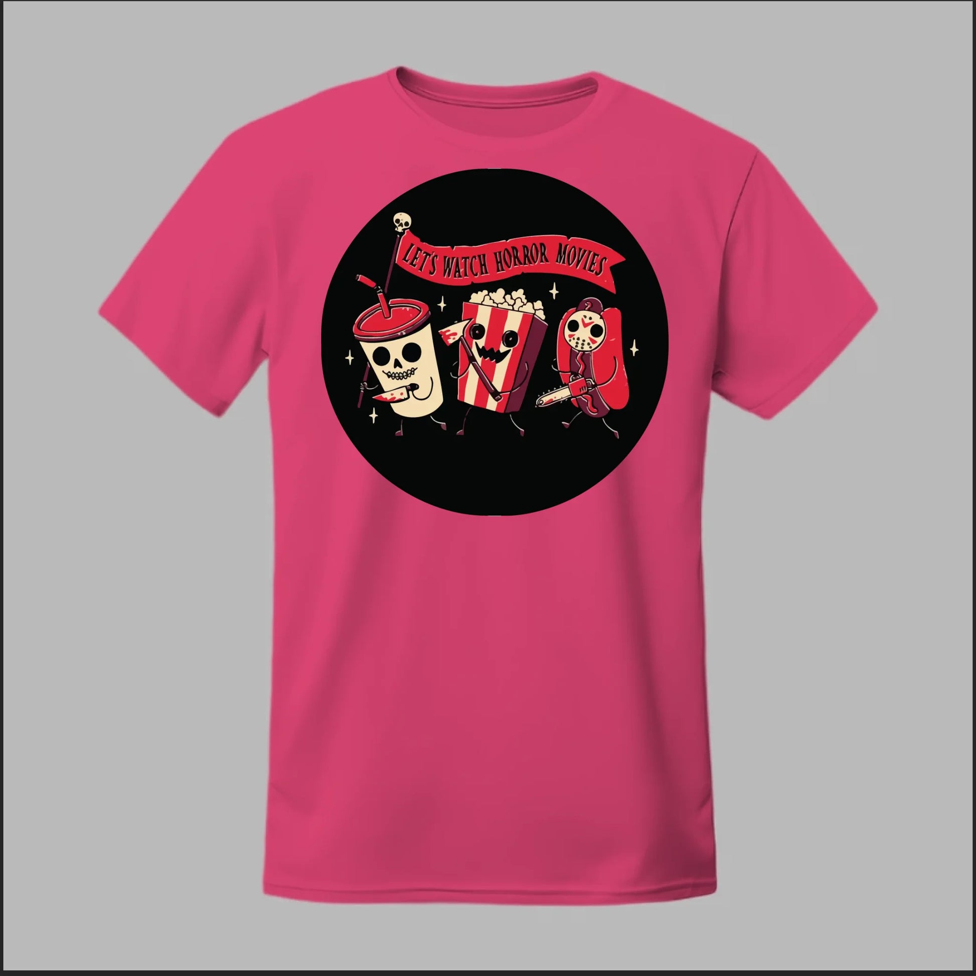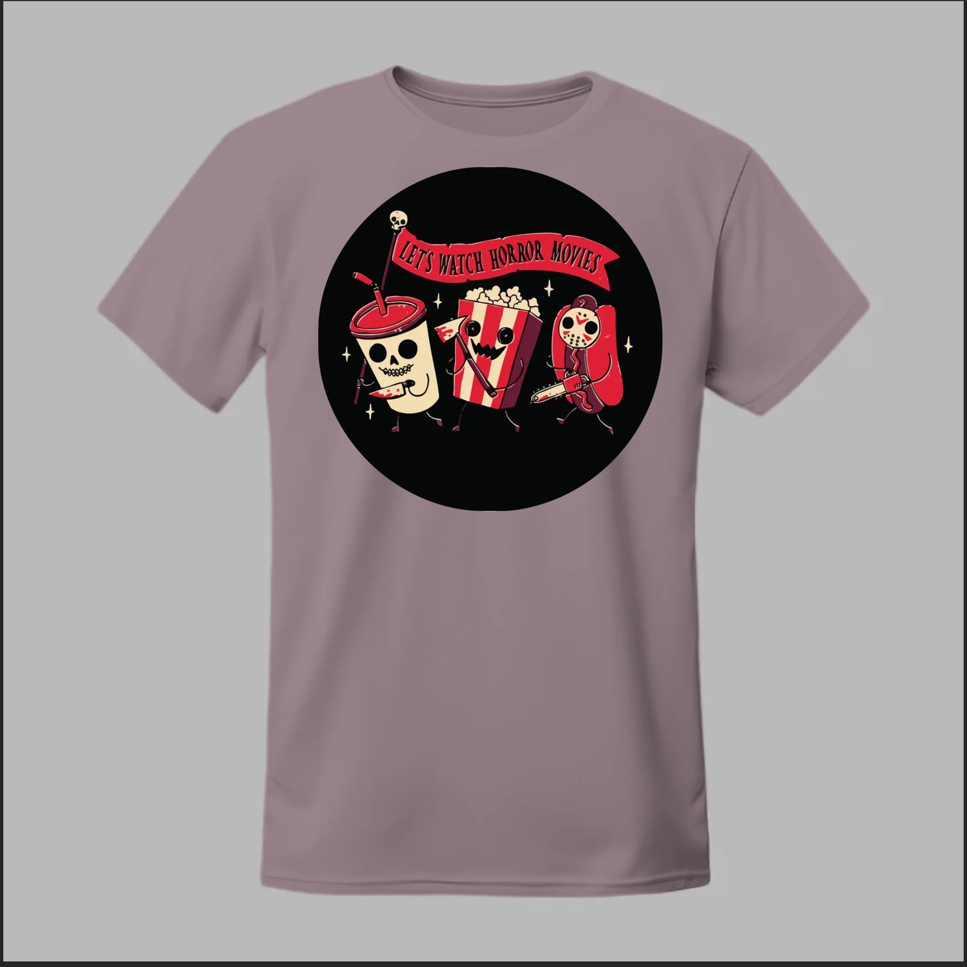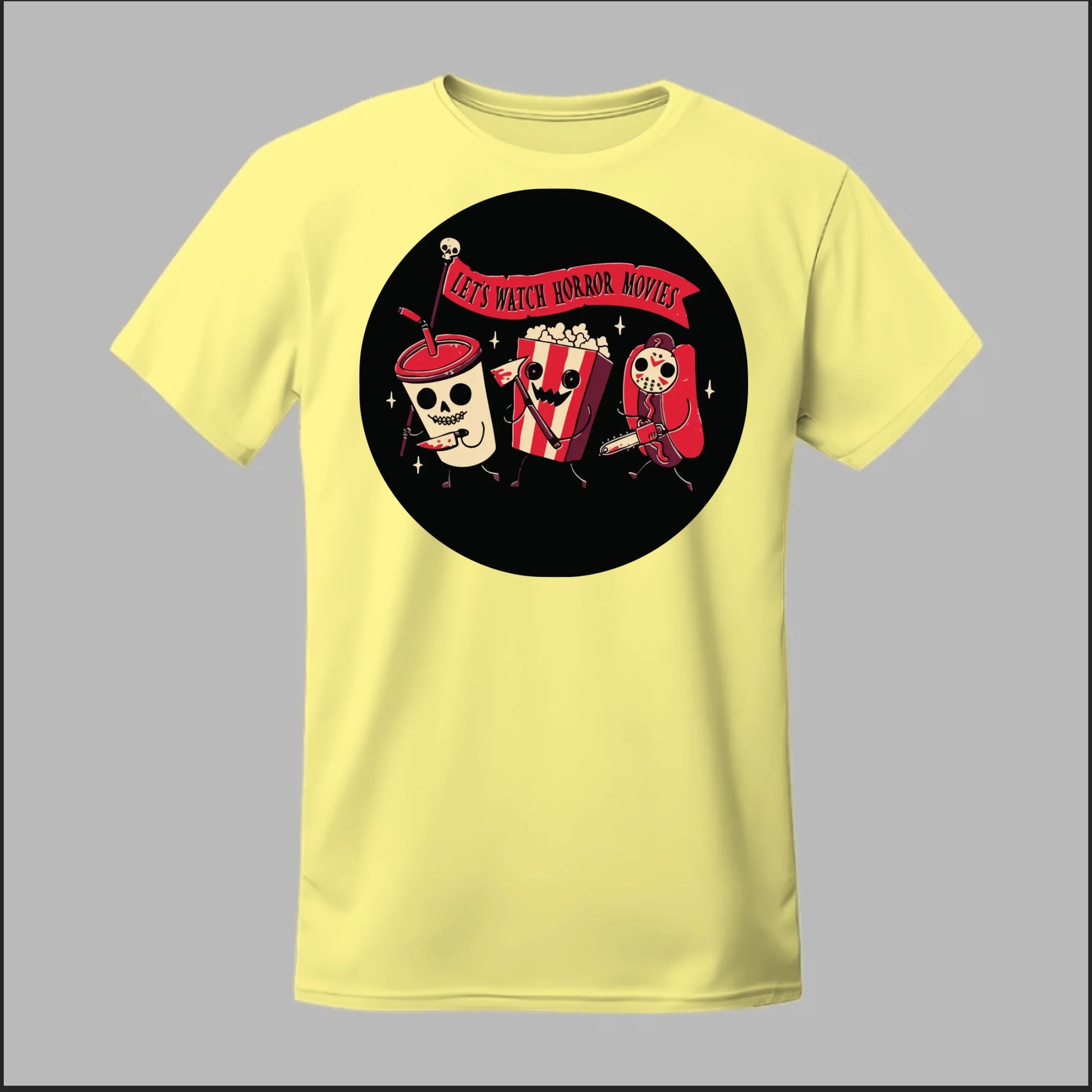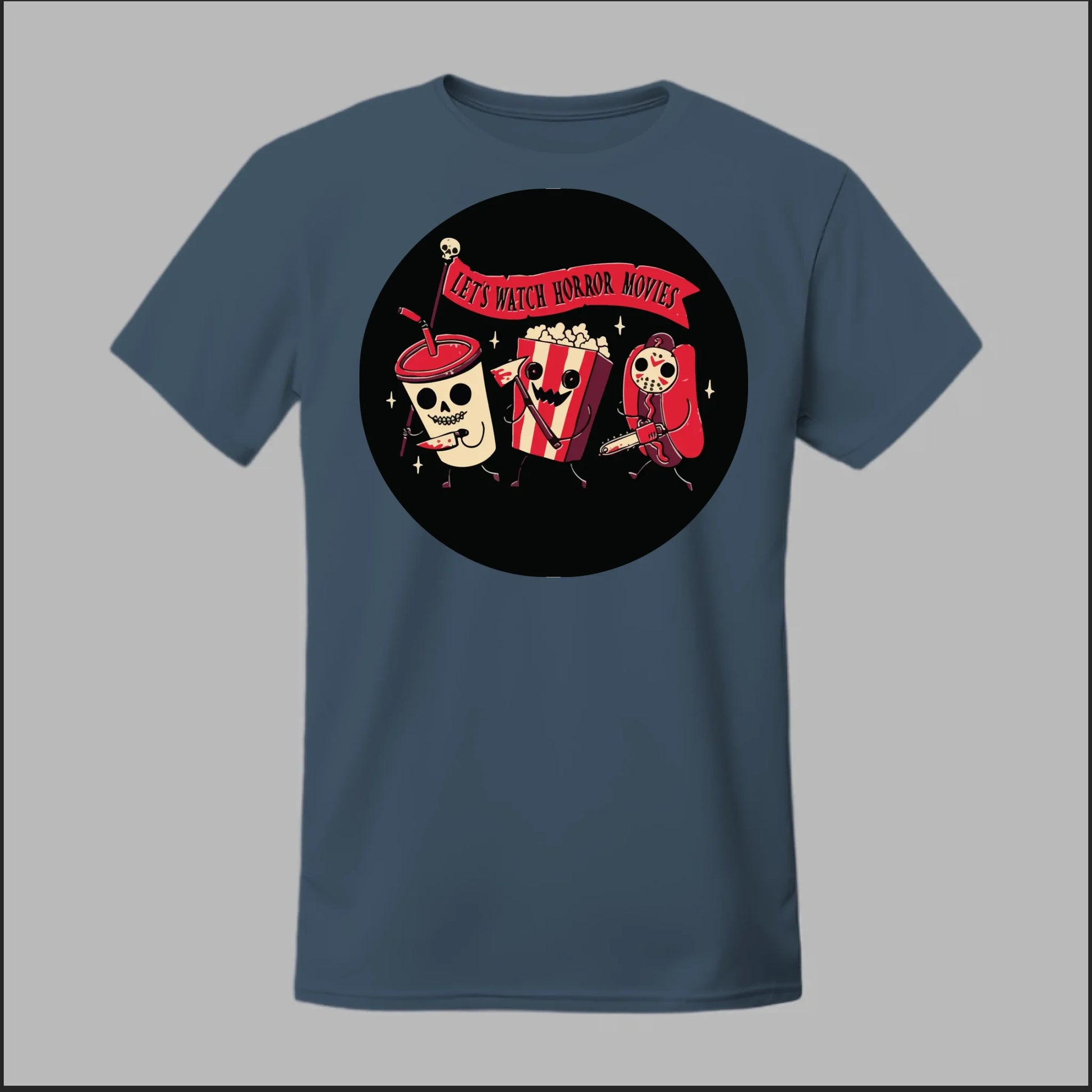 Grab your popcorn, soda, and hot dog—because it’s time for a horror movie marathon! Our Let’s Watch Horror Movies is perfect for anyone who loves spooky flicks and slasher vibes. Fun cartoon design featuring creepy popcorn, soda, and hotdog characters. Perfect for horror fans, Halloween parties, or scary movie nights.
