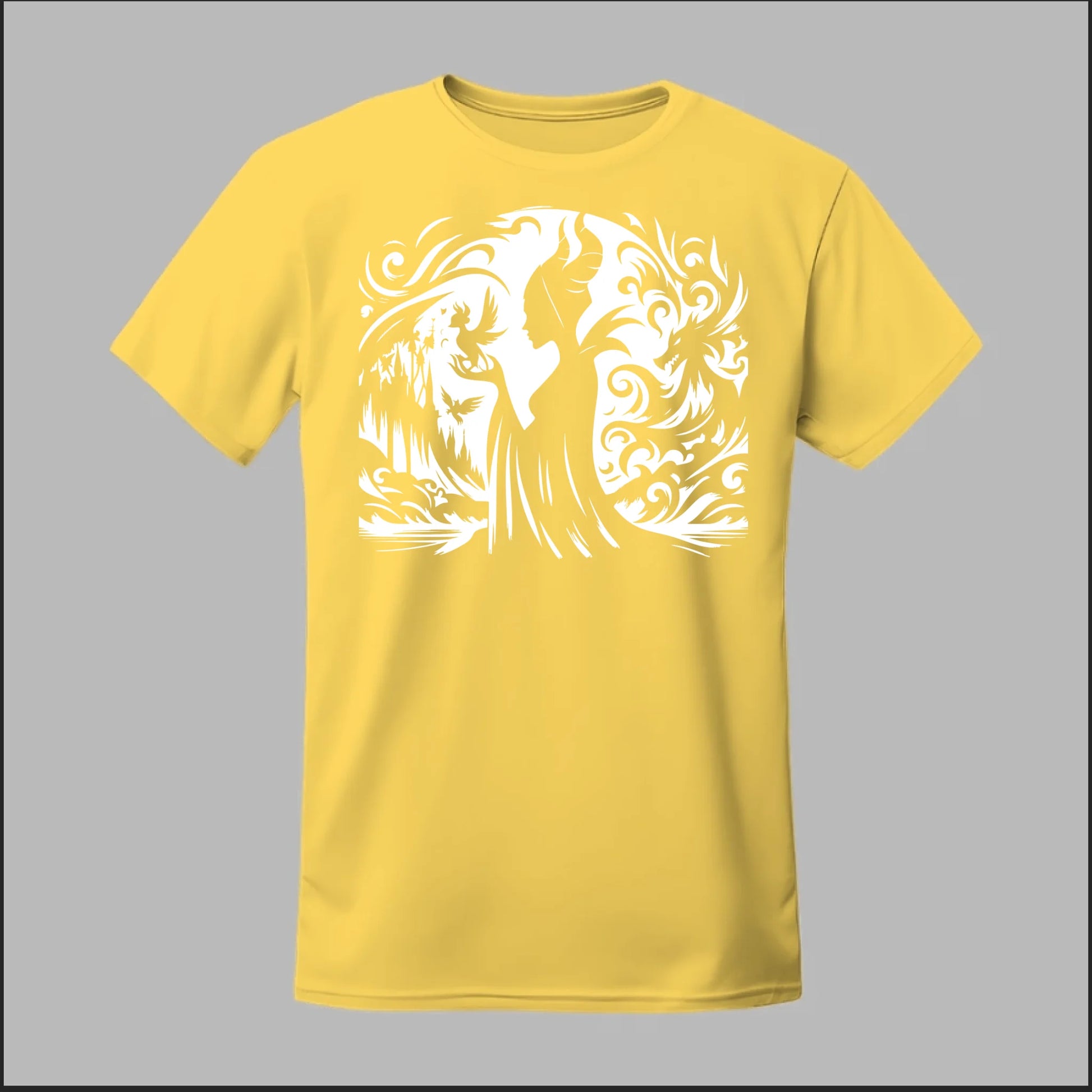Unleash your dark side with this stunning negative-space design inspired by the legendary Maleficent. Featuring intricate swirls, a powerful dragon, and gothic castle details, this bold black-and-white artwork makes a statement wherever you go. Perfect for fans of villains, fantasy, and striking gothic art.