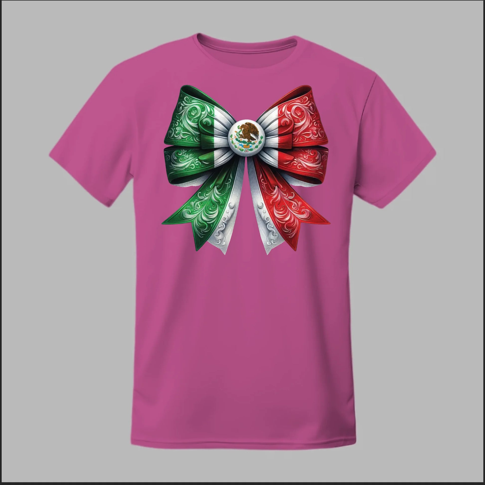 Show off your heritage in style with the Mexibow Pride Tee! Featuring a beautifully detailed bow in the colors of the Mexican flag with the national emblem at its center, this design celebrates culture, pride, and tradition. Perfect for fiestas, cultural events, or everyday wear, this tee is a bold statement of Mexican roots and national pride.