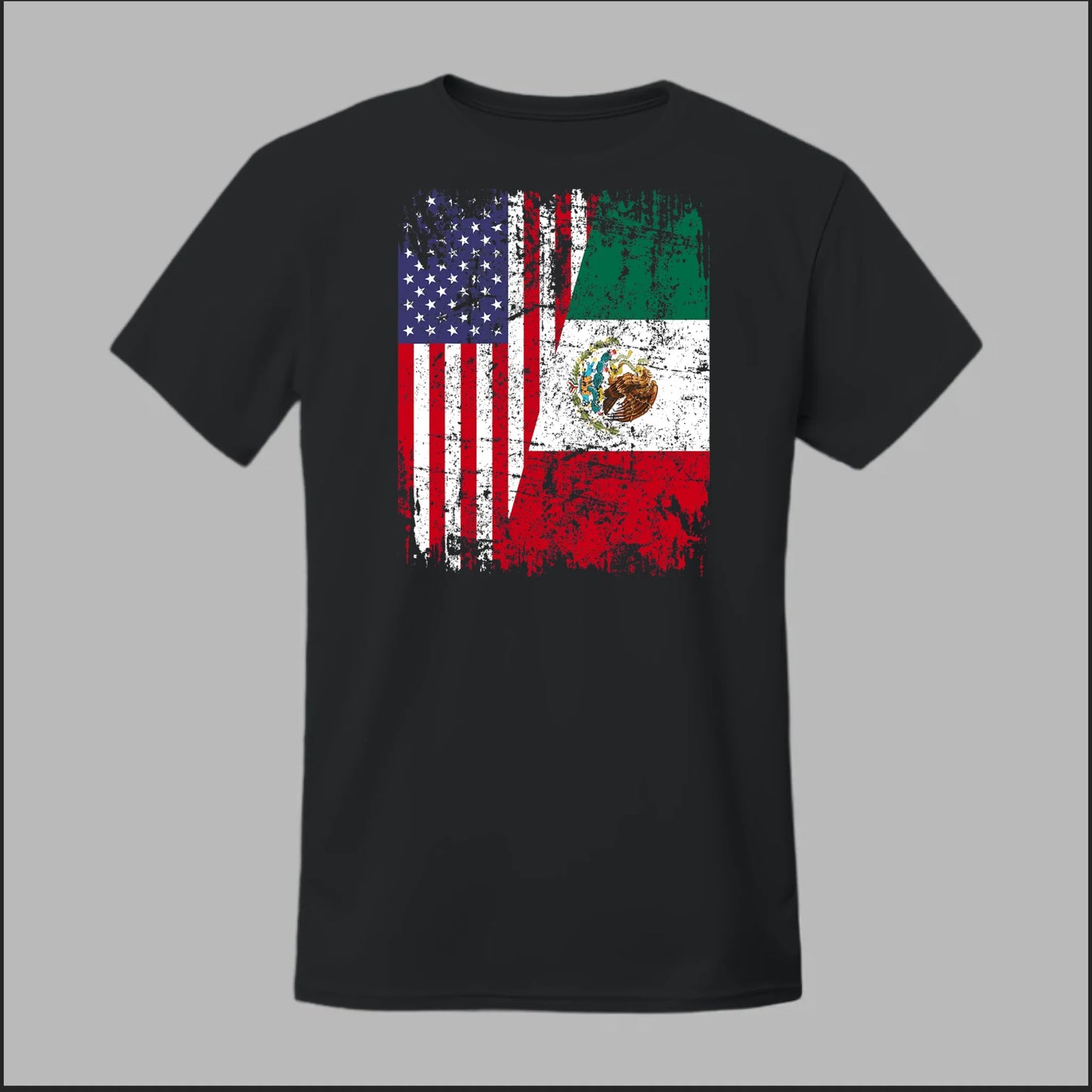 Celebrate both sides of your heritage with this bold split flag design. The “Mexican-American Roots” graphic blends the American and Mexican flags in a distressed style that symbolizes unity, pride, and cultural strength.