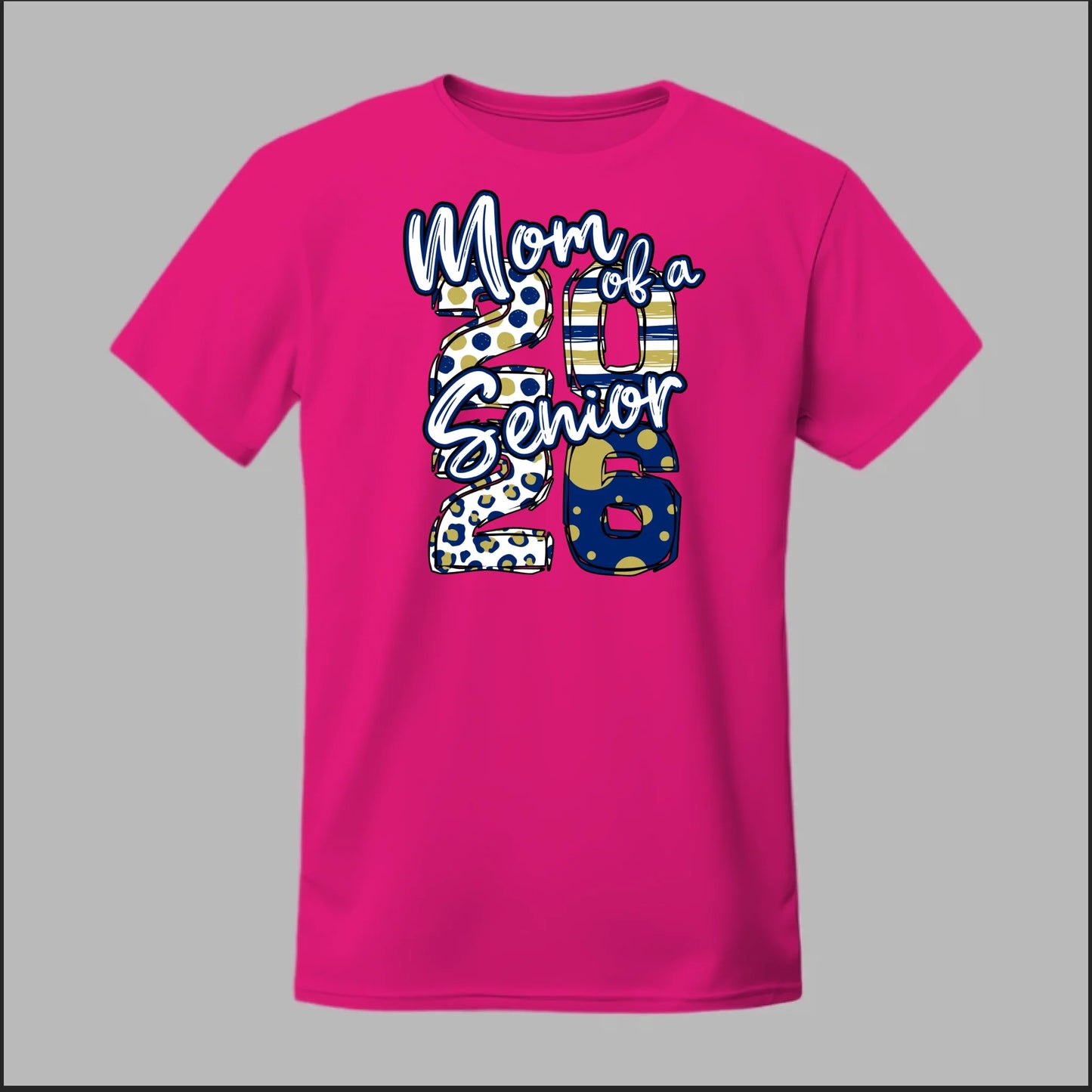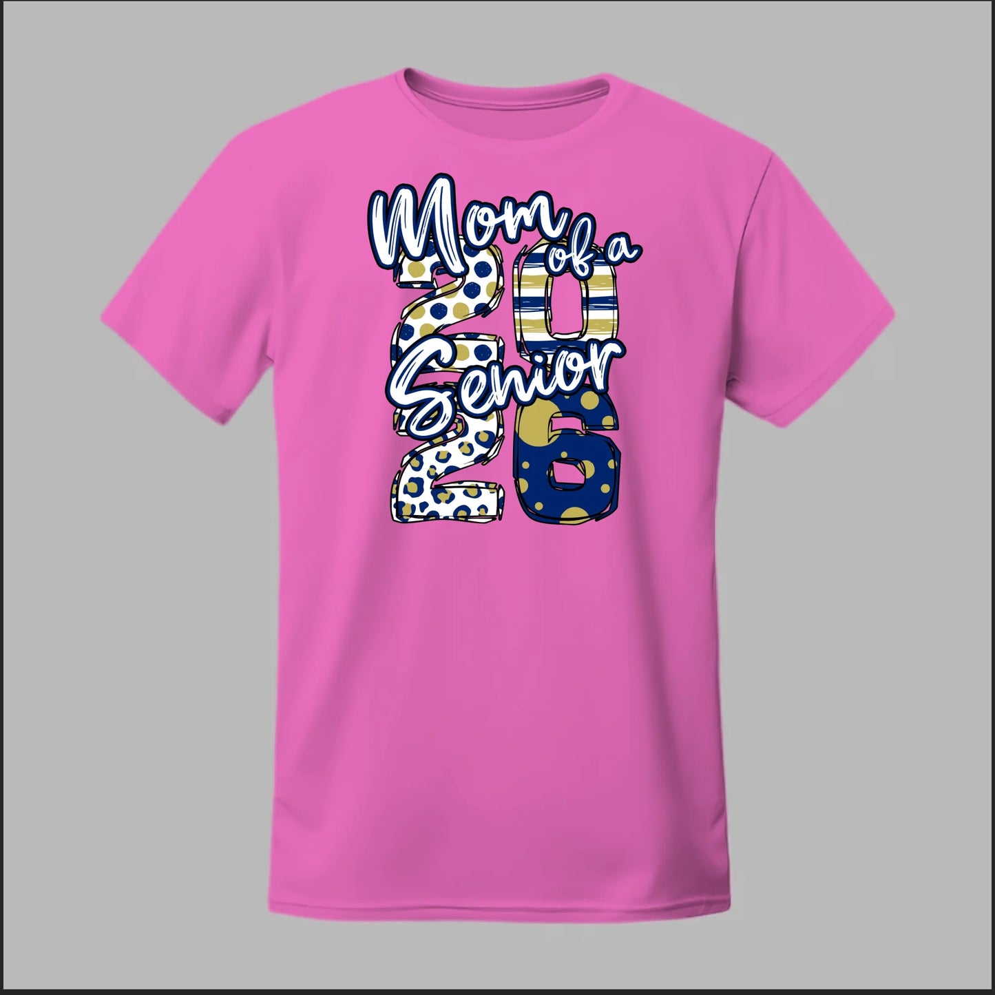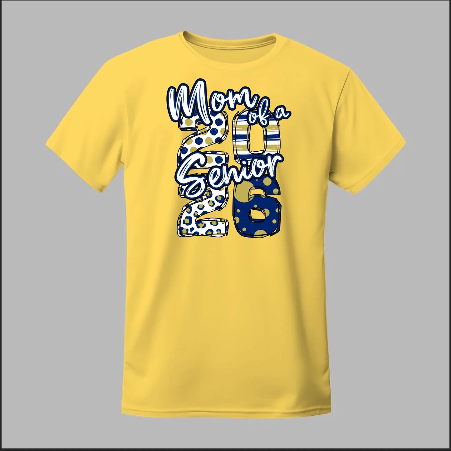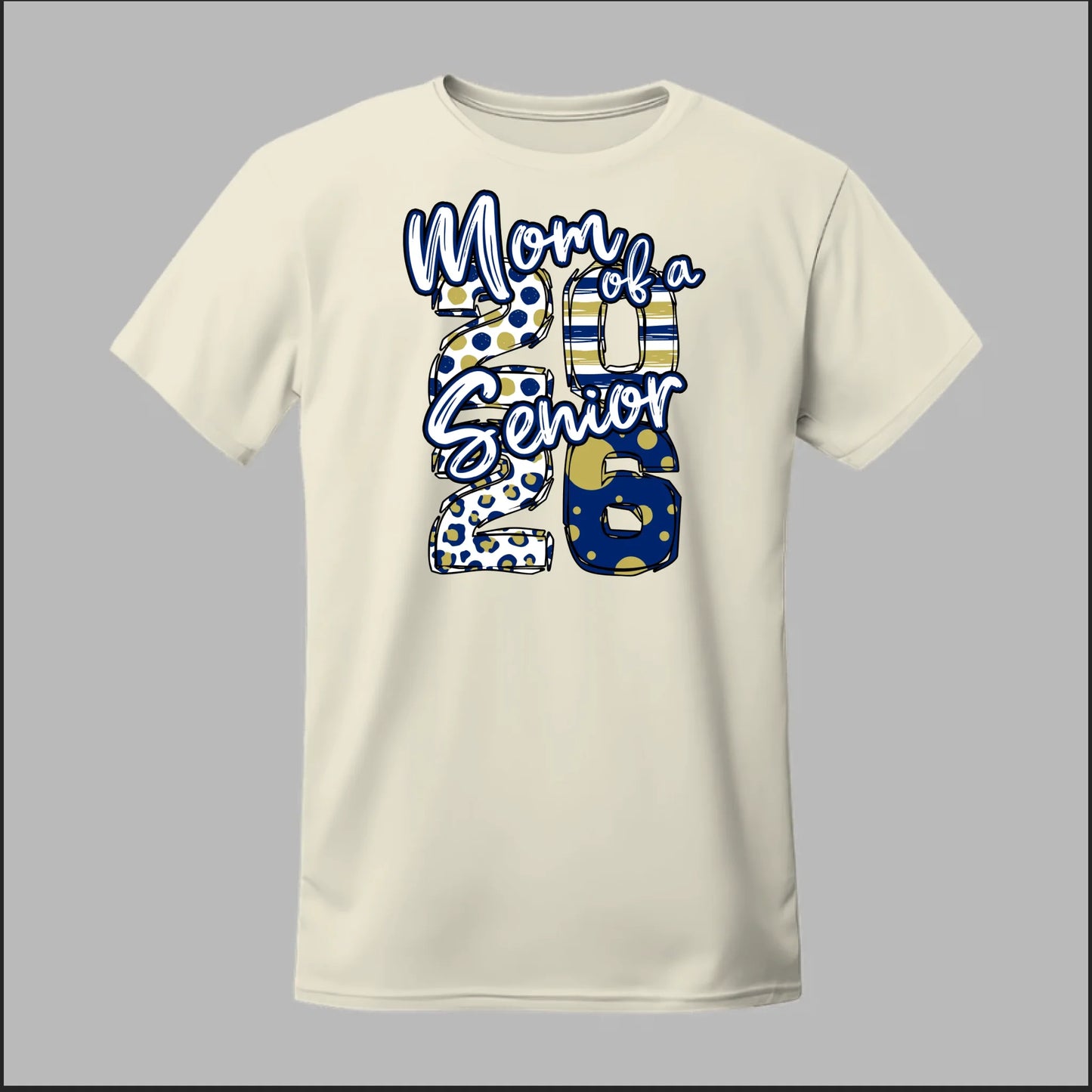 Celebrate your grad in style with this bold and playful “Mom of a Senior 2026” design! Featuring the year in eye-catching mixed patterns—leopard print, stripes, and polka dots—this graphic is full of school spirit and personality. The hand-lettered script adds a heartfelt touch, making it the perfect design for proud senior moms everywhere.