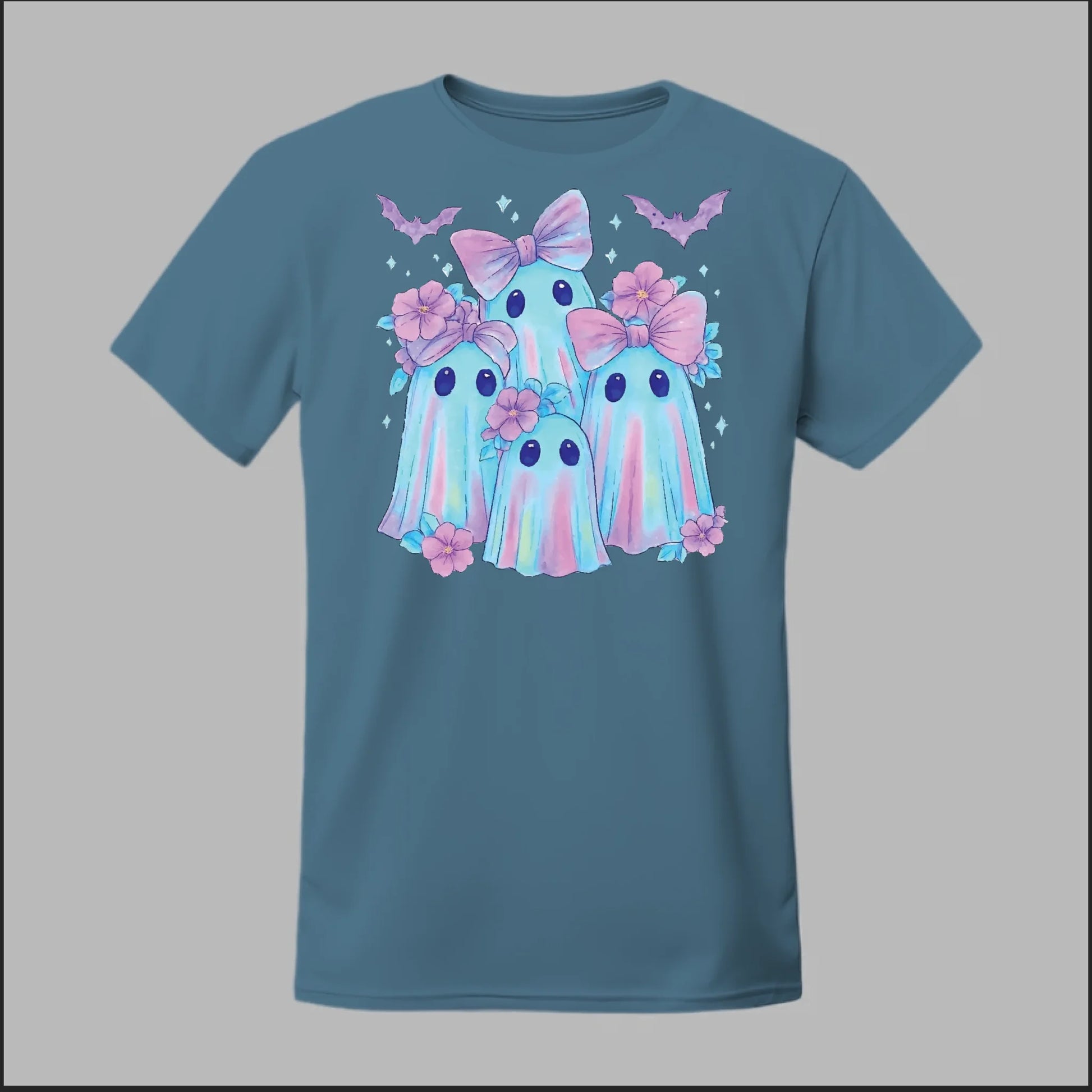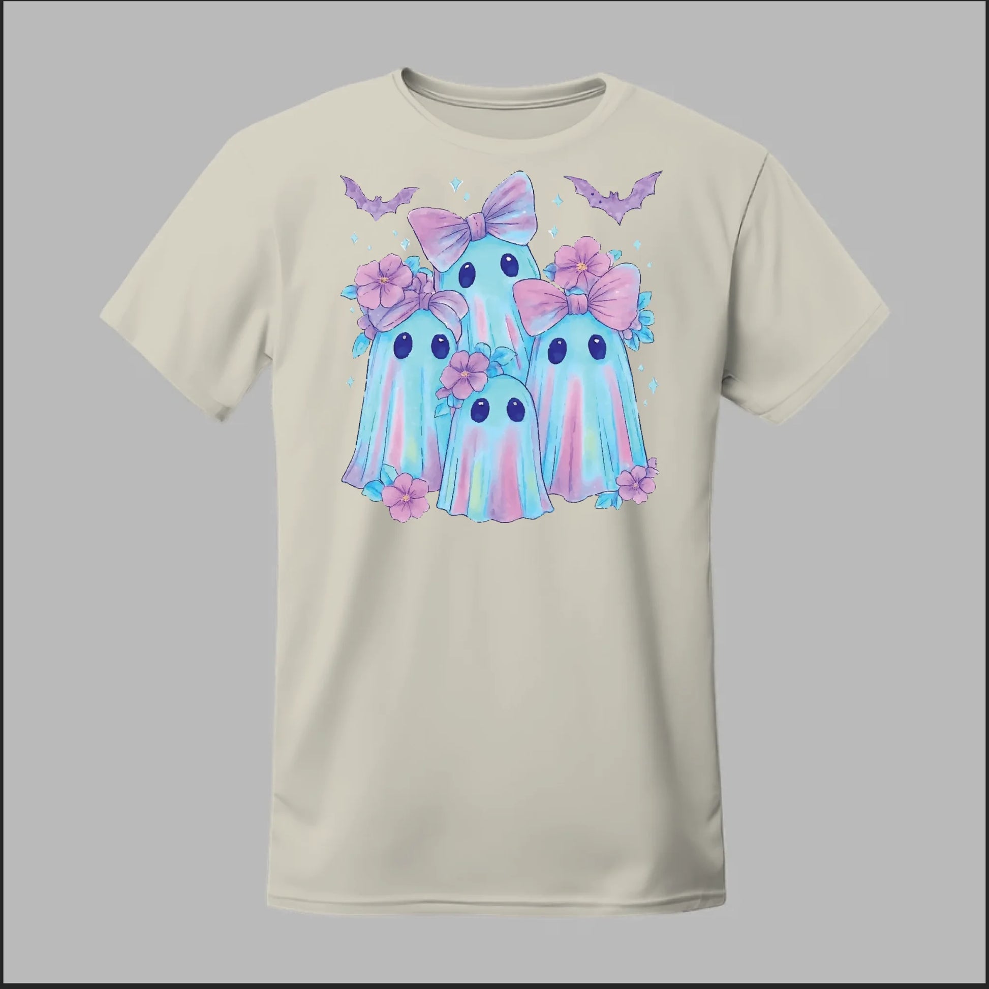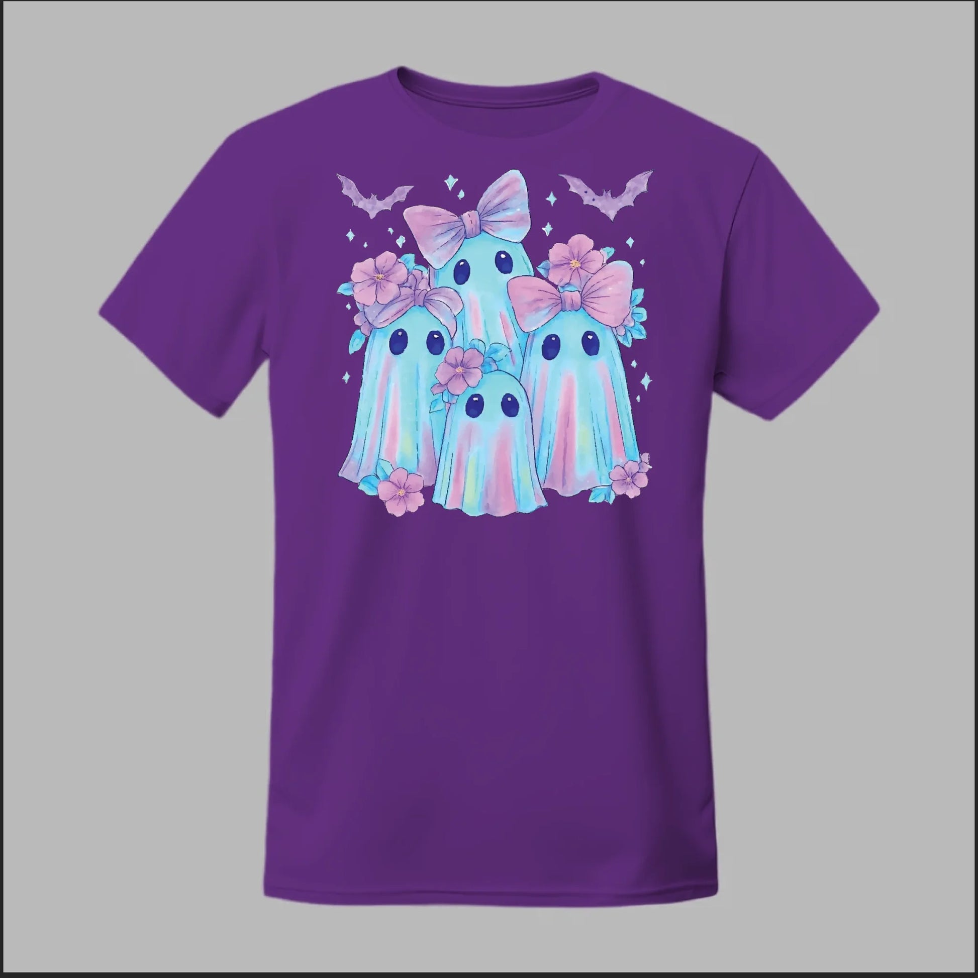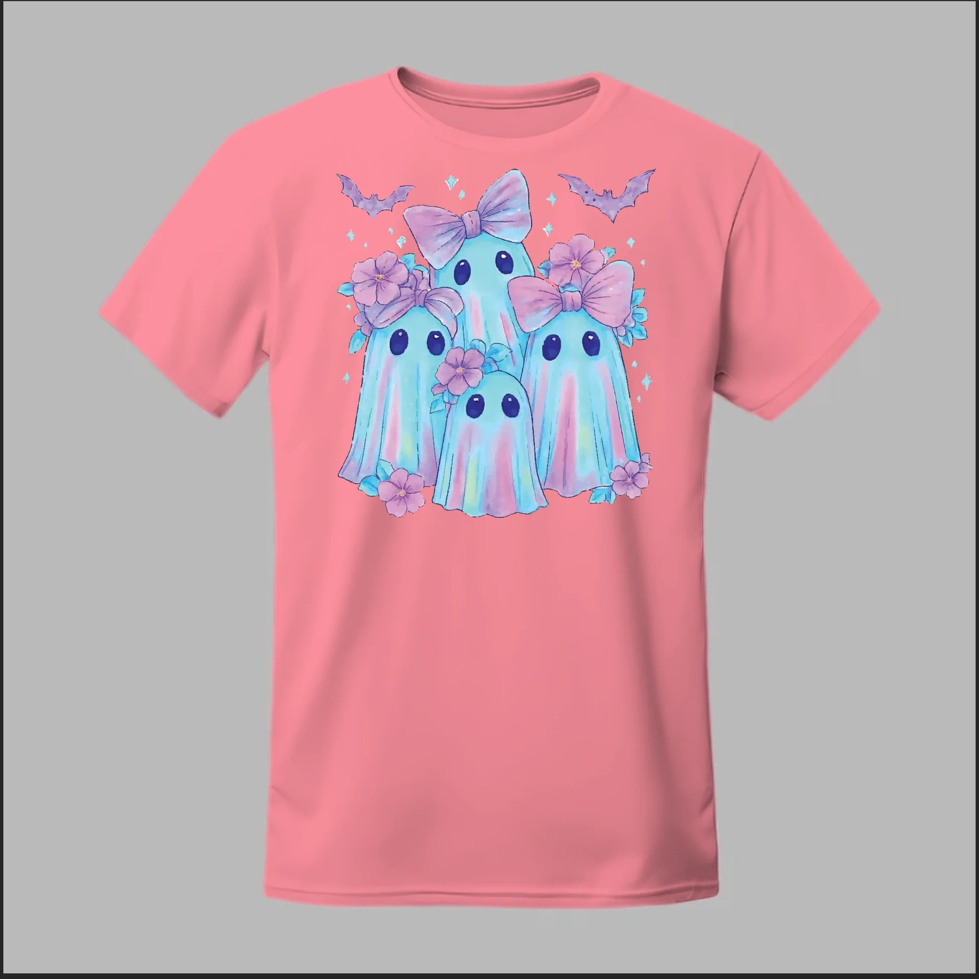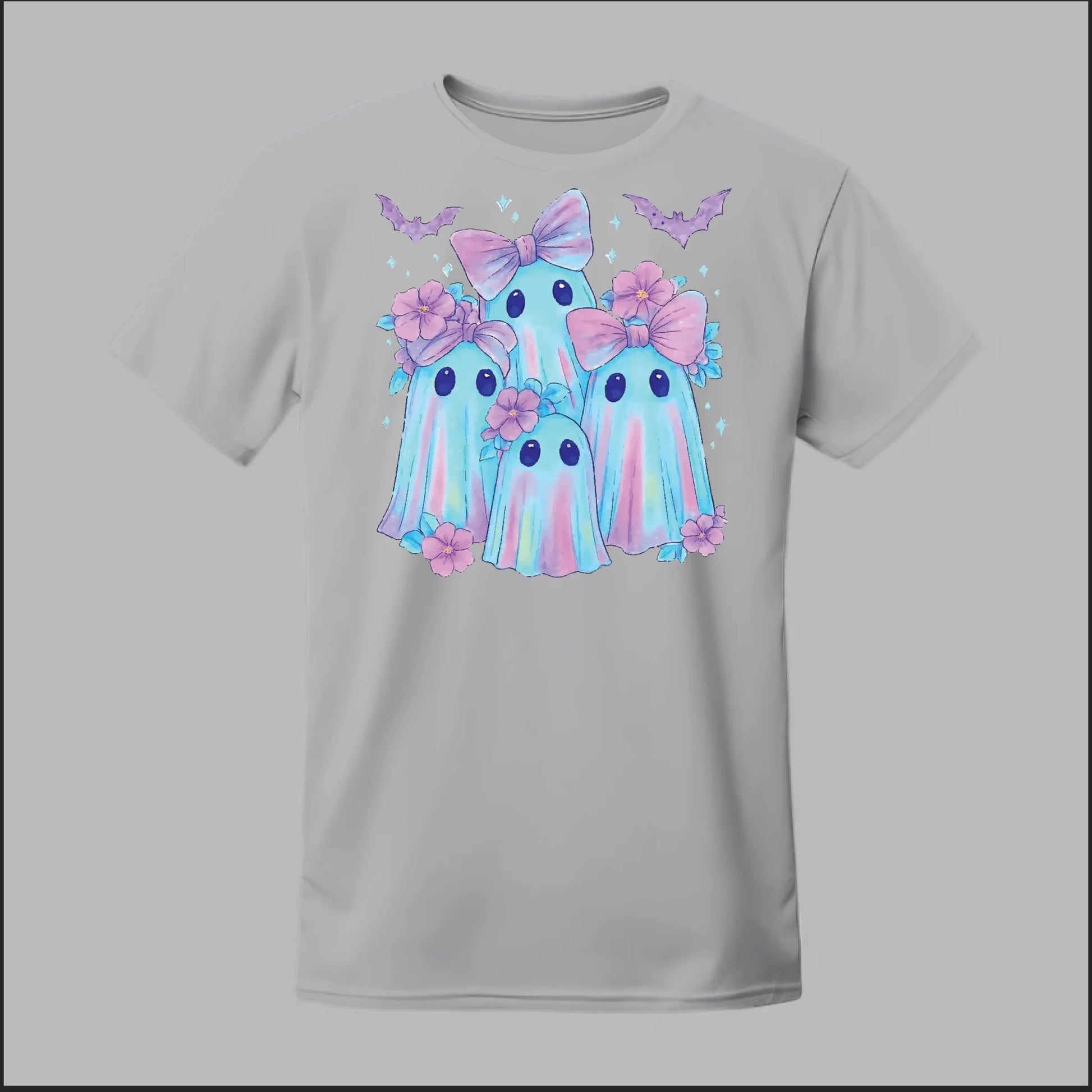Stay cozy and stylish with the Pastel Spirit Squad Sweatshirt. The soft pastel ghosts, floral accents, and whimsical bats create a magical look that’s both spooky and sweet. Designed for comfort and charm, it’s the perfect piece for fall nights, pumpkin patch visits, or just showing off your playful side.