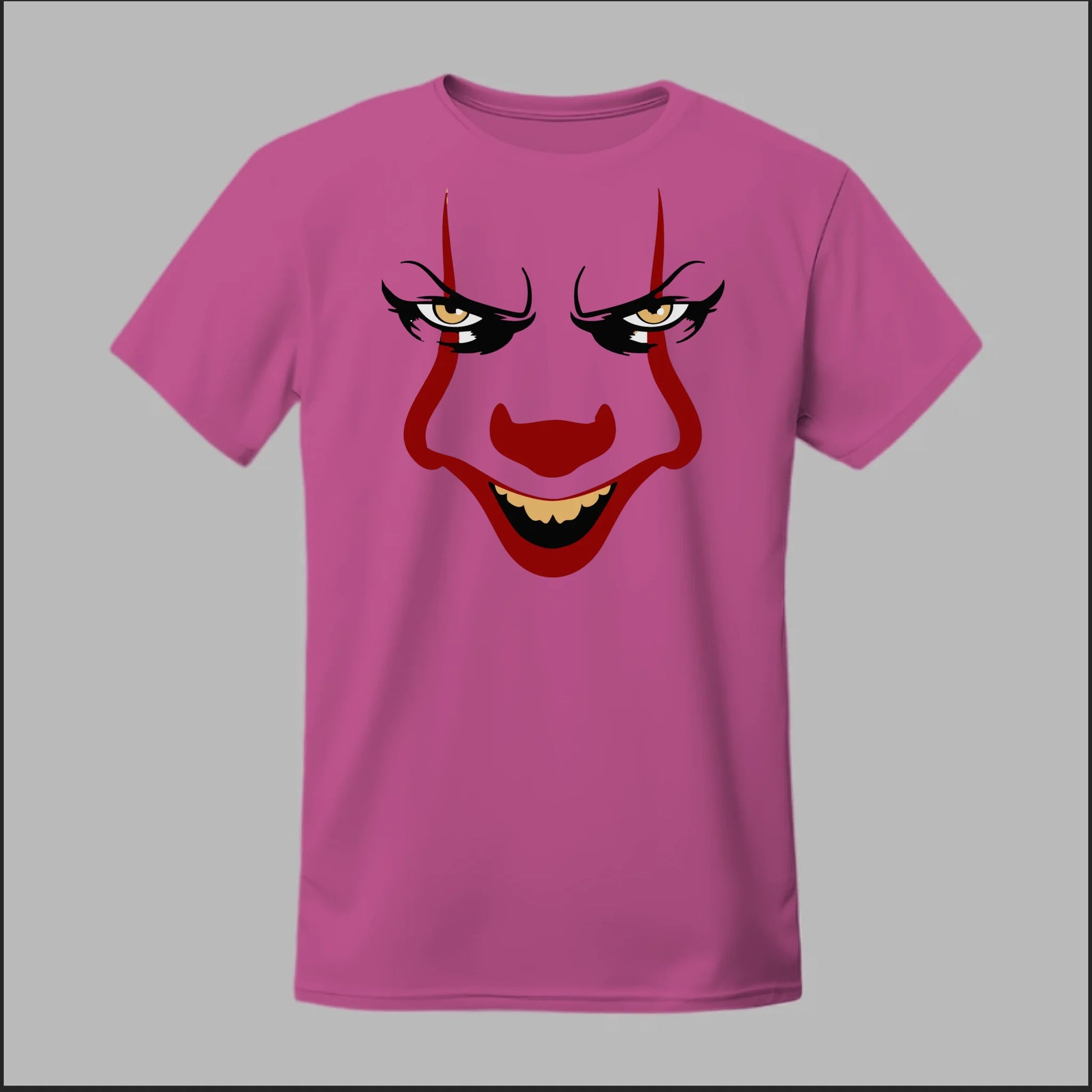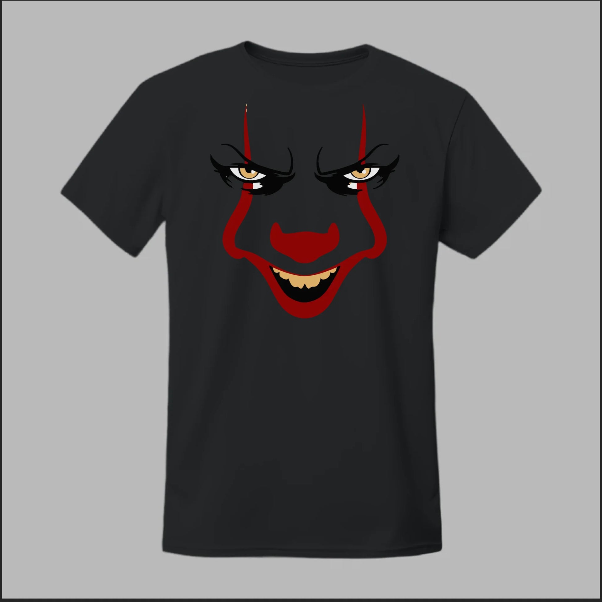 Make this Halloween unforgettable with a shirt that’s equal parts creepy and cool. A must-have for clown lovers and horror fans alike!