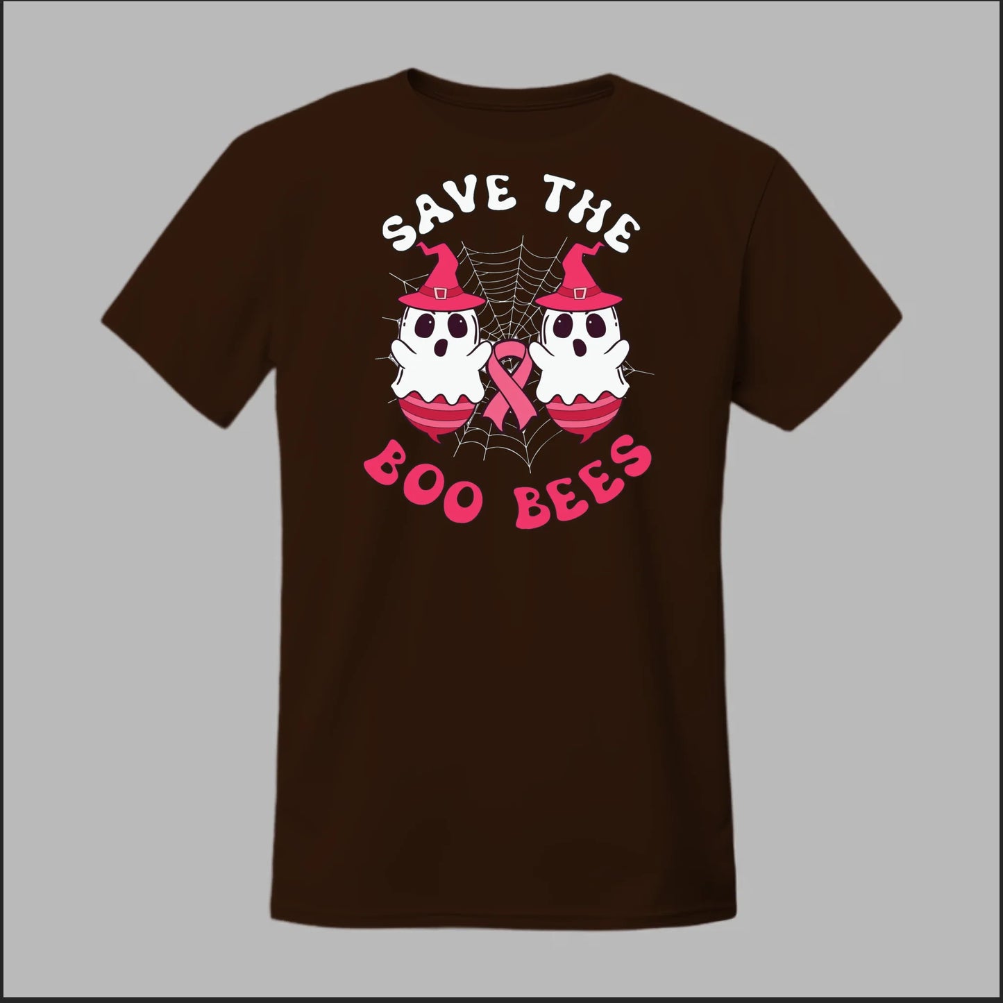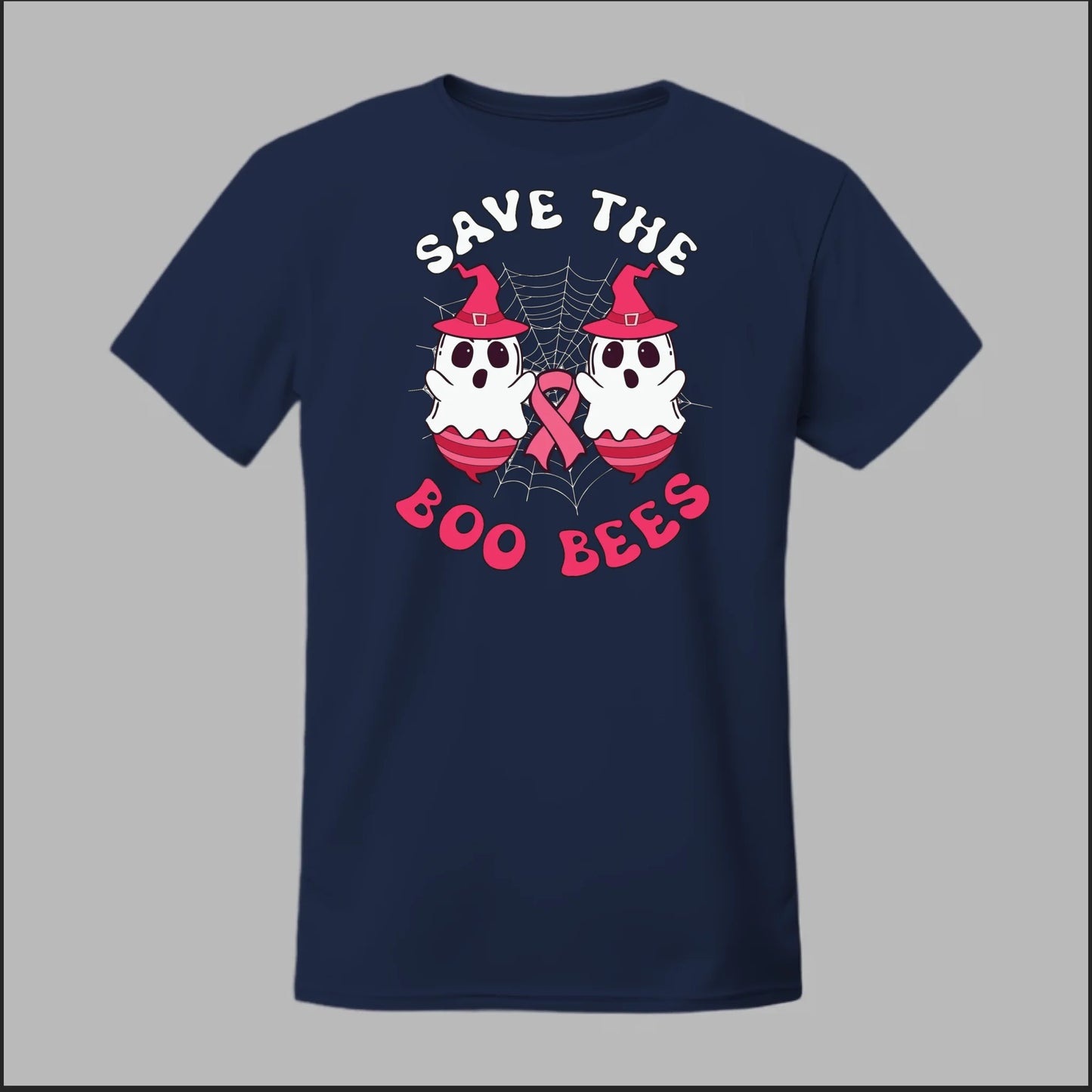 This playful Halloween-themed shirt mixes spooky fun with an important cause. Featuring two ghostly bees in pink witch hats, a spiderweb backdrop, and the breast cancer awareness ribbon, the design reads “Save the Boo Bees.” Perfect for October events, awareness walks, or just showing your support in a lighthearted way. Soft, comfortable, and made to stand out, it’s a great choice for both awareness and festive style.