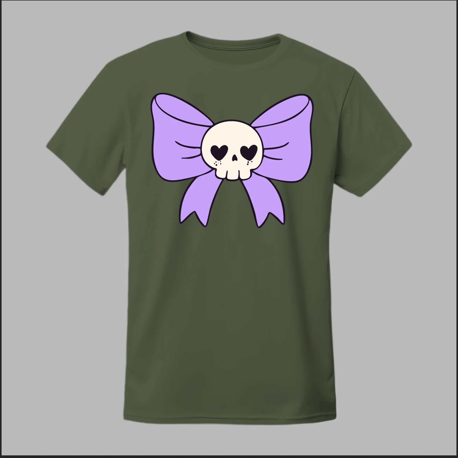 Sweet meets spooky with this Cute Skull Bow design! Featuring a dainty lavender bow and heart-shaped eyes, this skull is perfect for anyone who loves gothic style with a playful twist. A little creepy, a little cute — the perfect vibe for Halloween or everyday wear.