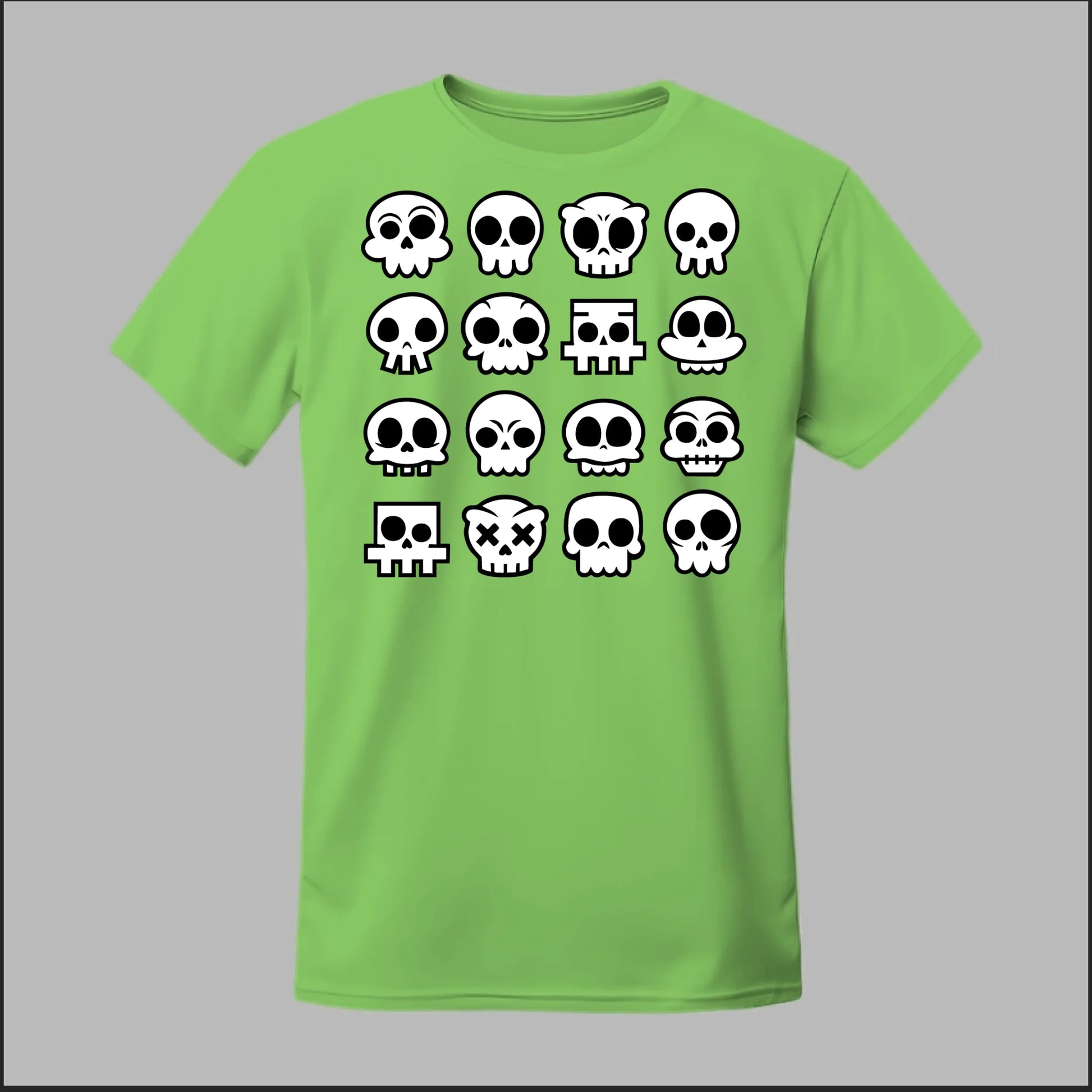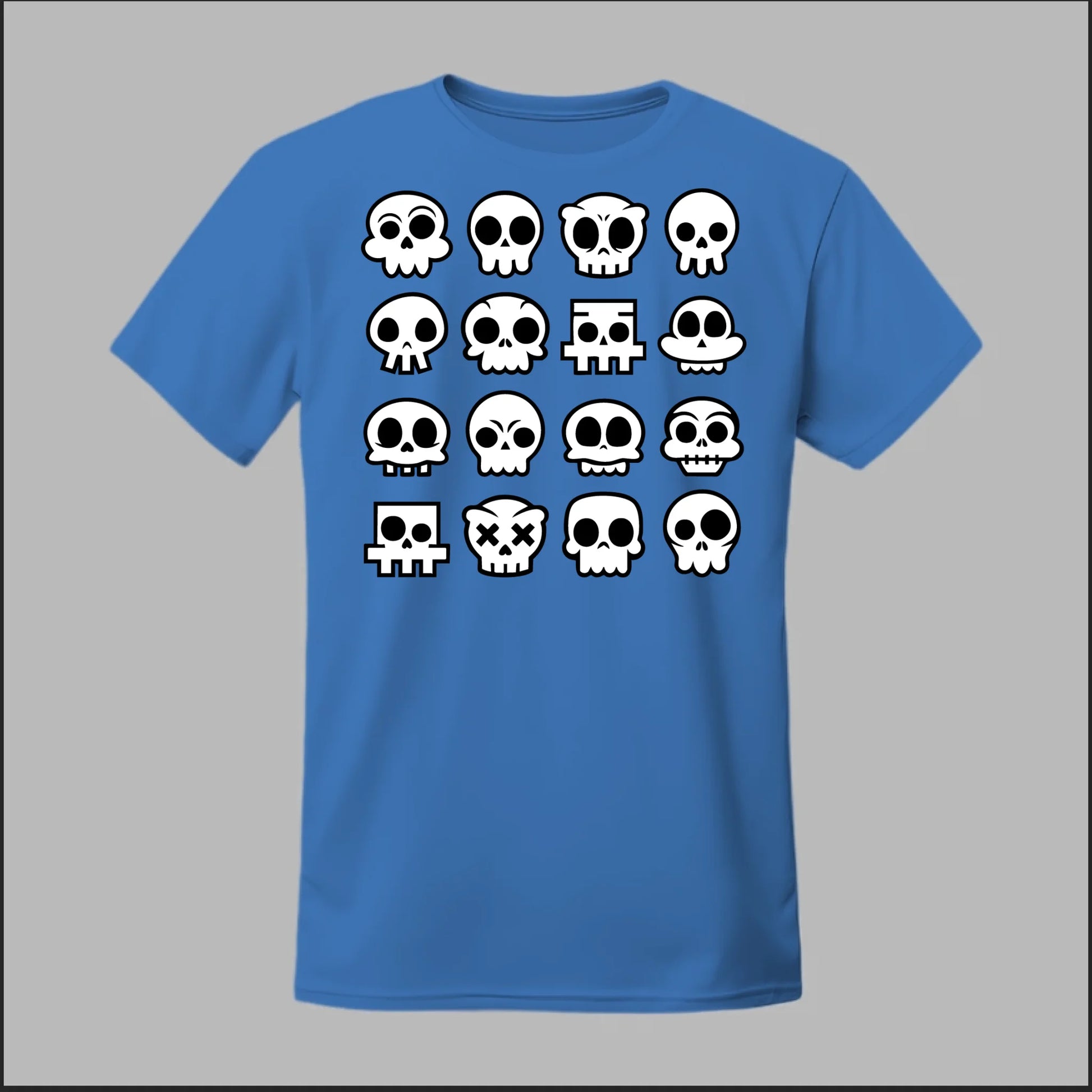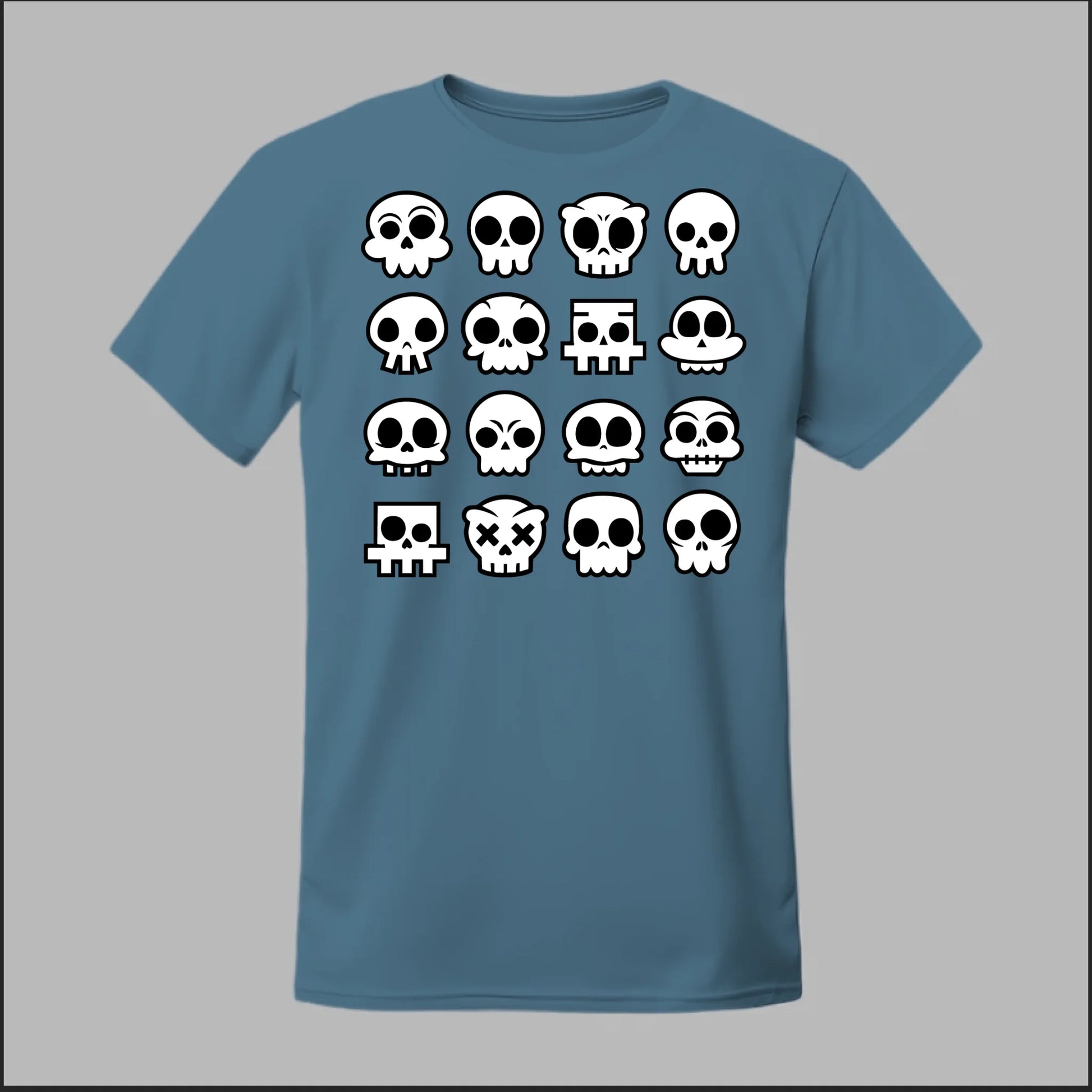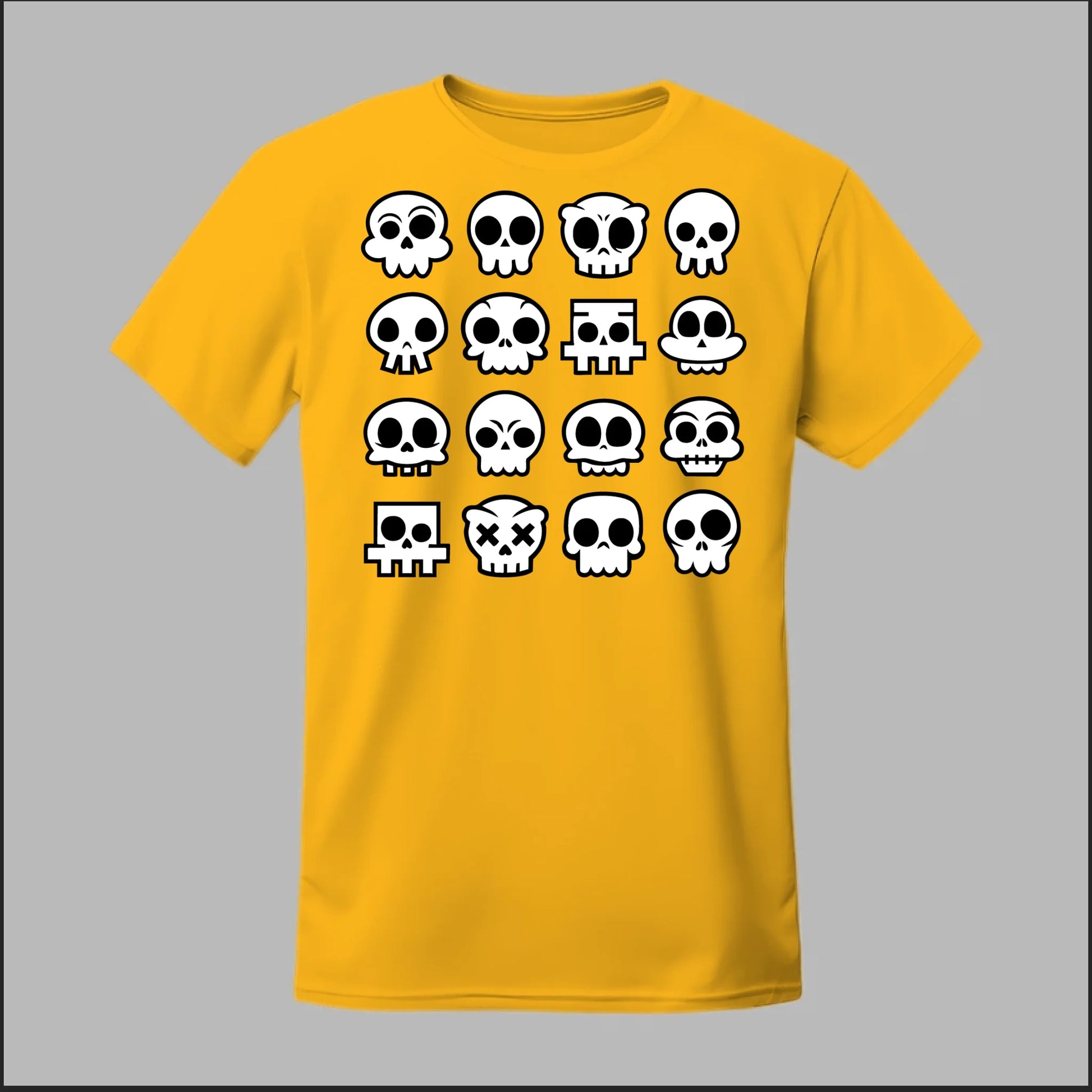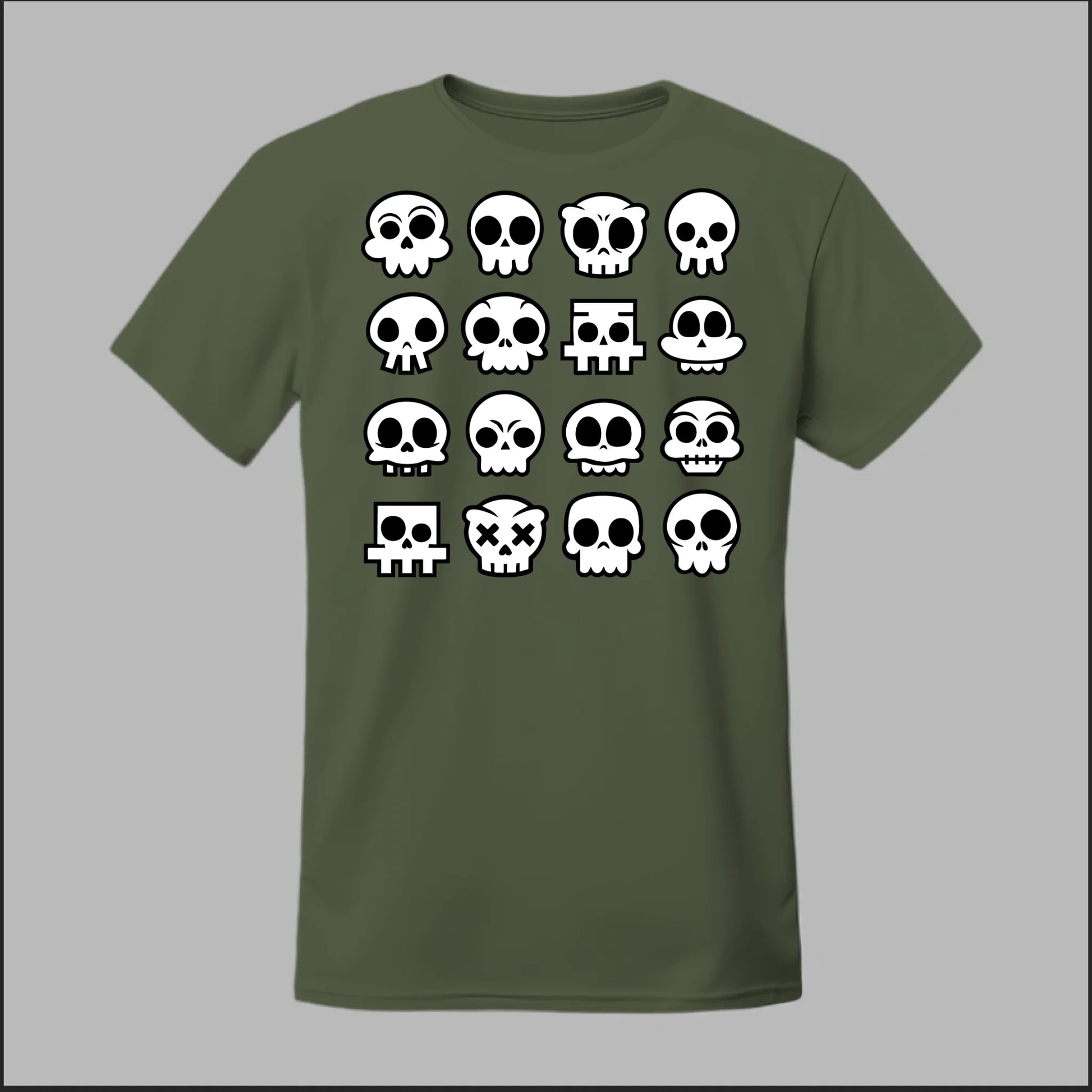 Add some playful spook to your wardrobe with this Cute Skull Cluster design! Featuring a grid of quirky and adorable skull faces, this design is equal parts spooky and fun — perfect for Halloween or everyday wear for skull lovers.