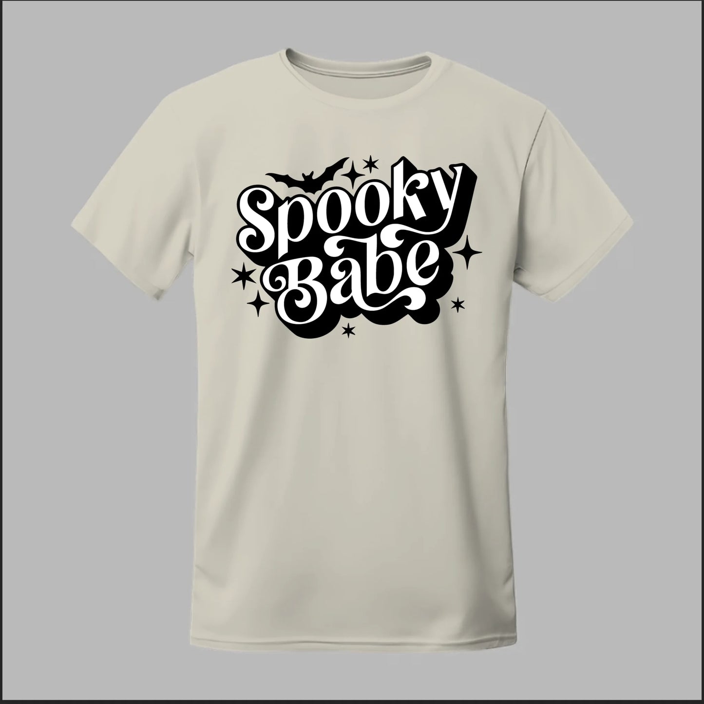 Step into spooky season with confidence in the Spooky Babe Tee. This bold and stylish design features retro-inspired lettering that celebrates your love for Halloween with a chic twist.