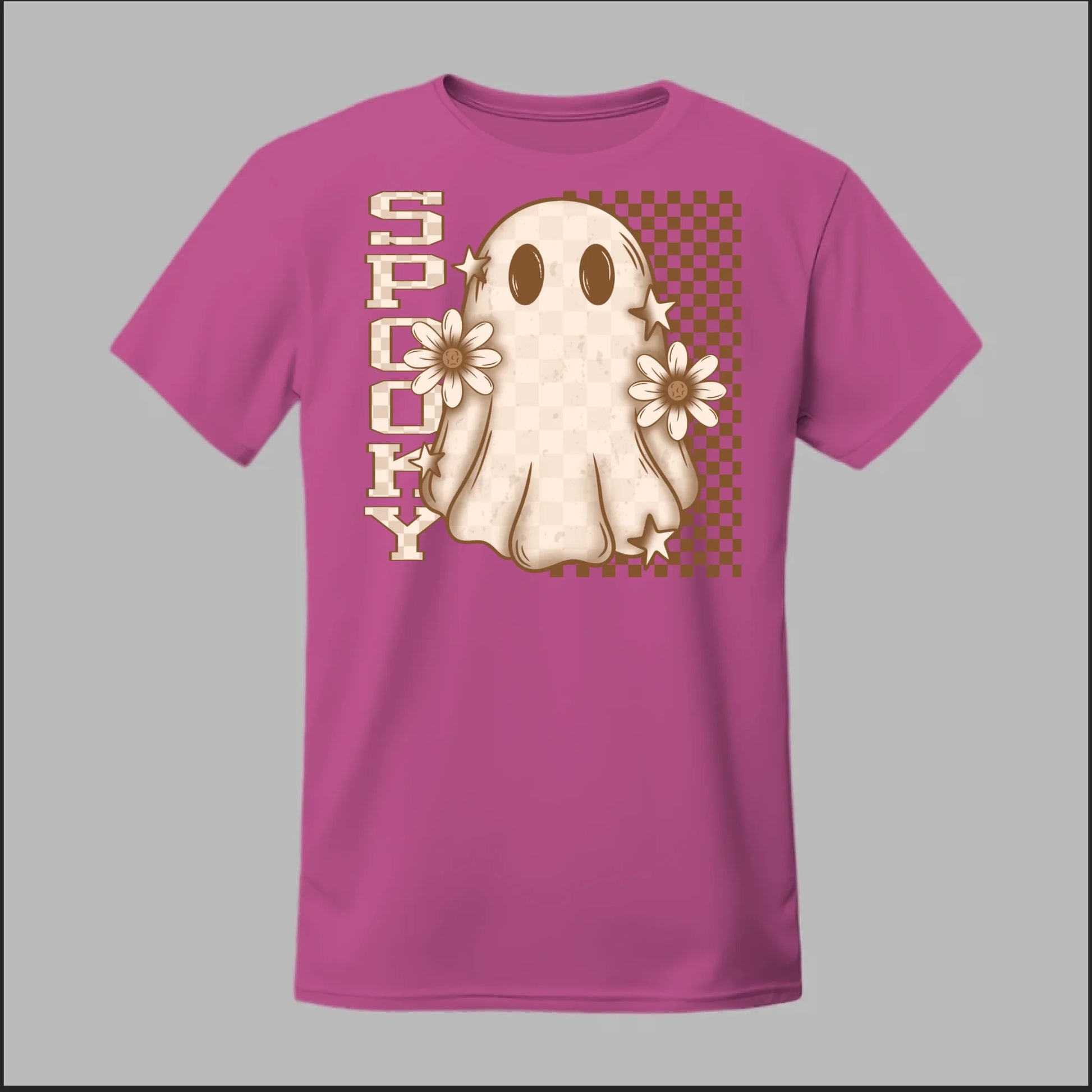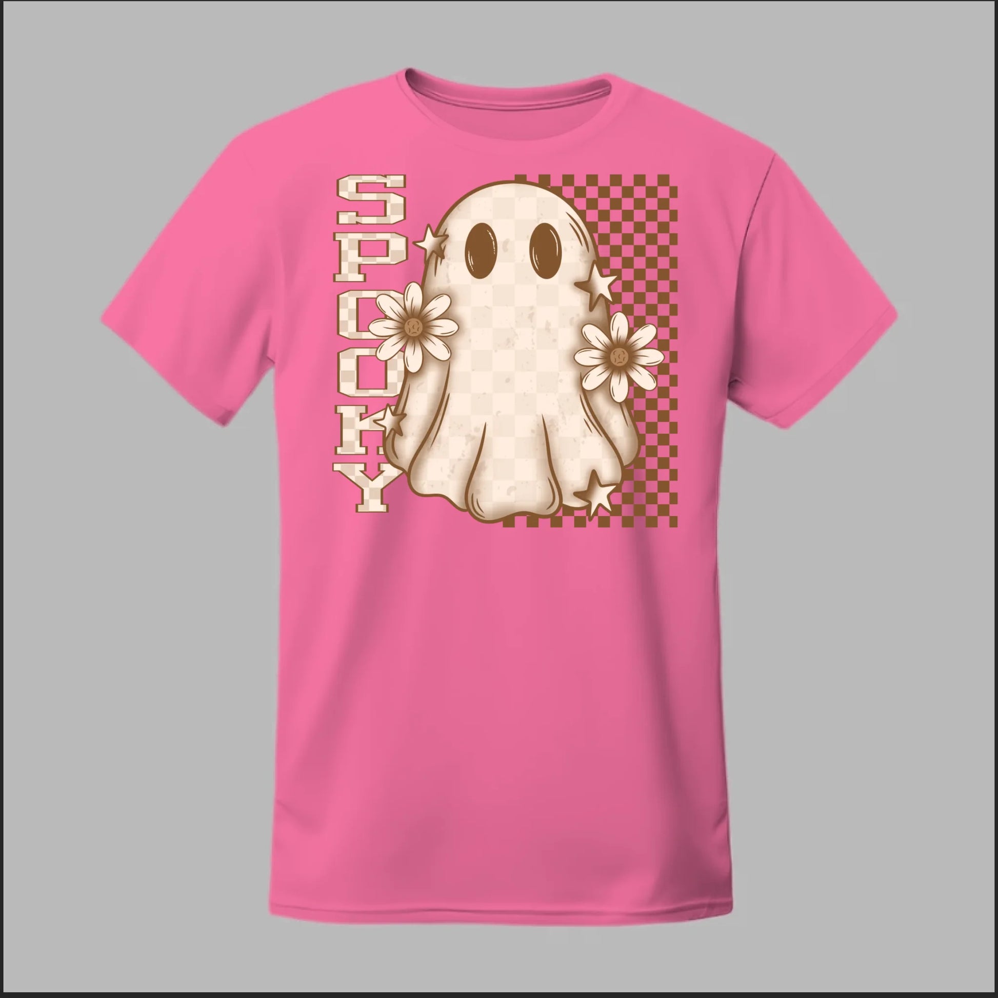 Sweet meets spooky with this boho-inspired ghost design! Featuring floral accents, soft neutral tones, and a retro checkered background, this tee is perfect for cozy autumn days, Halloween nights, or anytime you want to rock a spooky-cute look.
