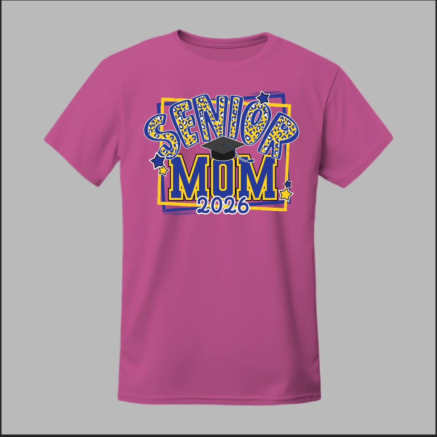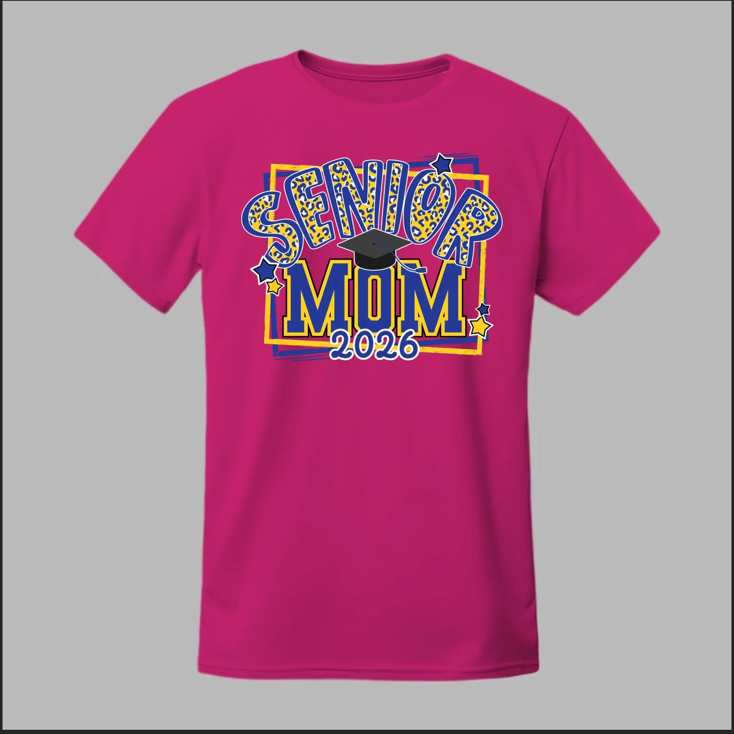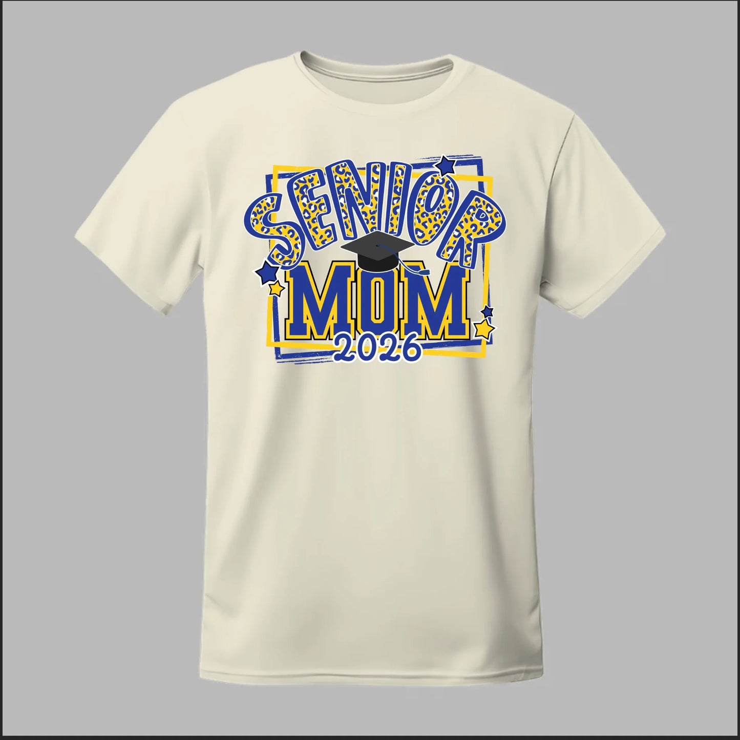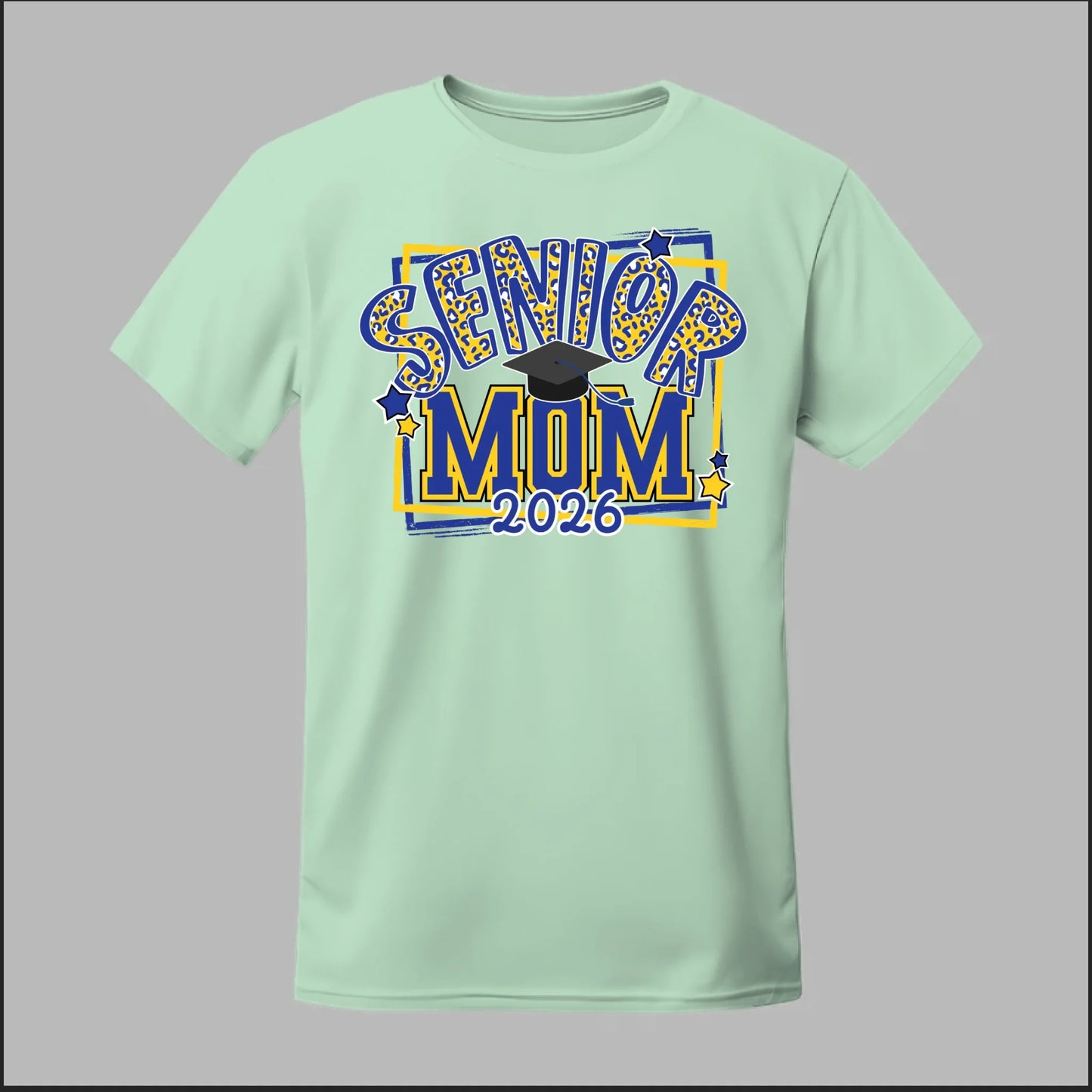 Proud doesn’t even begin to cover it! This bold and fun tee is made for moms celebrating their senior’s unforgettable Class of 2026 year. With its eye-catching leopard print “Senior” lettering, graduation cap detail, and bright school spirit colors, this shirt is the ultimate way to cheer your grad through every milestone—from Friday night lights to graduation day.