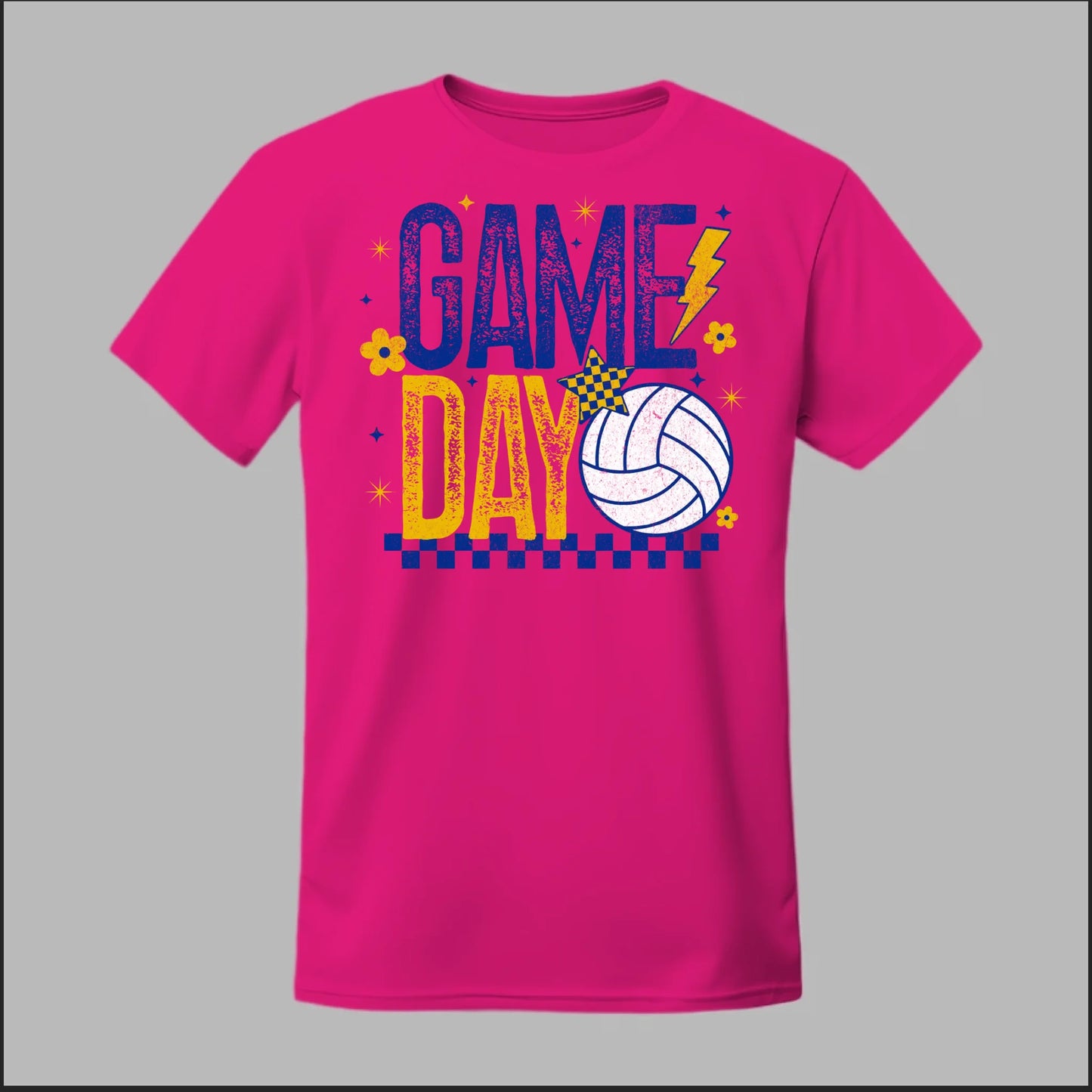 It’s Game Day! Ready to cheer loud and proud, this tee features bold block lettering, a crisp volleyball, and fun star, lightning, and checker accents for instant team-spirit vibes. Soft, comfy, and made for the stands or the court, it’s the perfect shirt for tournaments, pep rallies, and every match in between—because your energy sets the tone on game day.