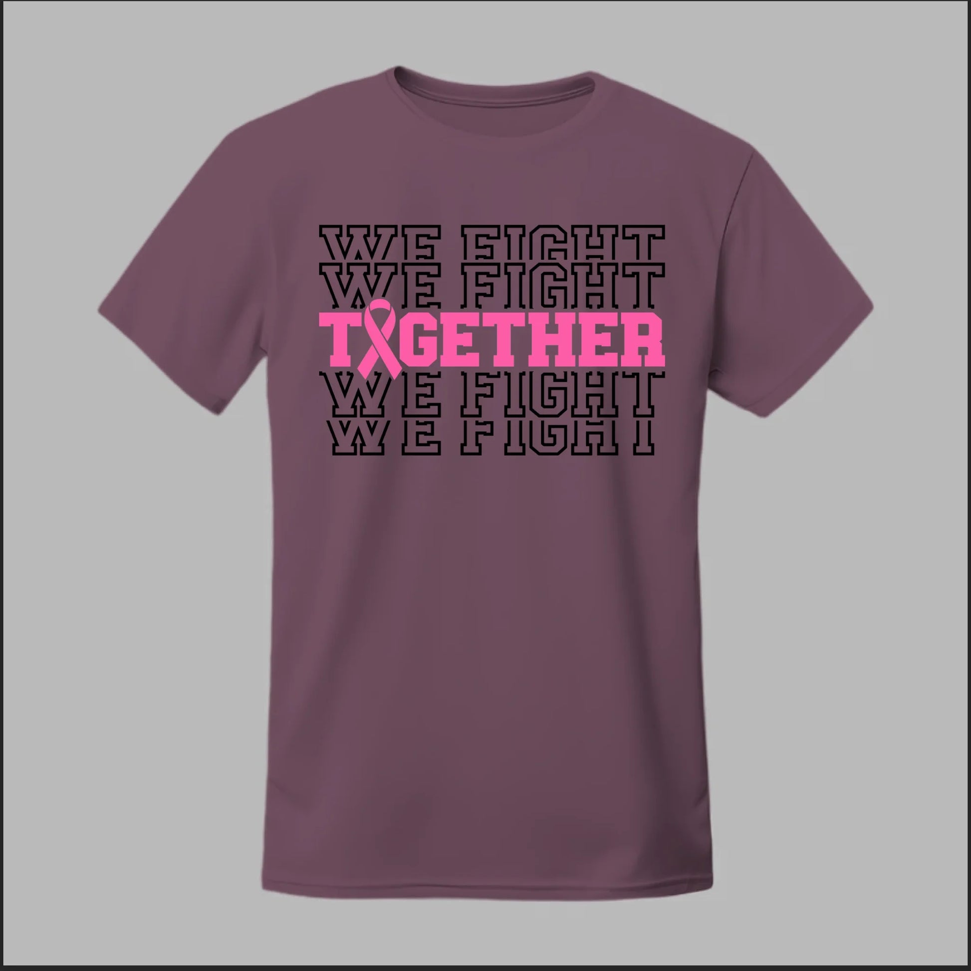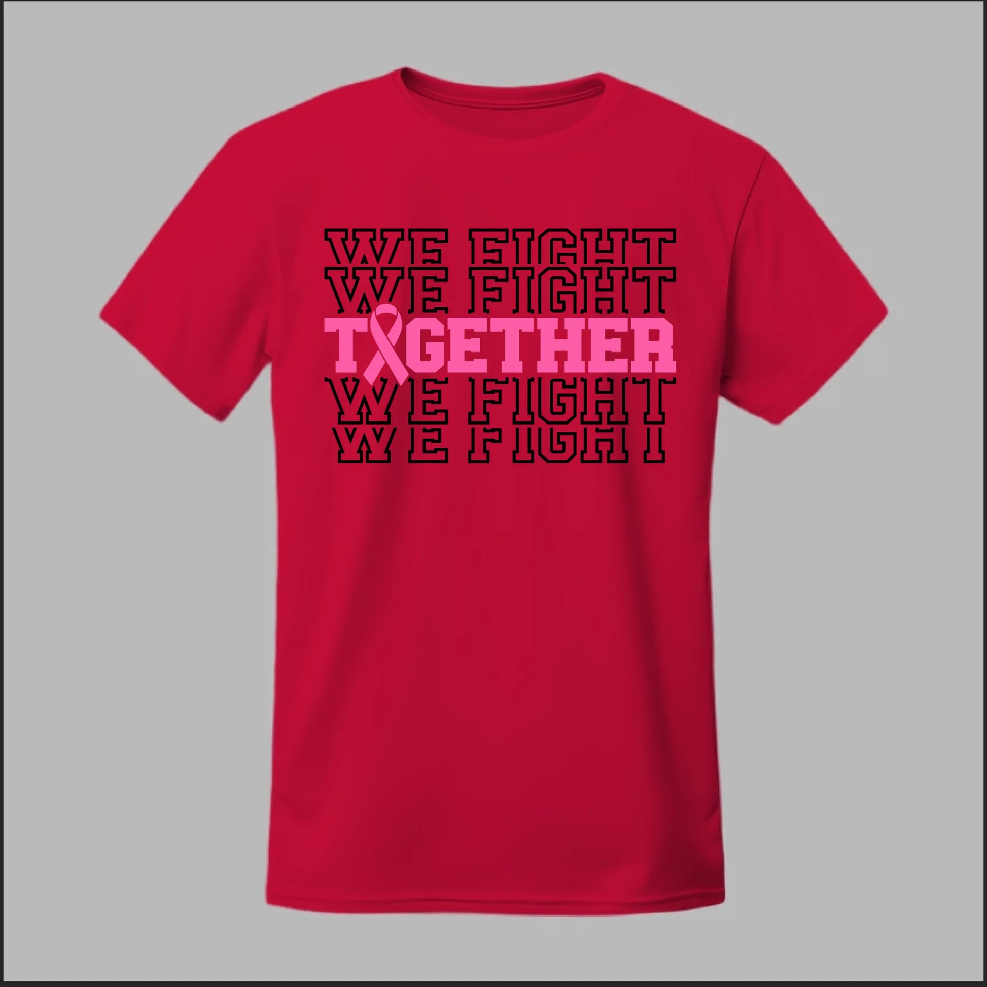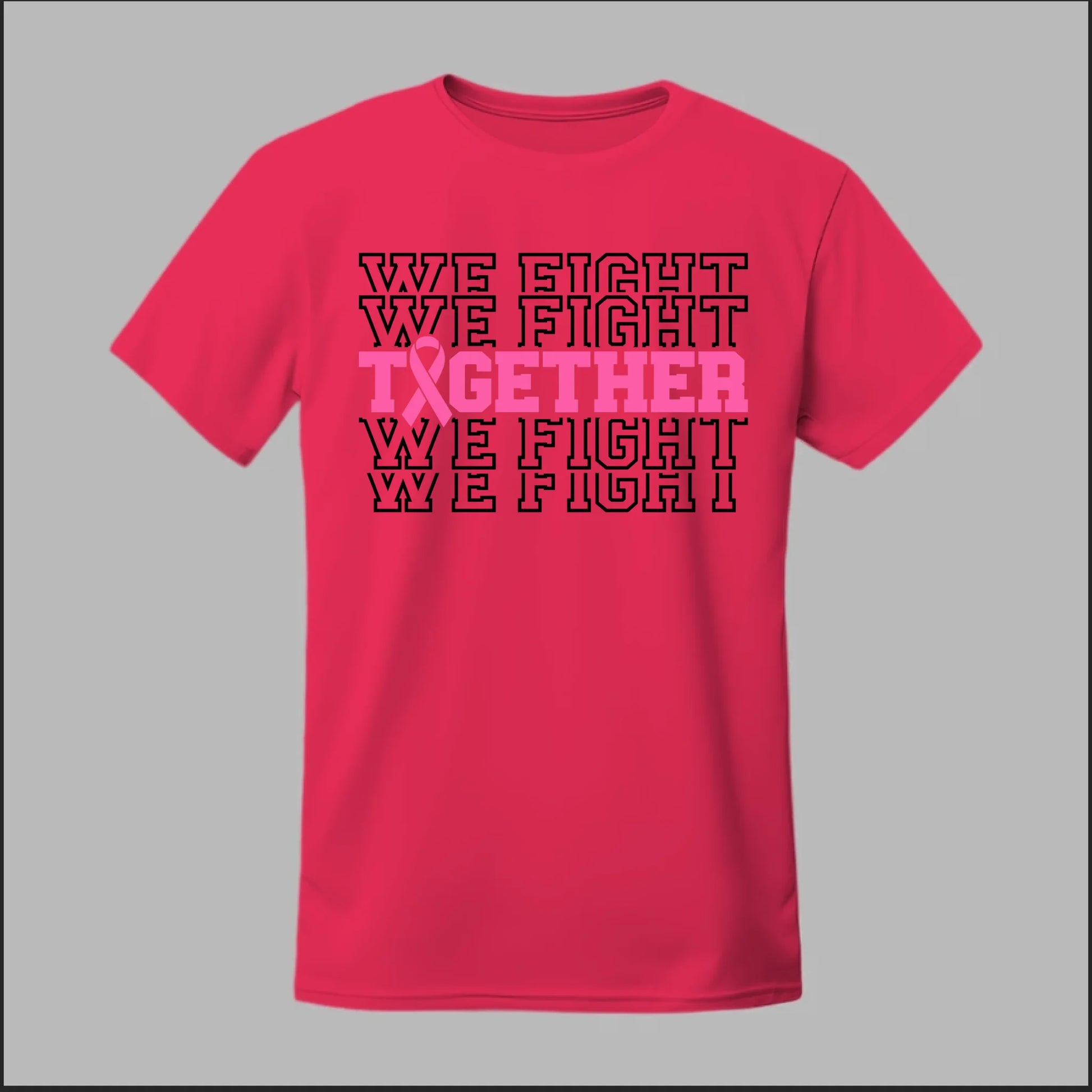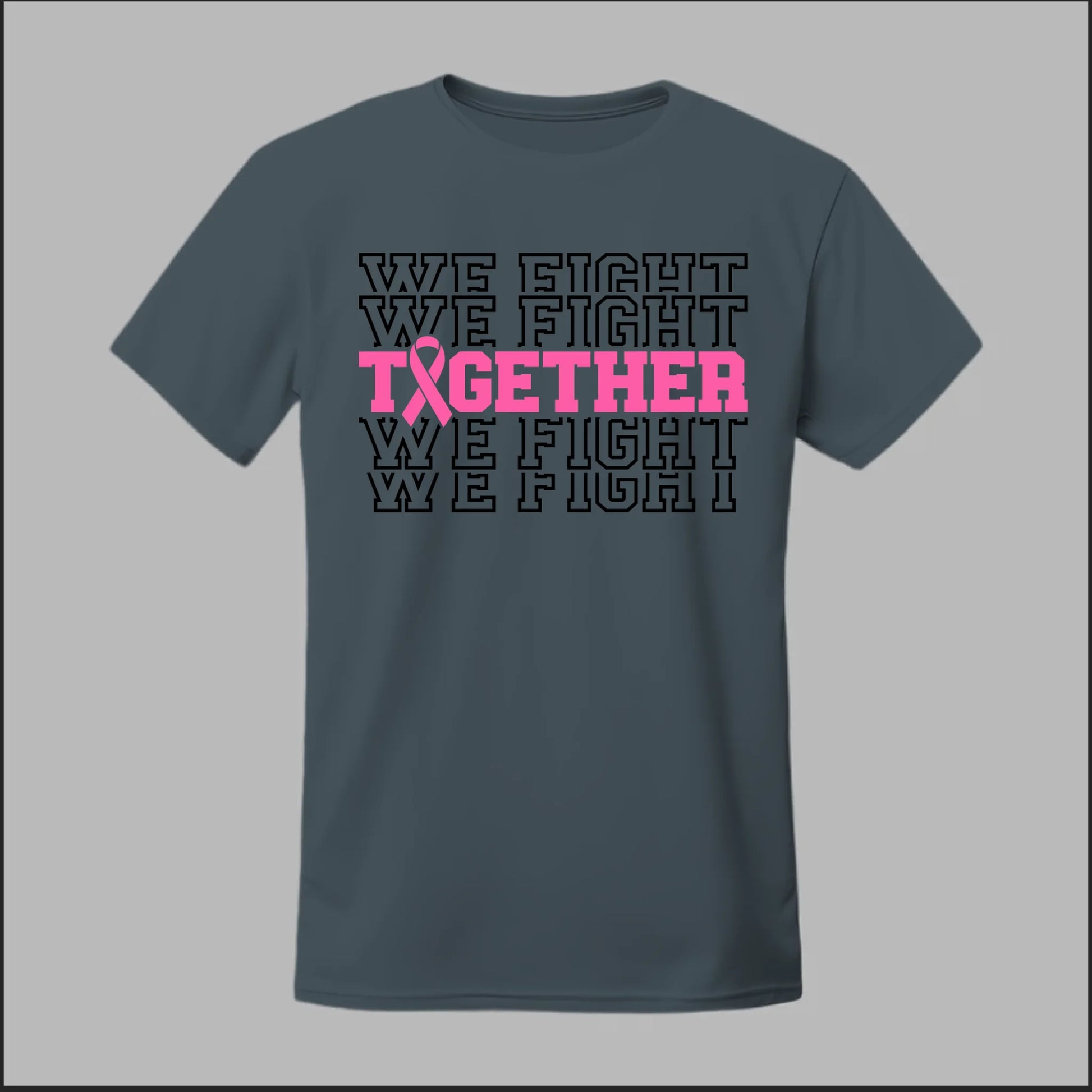 Make a bold stand with the "Together We Fight" tee in striking black. The vivid pink ribbon and lettering pop against the dark background, creating a high-impact design perfect for Breast Cancer Awareness events and everyday wear. Built for comfort and durability, this shirt is both a show of solidarity and a call to action — because united, we fight stronger.