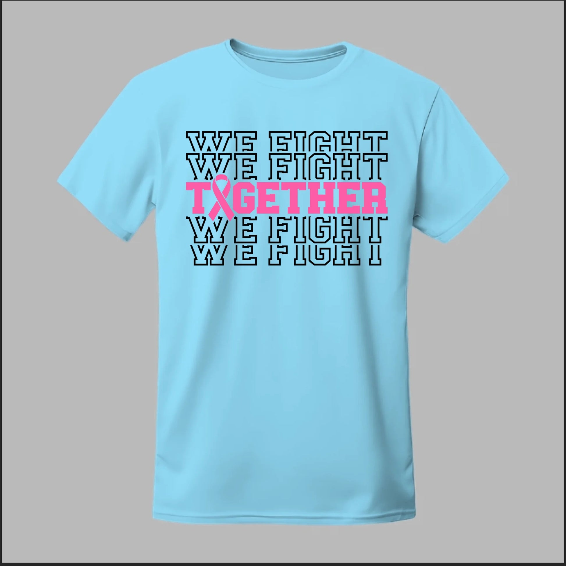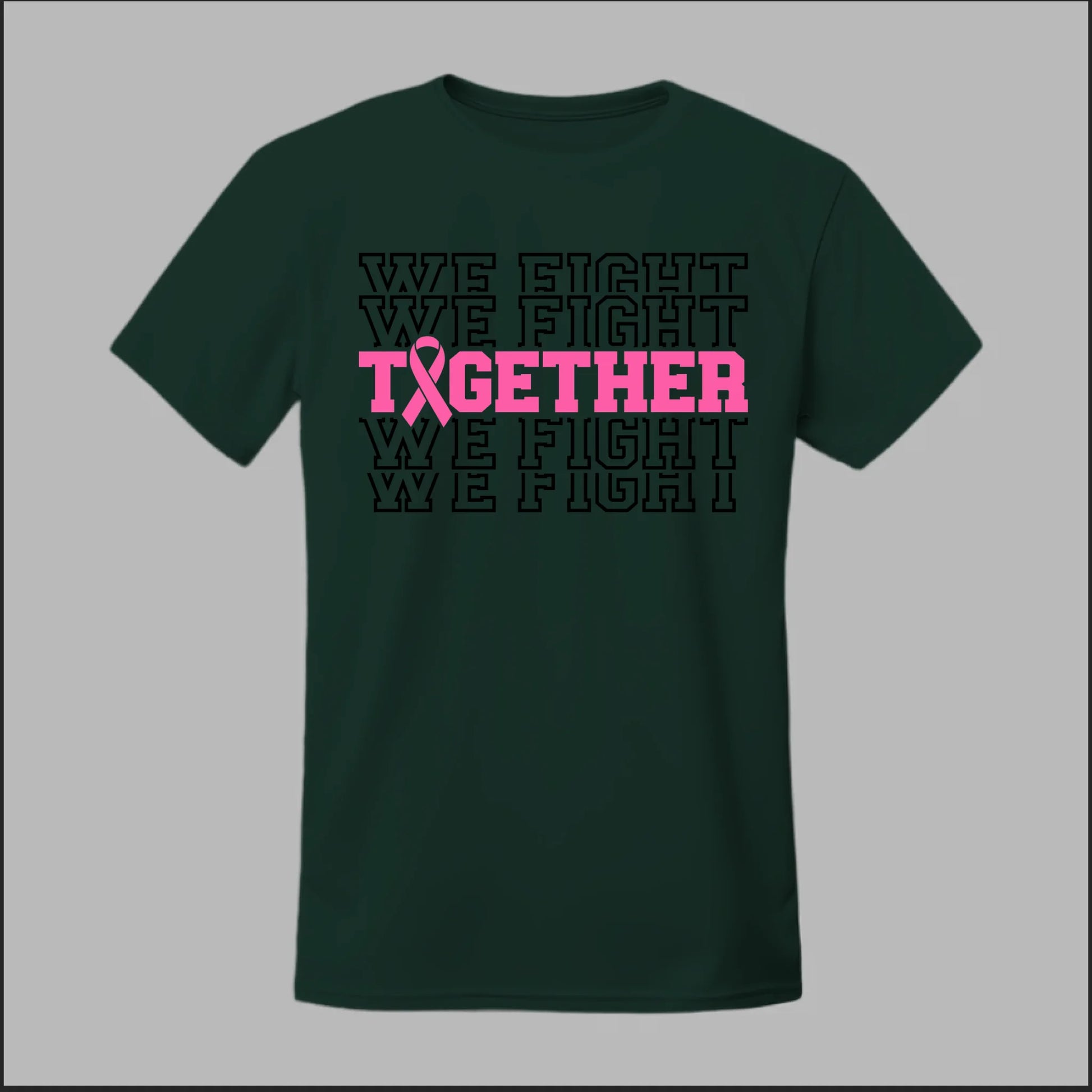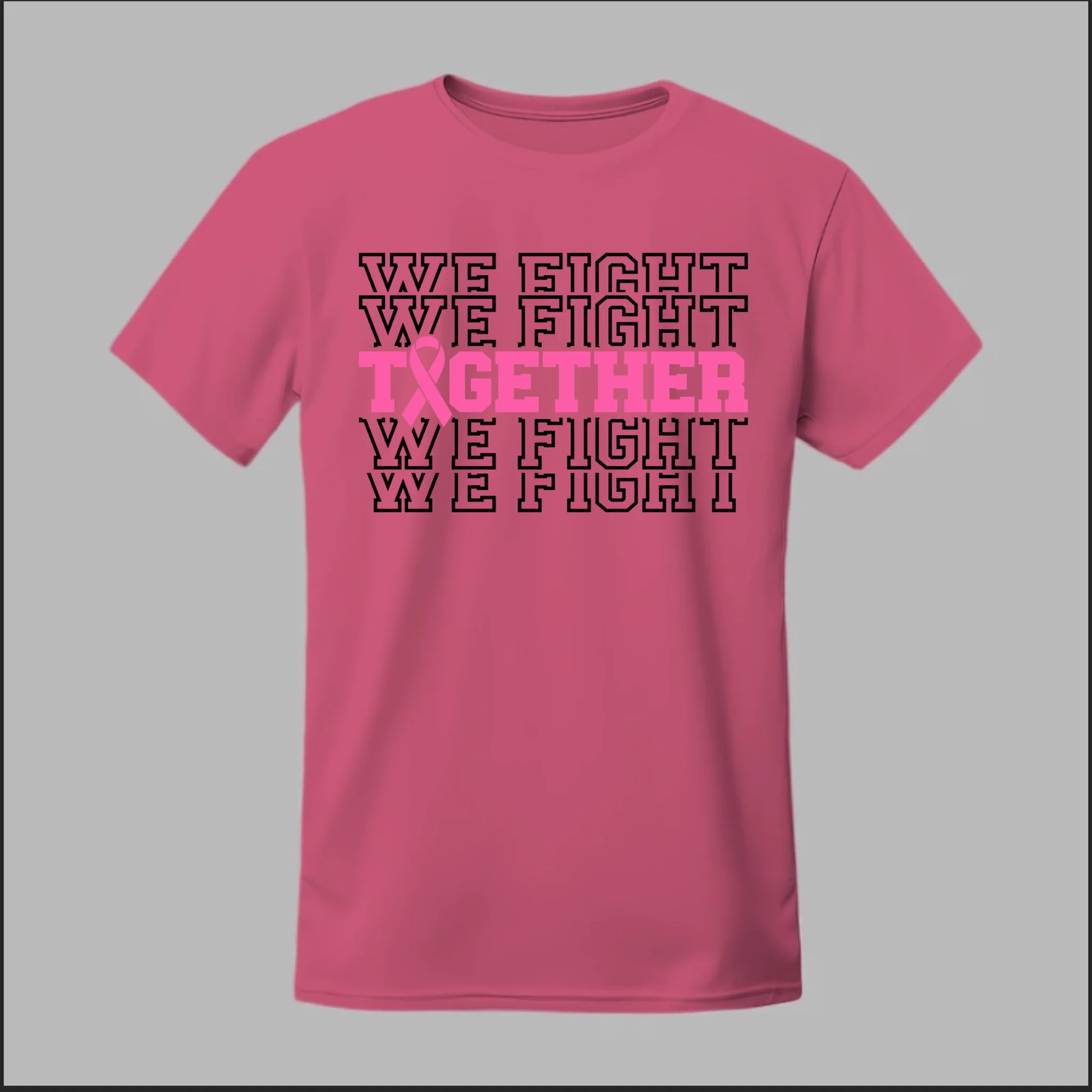Make a bold stand with the "Together We Fight" tee in striking black. The vivid pink ribbon and lettering pop against the dark background, creating a high-impact design perfect for Breast Cancer Awareness events and everyday wear. Built for comfort and durability, this shirt is both a show of solidarity and a call to action — because united, we fight stronger.